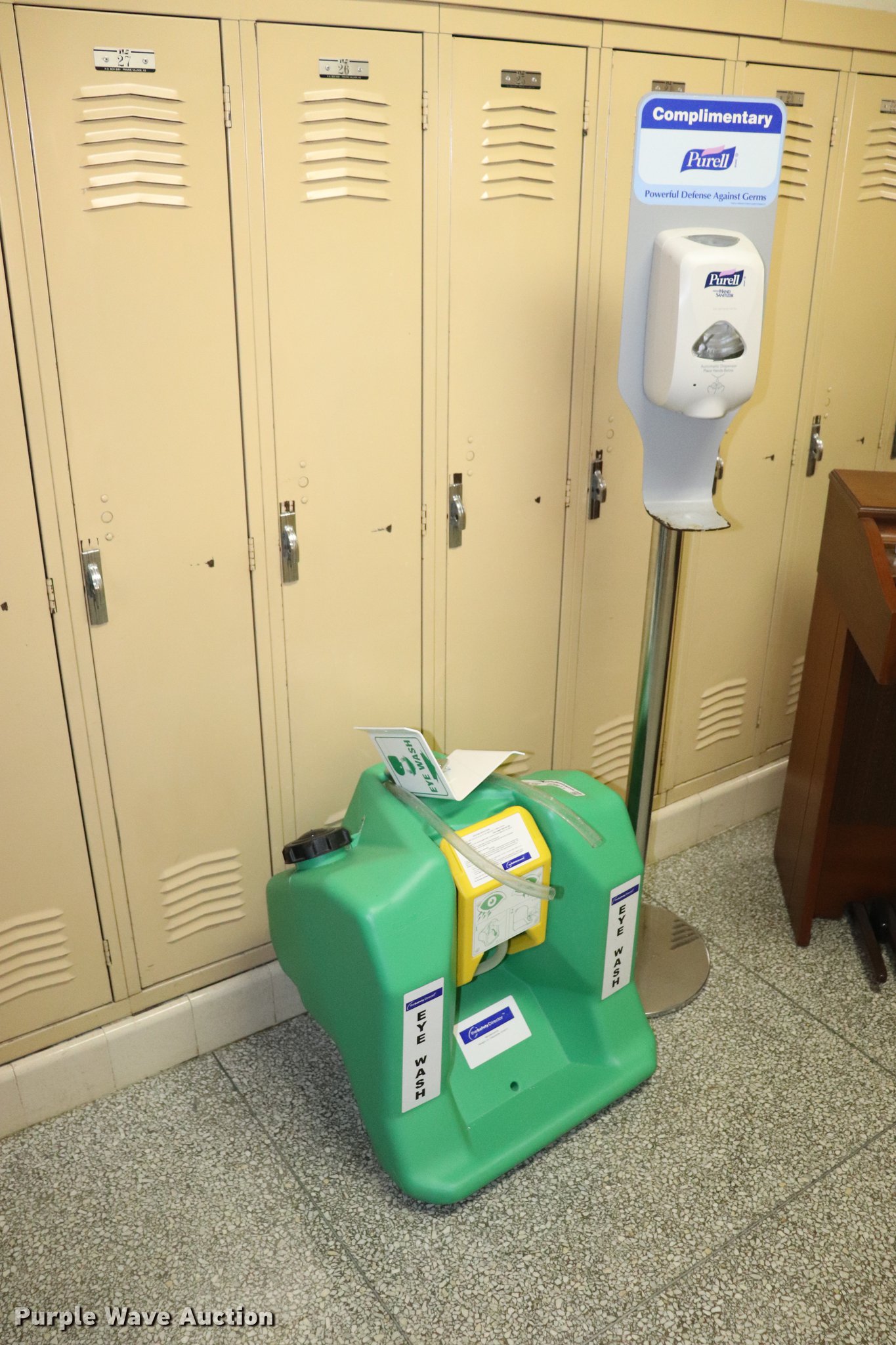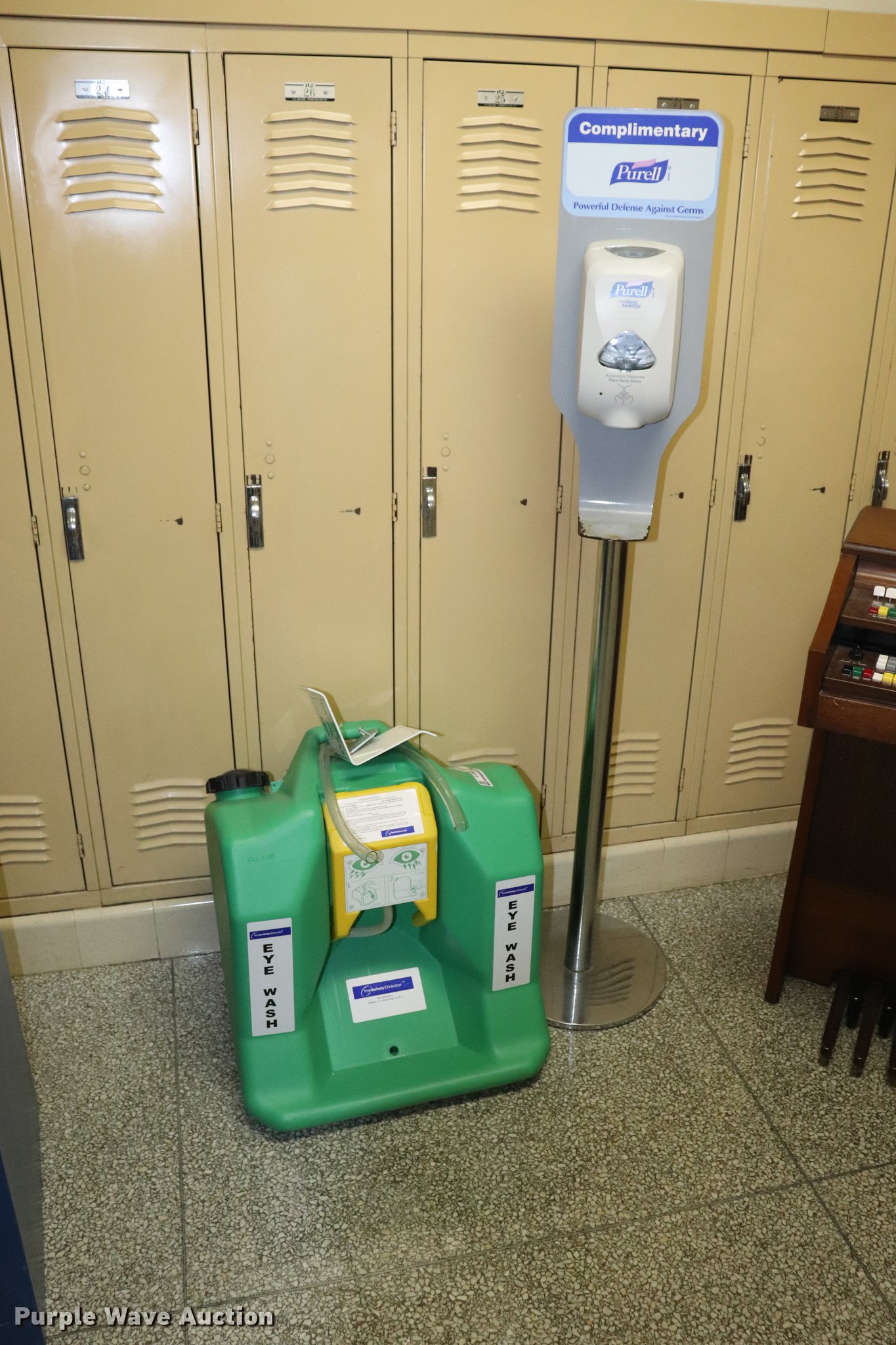 Purple Wave is selling a used Office Supplies and Equip. in Kansas. This item is a Office supplies with the following: The Safety Director eye wash station, 21" x 21" x 16", Purell hand sanitizer station, 12" x 12" x 60"