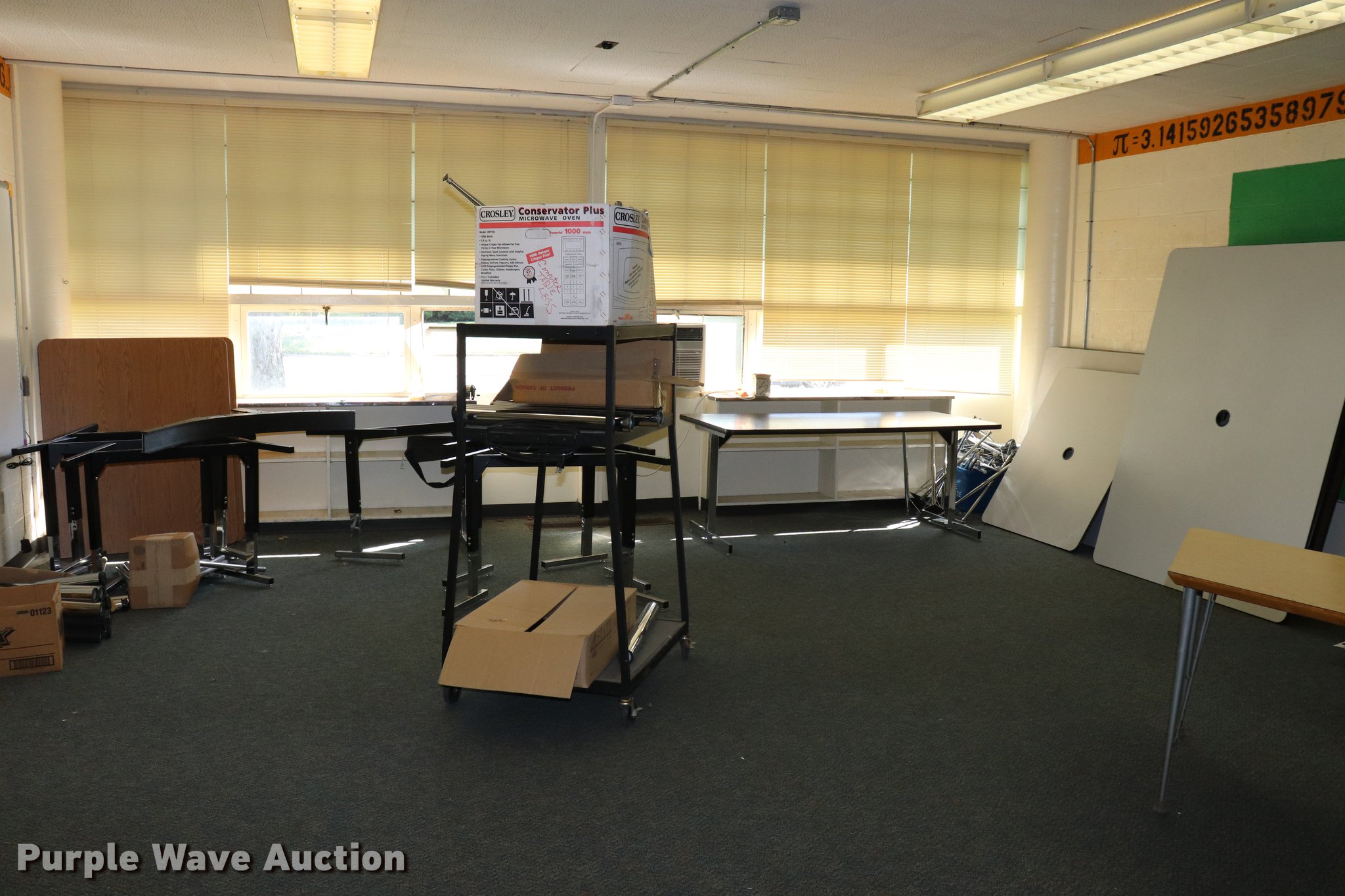 Approximately 20 tables. Various sizes 54" x 54", 53" x 53", 74" x 54" and more, Cart. Fredonia Middle School. 203 N 8th St. Fredonia, KS 66736