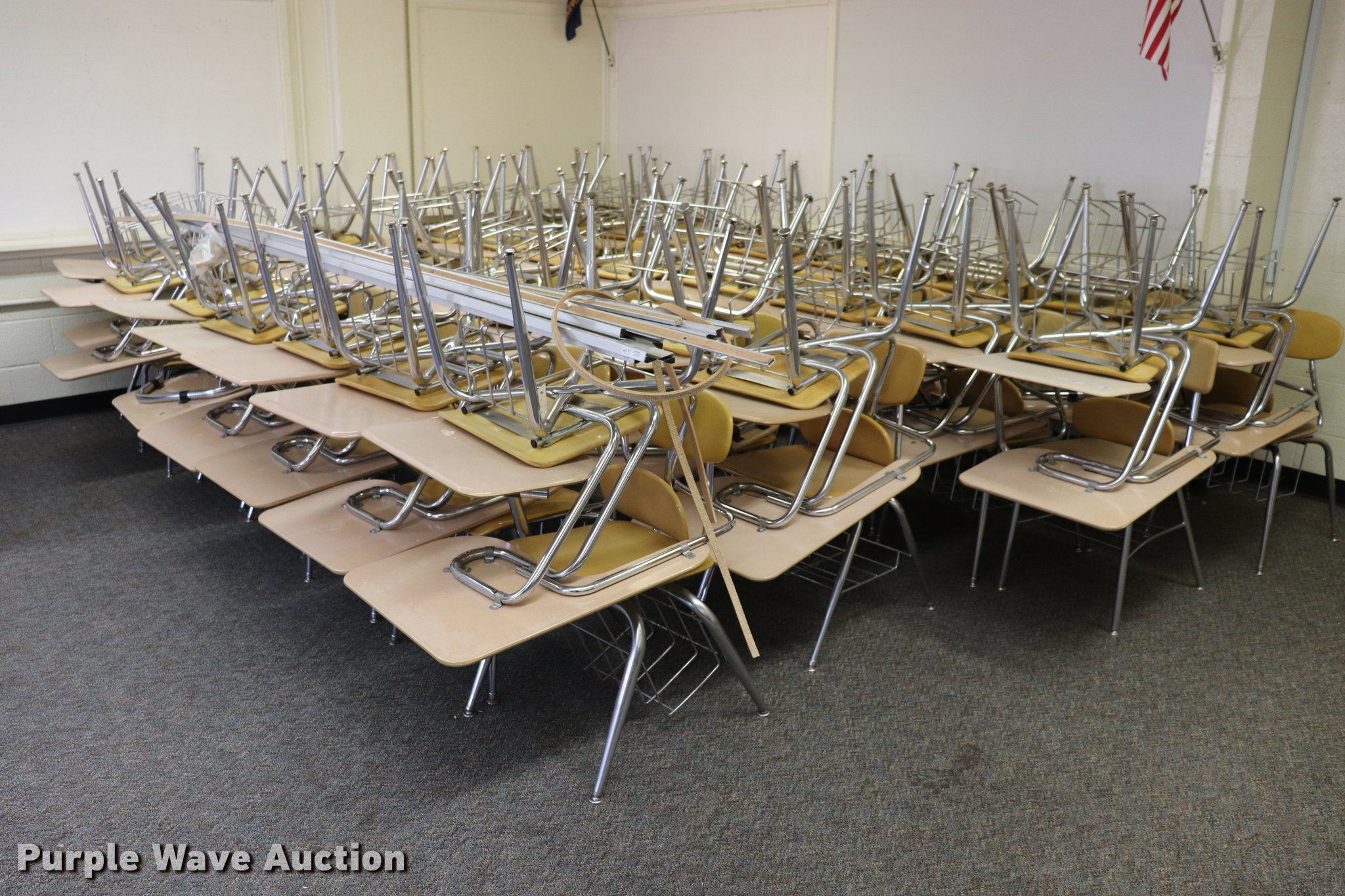 Purple Wave is selling a used Furniture in Kansas. This item is a Approximately 55 desks with the following: Book storage