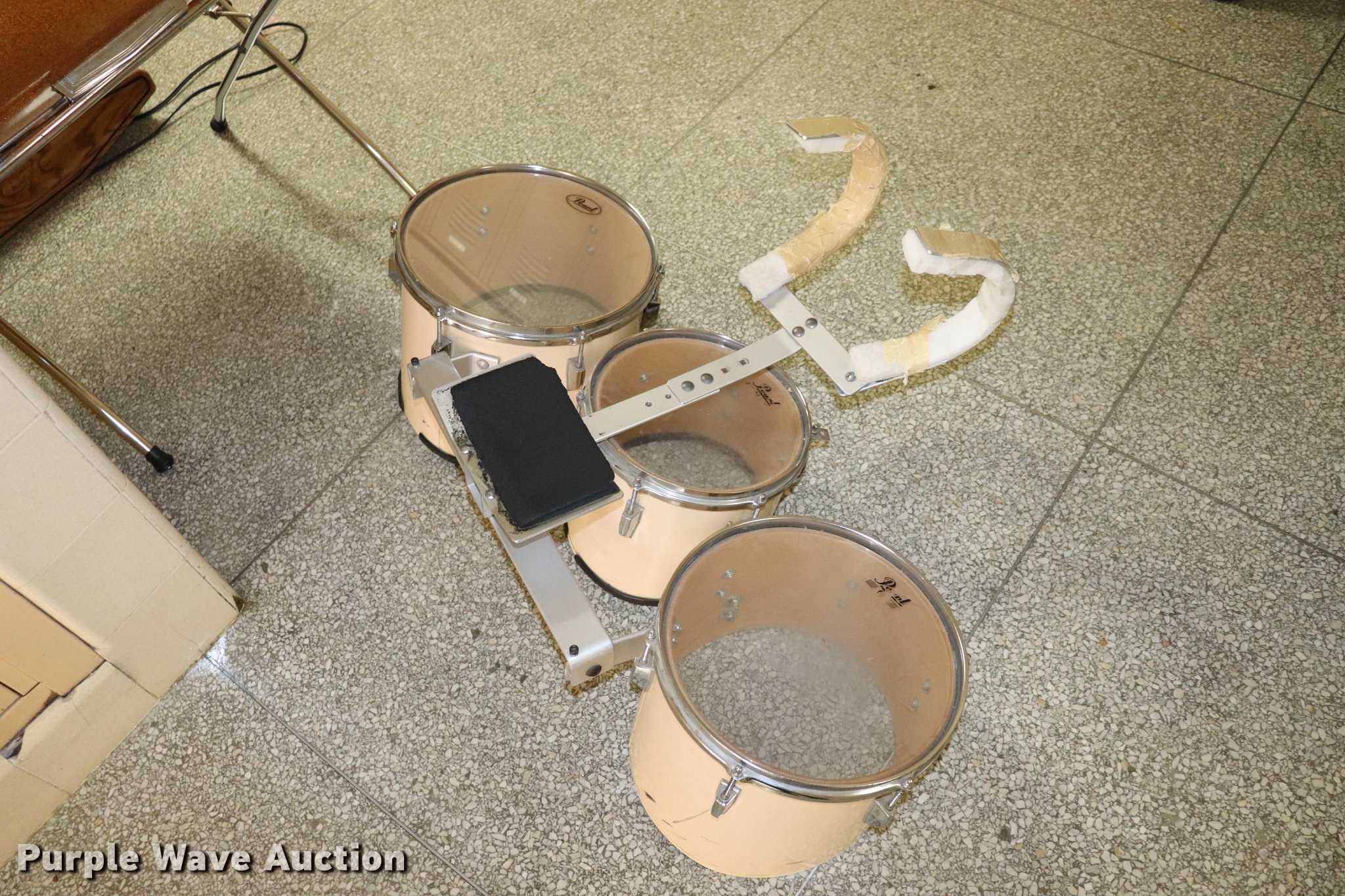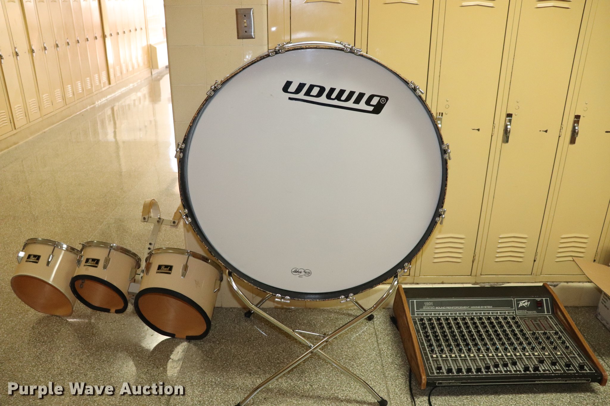 Purple Wave is selling a used Music Equip. in Kansas. This item is a Music equipment with the following: Pearl tritom drum, Ludwig bass drum with stand, Peavey sound reinforcement mixing system, Model 1201, Serial OA-7038889