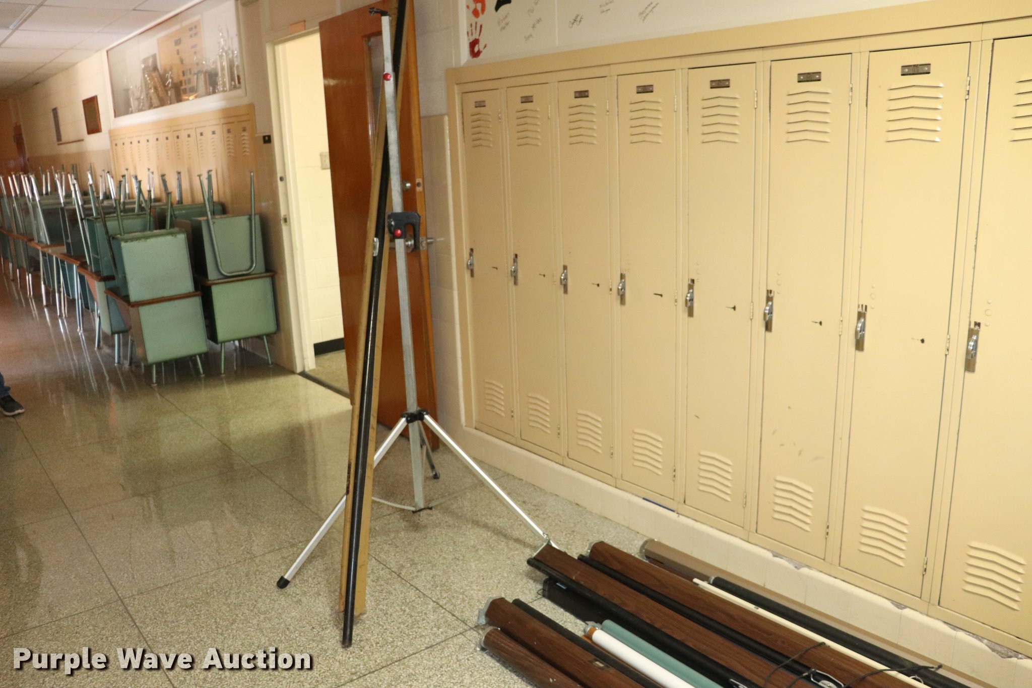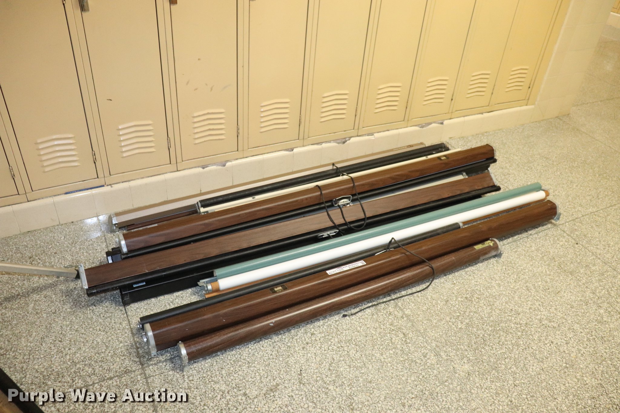 Purple Wave is selling a used Office Supplies and Equip. in Kansas. This item is a Approximately 10 projector screens with the following: Various widths