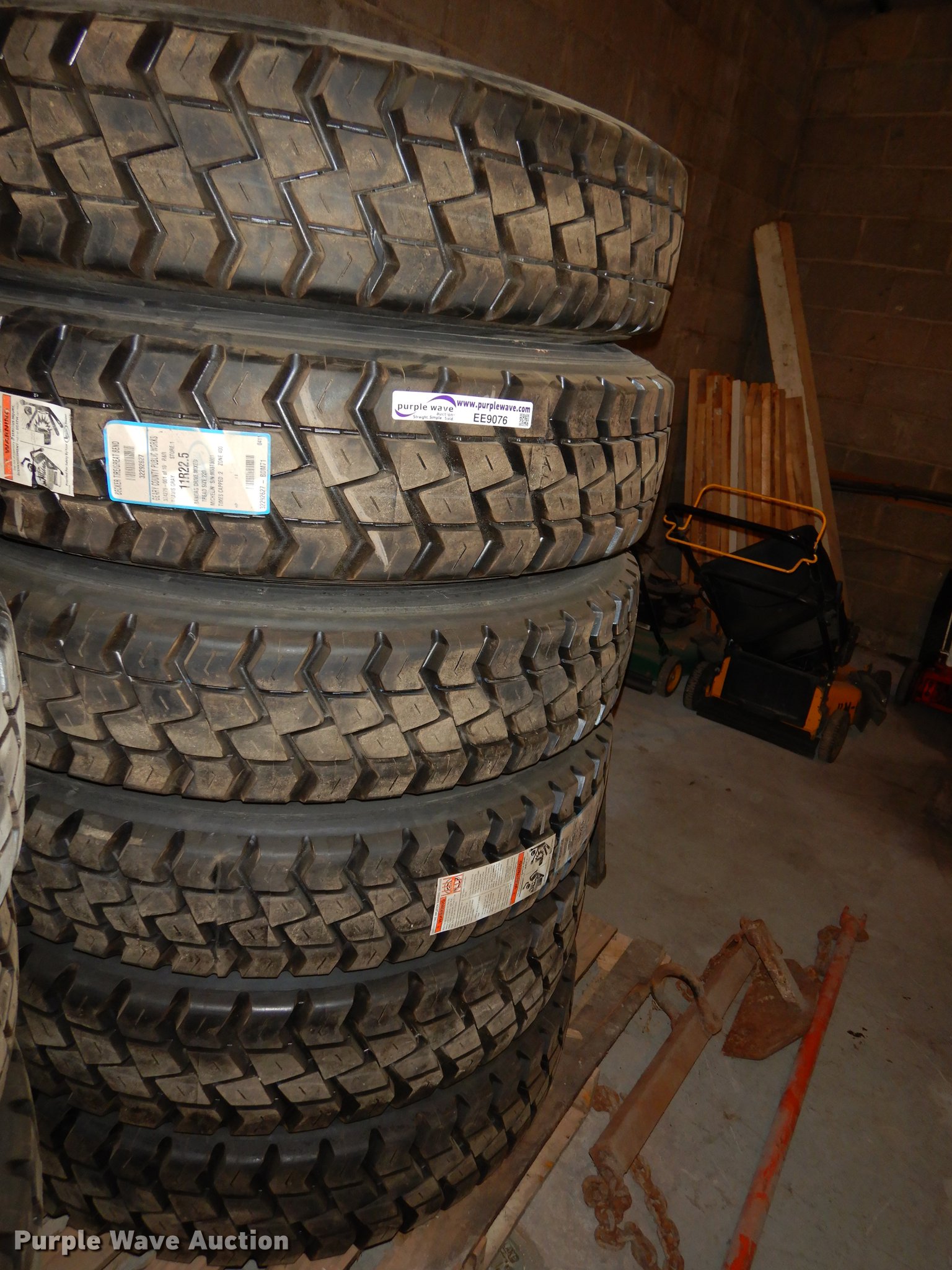 Purple Wave is selling a used Industrial Tires or Tracks in Kansas. This item is a (6) 11R22.5 tires with the following: Recapped