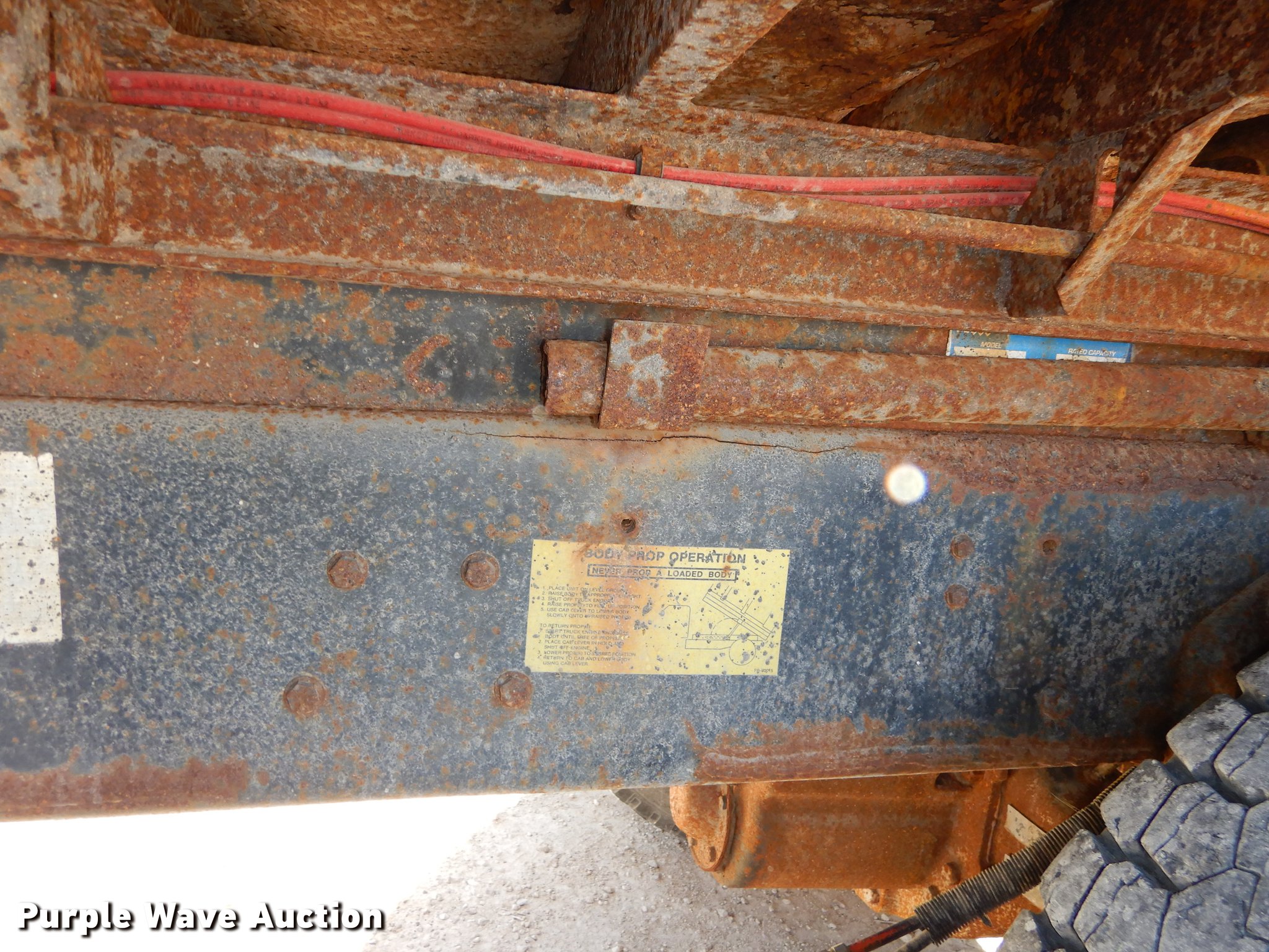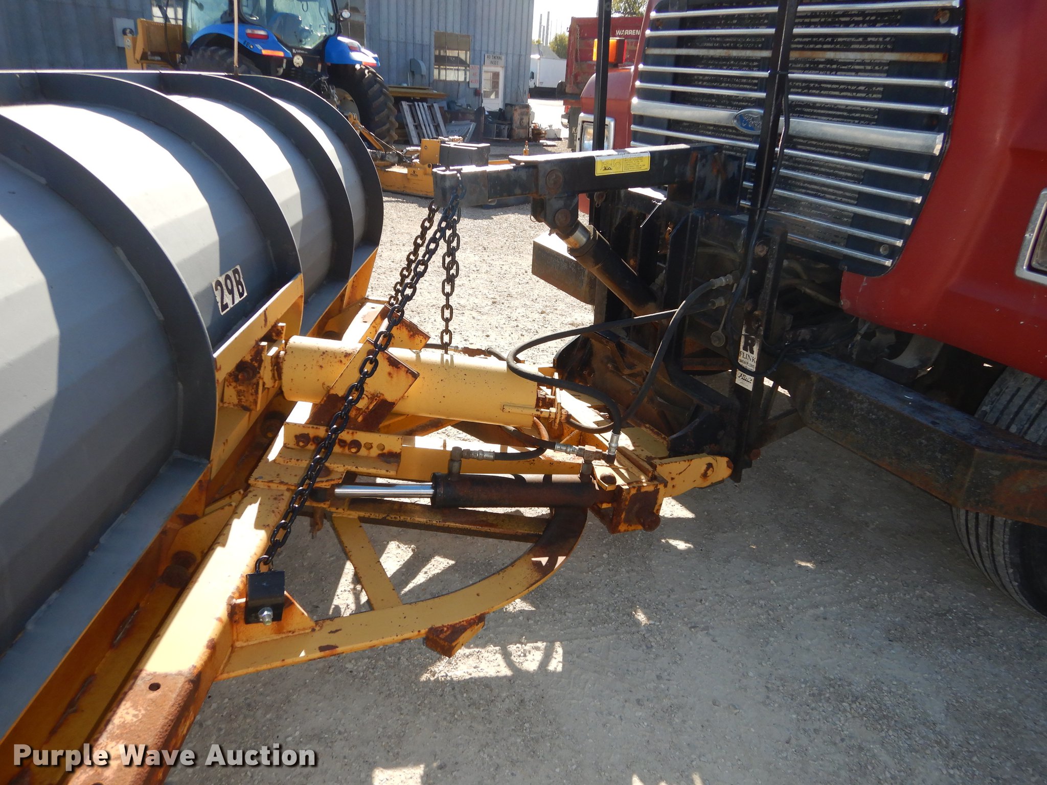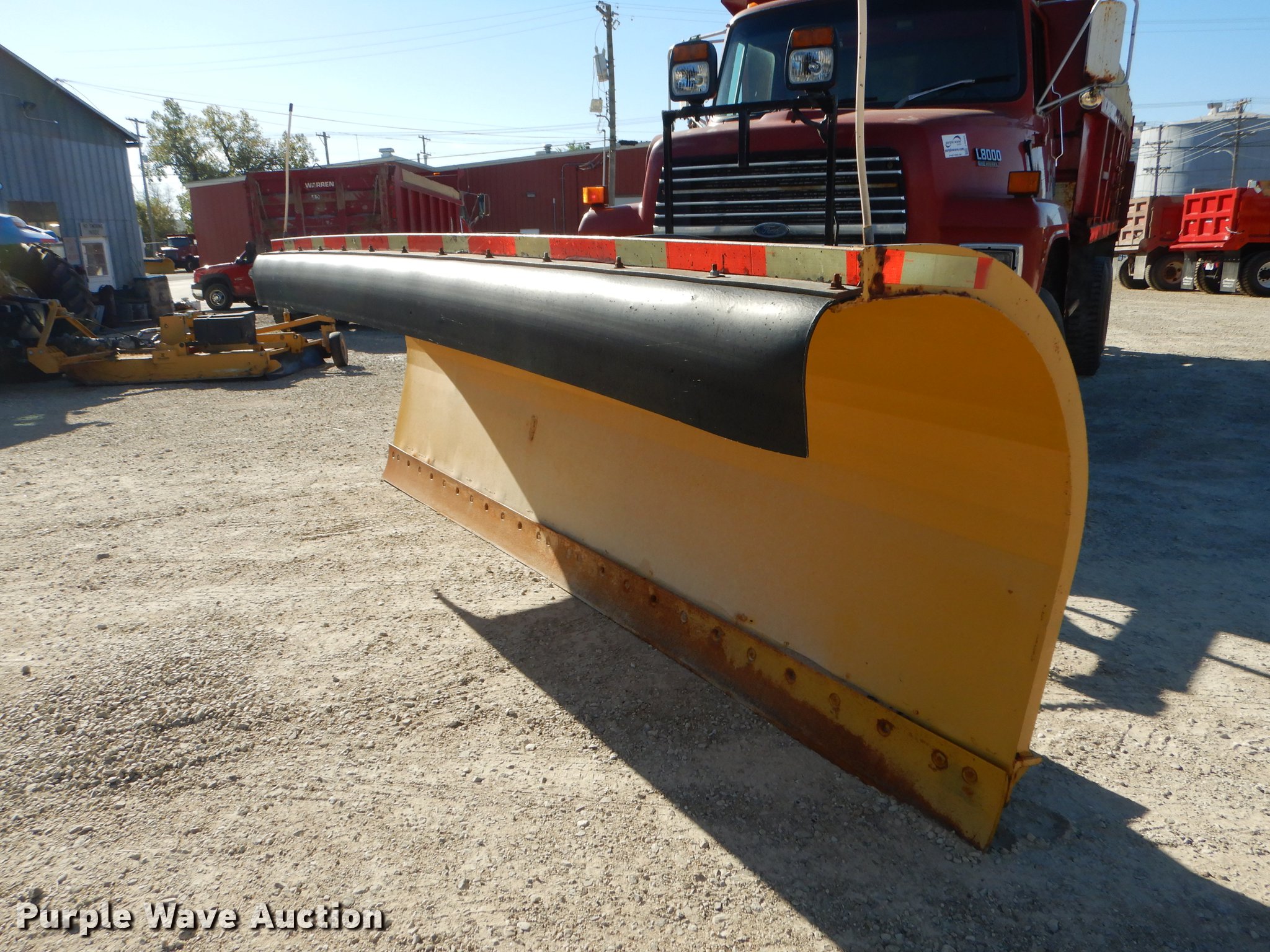 Purple Wave is selling a used Construction Dump Truck in Kansas. This item is a 1994 Ford L8000 dump truck with the following: Approx. 295,525 total miles, Odometer has been replaced, Cummins ISC 8.3L L6 turbo diesel engine, 250 HP, Allison MT653 automatic transmission, Tandem axle, Heat, Air suspension seat, Vinyl interior, Front and rear work lights, Galion 502FDA-2 steel dump bed, 15'L x 8'W, 31" side height, 12" side board height, 10 to 12 yd. capacity, Air operated end gate, Single ram hoist, Flink snow plow, 12'W, Side markers, Lights, Unit will not turn side to side, Valve stuck,, Flink LMC5 V-box spreader, 15 yd. capacity, Dual fuel tanks, Snow chains, Spring suspension, Air brakes, 198" wheelbase, 11R22.5 tires, GVWR 54,400 lbs, End gate and blade wheels included, Frame cracked on drivers side, Unit# 29