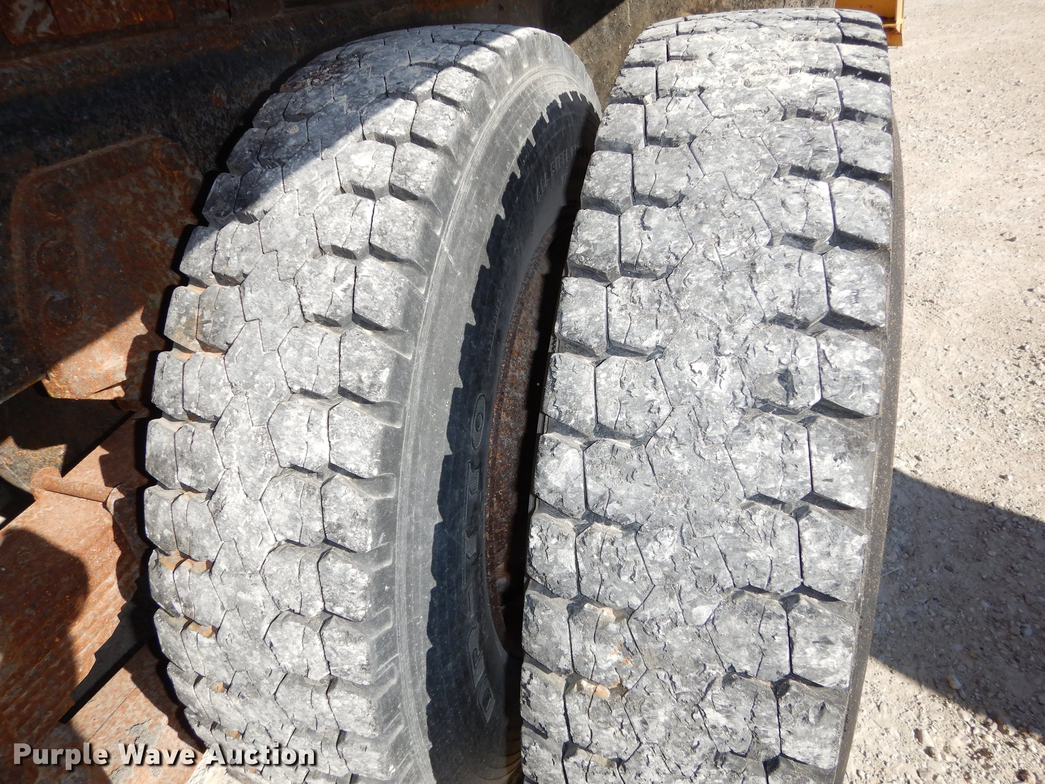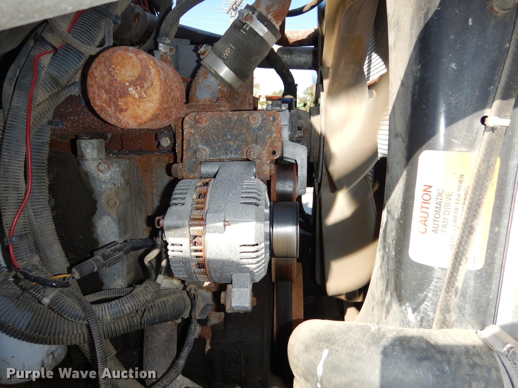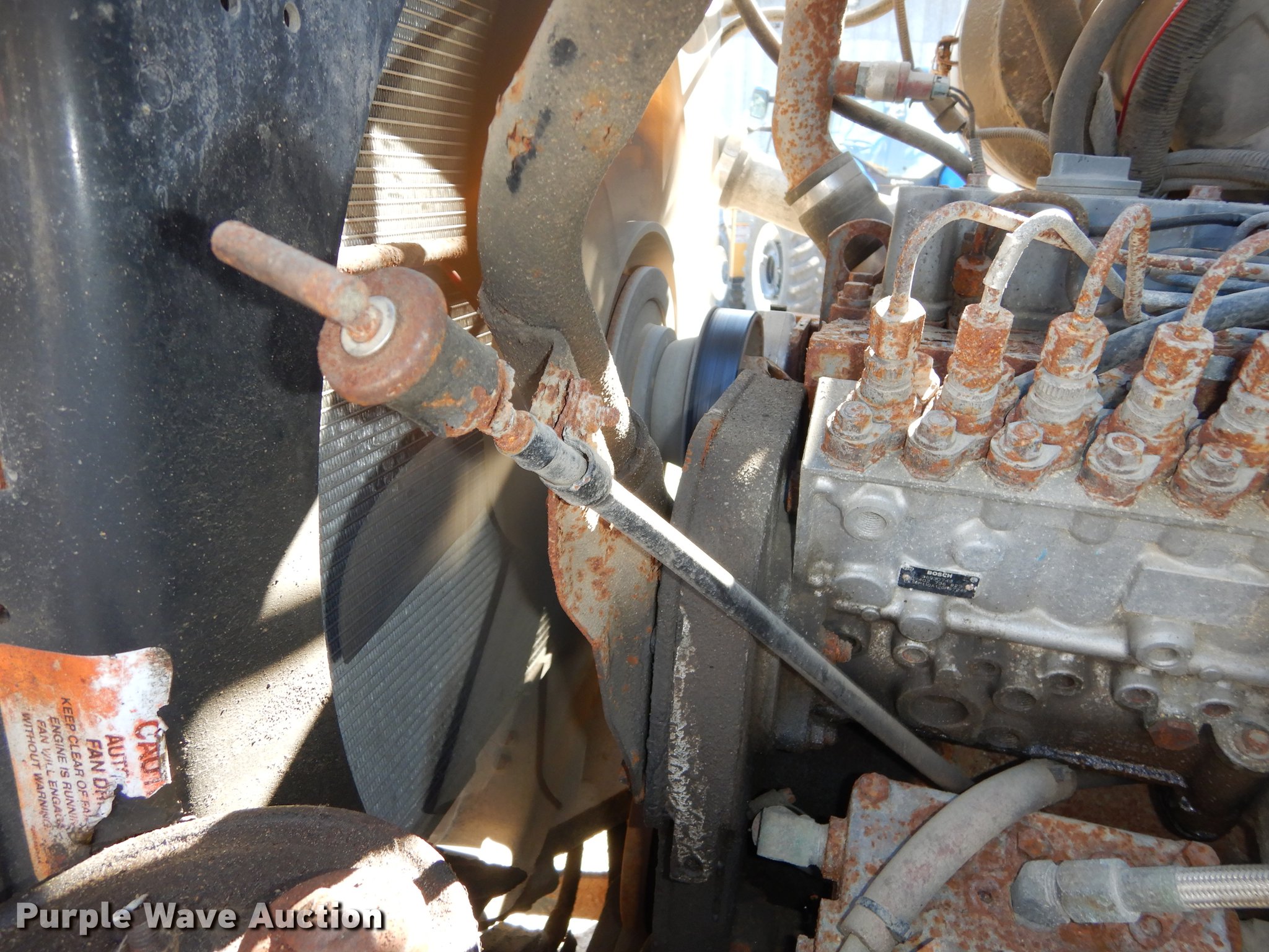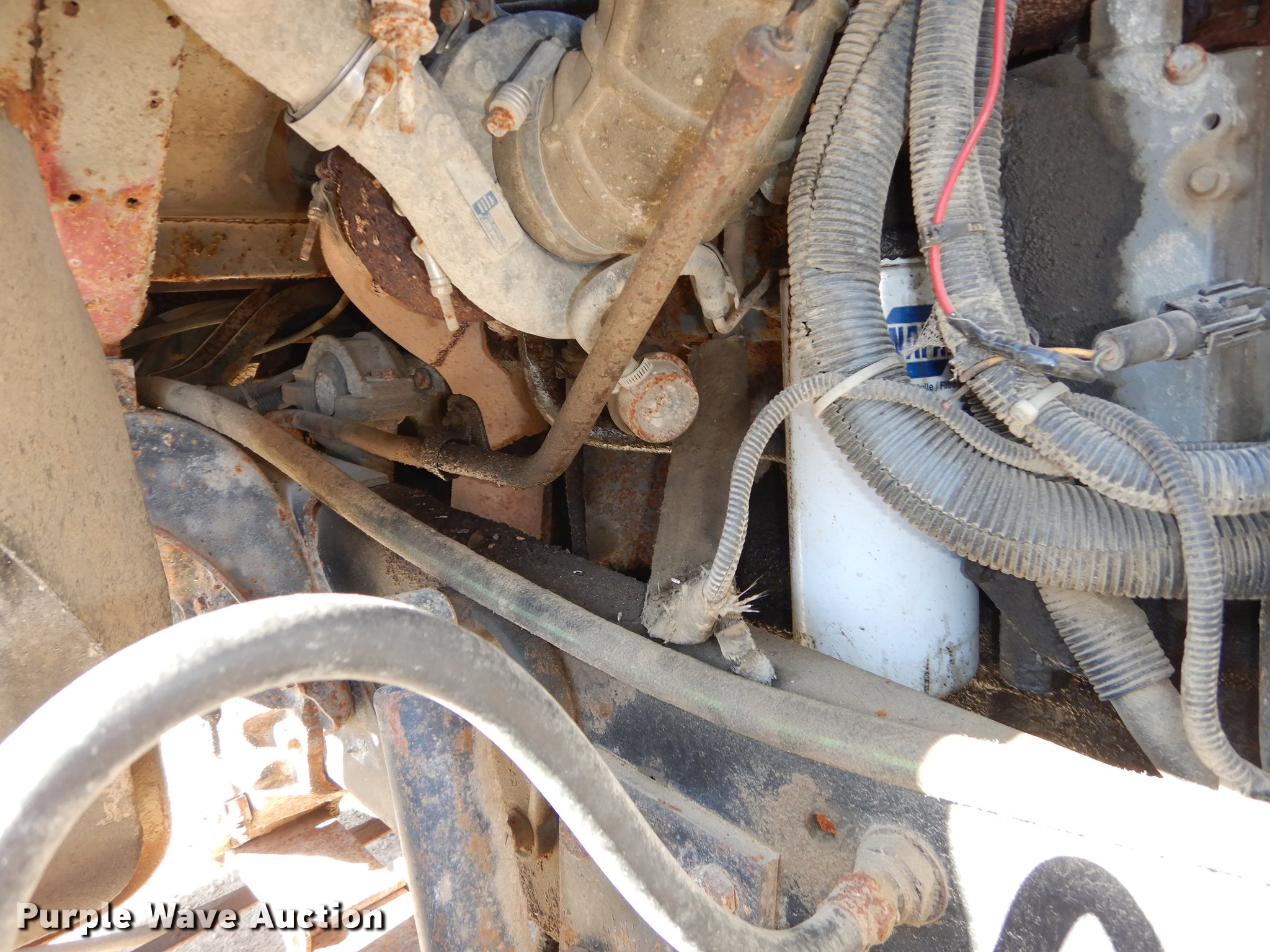 Purple Wave is selling a used Construction Dump Truck in Kansas. This item is a 1994 Ford L8000 dump truck with the following: Approx. 295,525 total miles, Odometer has been replaced, Cummins ISC 8.3L L6 turbo diesel engine, 250 HP, Allison MT653 automatic transmission, Tandem axle, Heat, Air suspension seat, Vinyl interior, Front and rear work lights, Galion 502FDA-2 steel dump bed, 15'L x 8'W, 31" side height, 12" side board height, 10 to 12 yd. capacity, Air operated end gate, Single ram hoist, Flink snow plow, 12'W, Side markers, Lights, Unit will not turn side to side, Valve stuck,, Flink LMC5 V-box spreader, 15 yd. capacity, Dual fuel tanks, Snow chains, Spring suspension, Air brakes, 198" wheelbase, 11R22.5 tires, GVWR 54,400 lbs, End gate and blade wheels included, Frame cracked on drivers side, Unit# 29