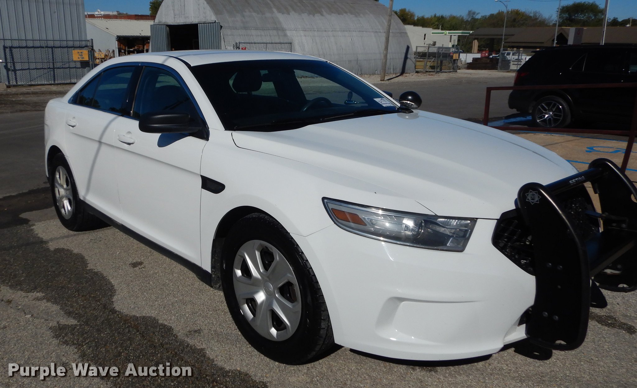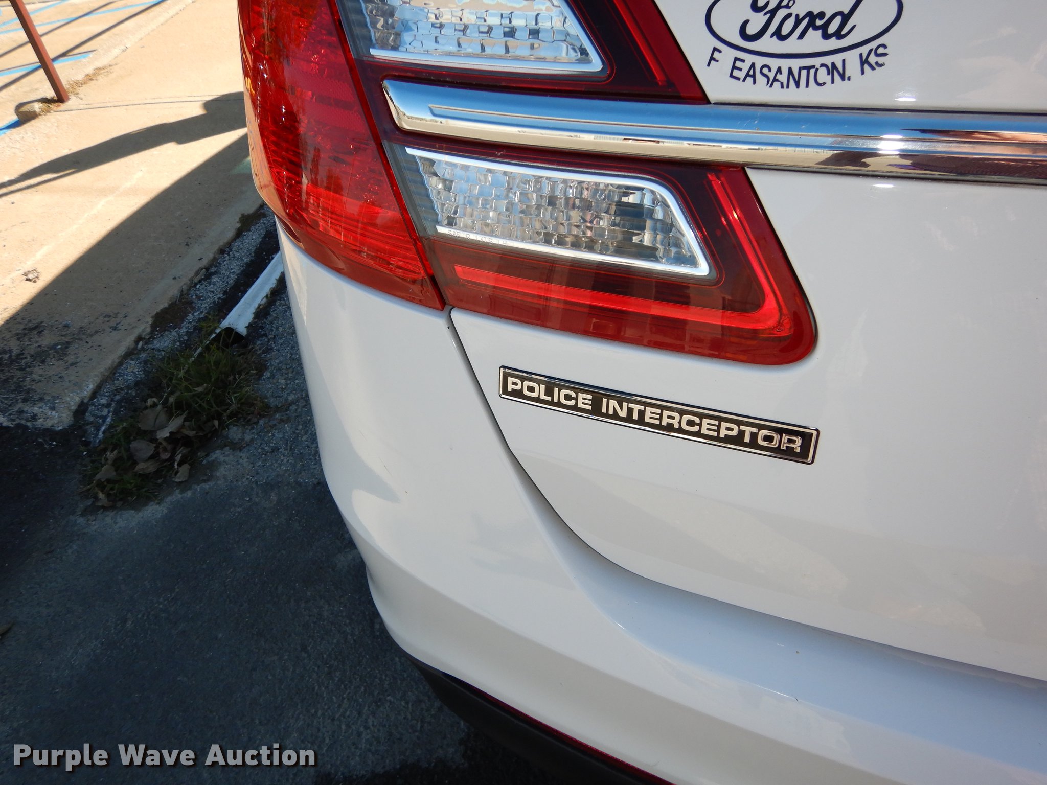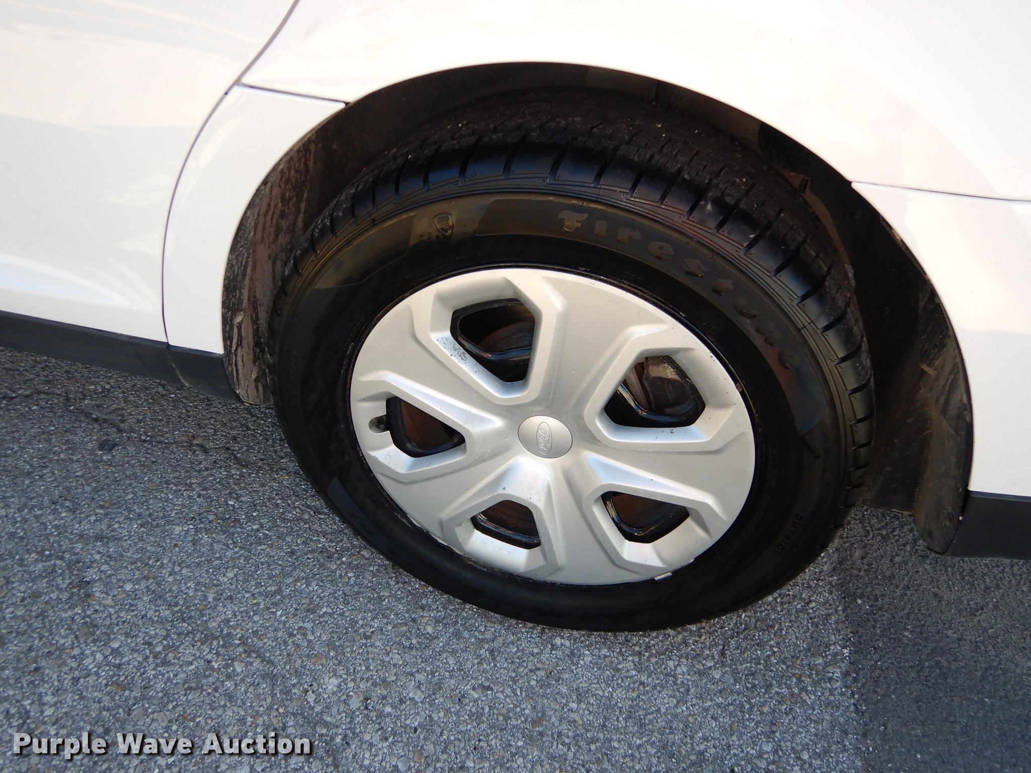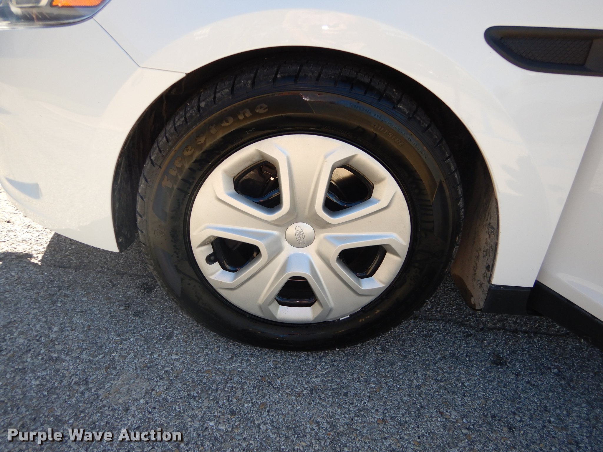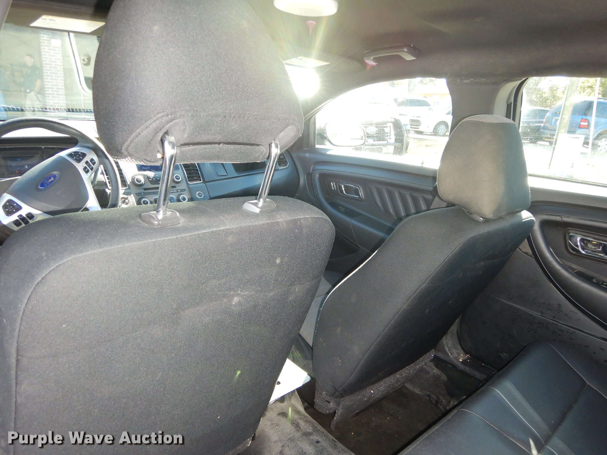 Purple Wave is selling a used Passenger Vehicle in Kansas. This item is a 2013 Ford Taurus Police Interceptor with the following: 127,114 miles on odometer, 3.5L V6 DOHC 24V gas engine, Automatic transmission, AC and heat, Tilt, Cruise, AM/FM/CD, Power windows, locks, mirrors, and seat, Cloth front interior, Vinyl rear interior, Spotlight, Push bar, 245/55R18 tires, Cracked windshield, No center console