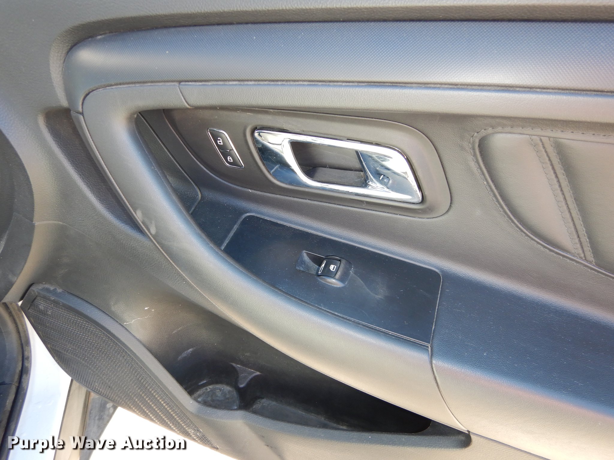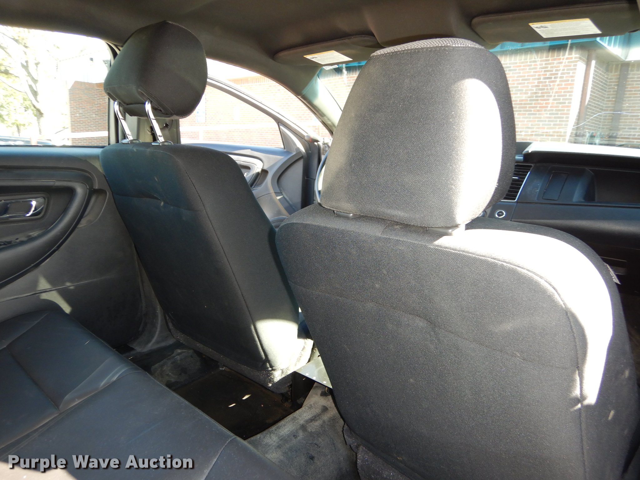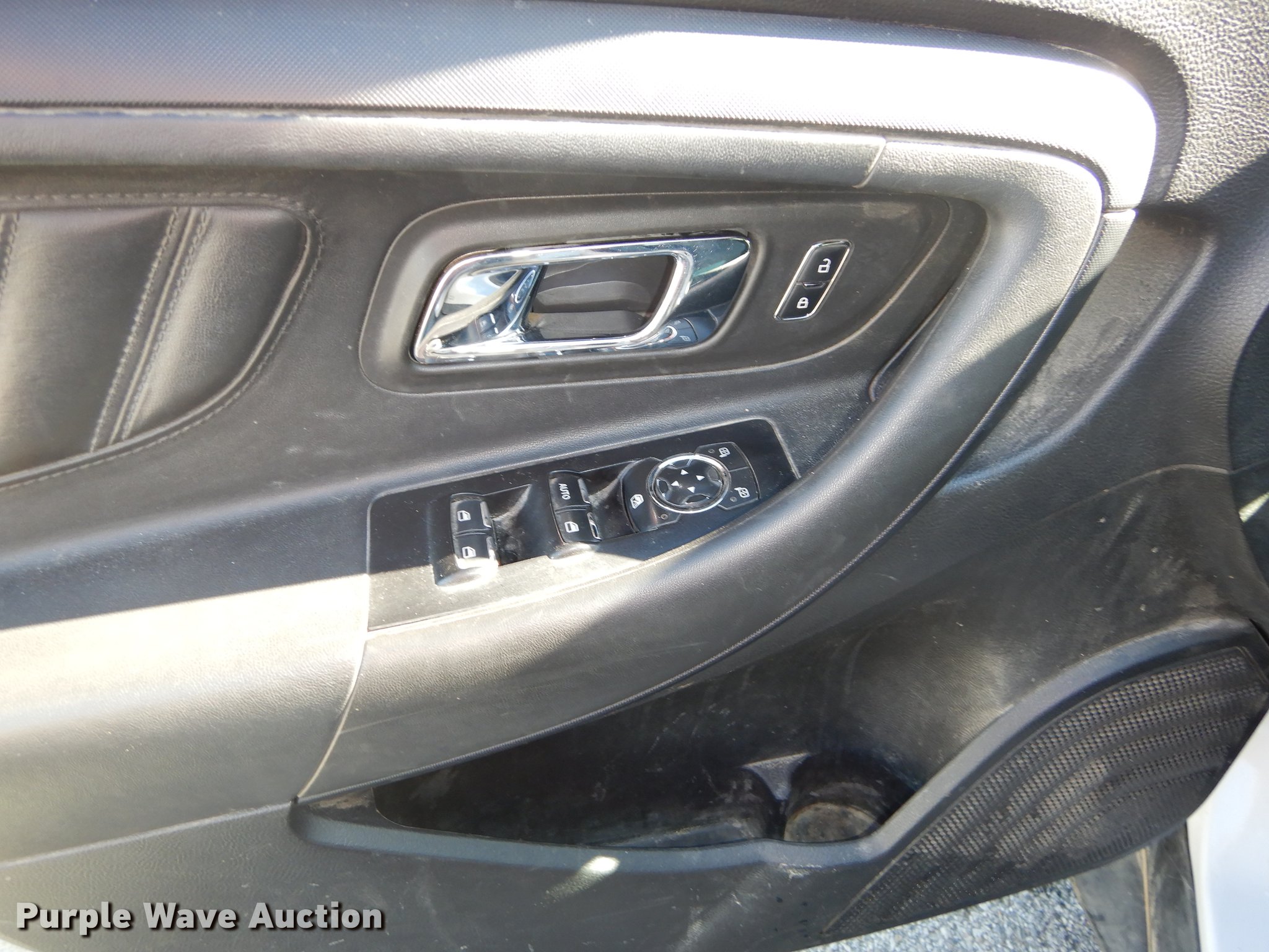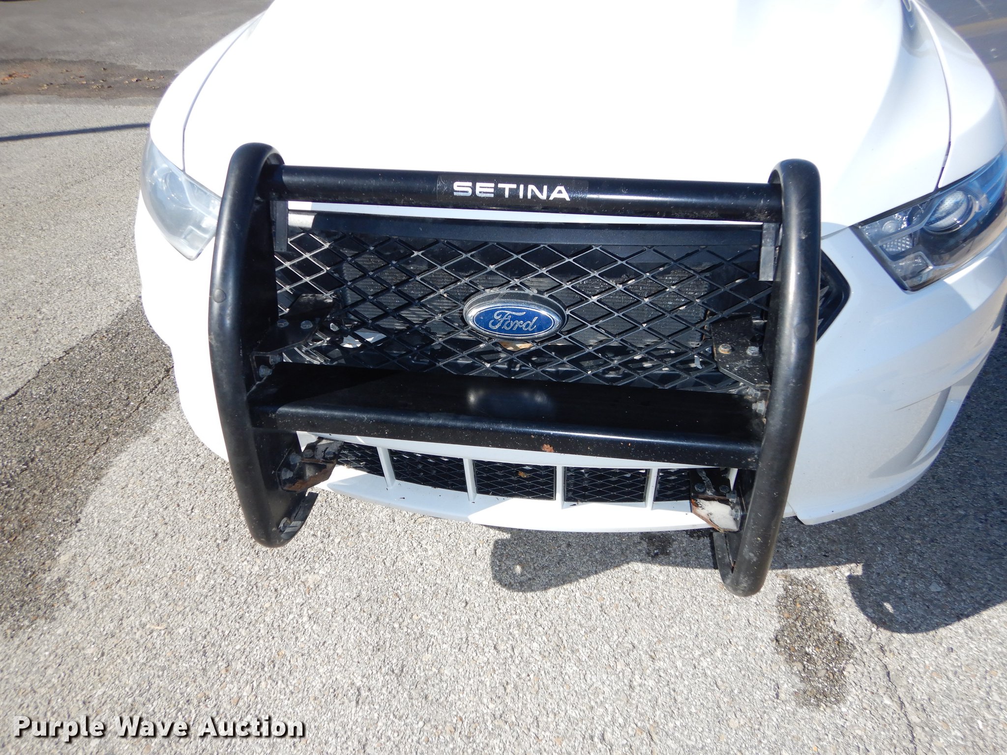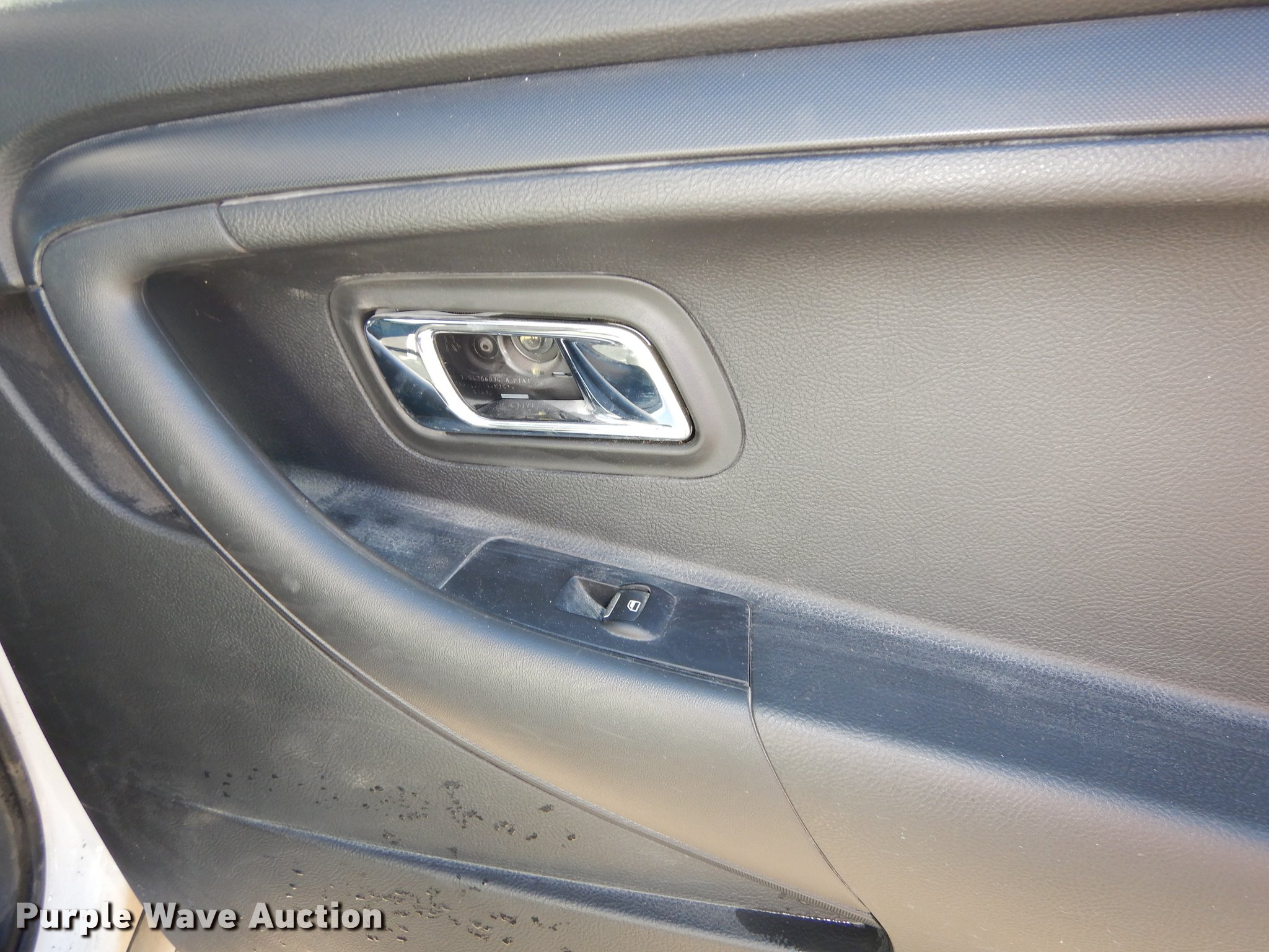 Purple Wave is selling a used Passenger Vehicle in Kansas. This item is a 2013 Ford Taurus Police Interceptor with the following: 127,114 miles on odometer, 3.5L V6 DOHC 24V gas engine, Automatic transmission, AC and heat, Tilt, Cruise, AM/FM/CD, Power windows, locks, mirrors, and seat, Cloth front interior, Vinyl rear interior, Spotlight, Push bar, 245/55R18 tires, Cracked windshield, No center console
