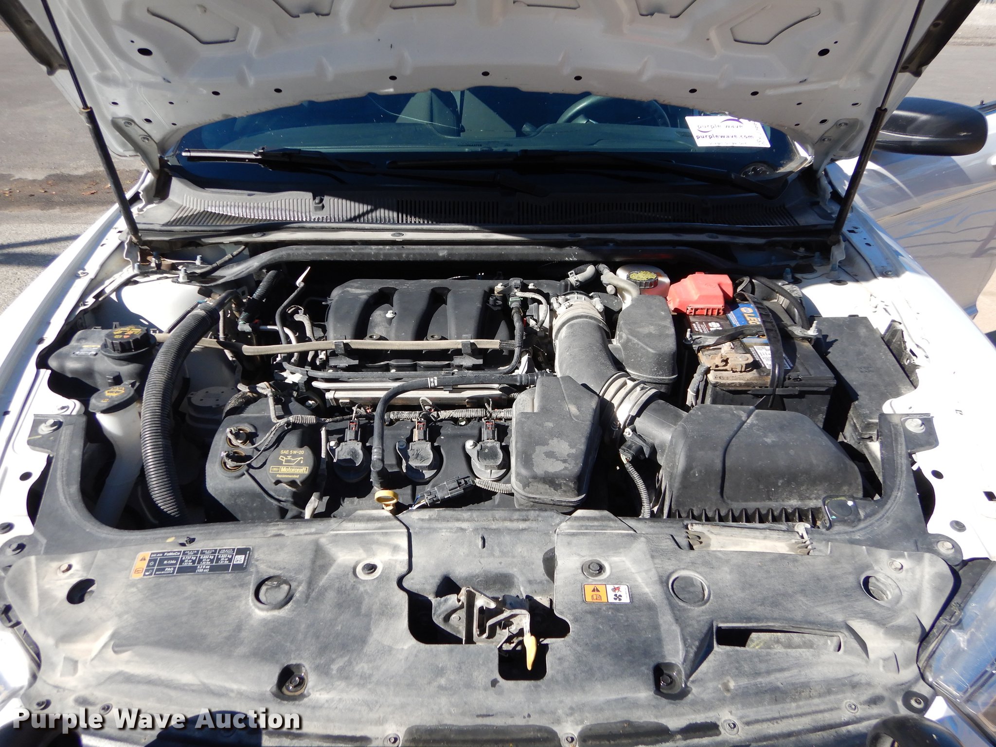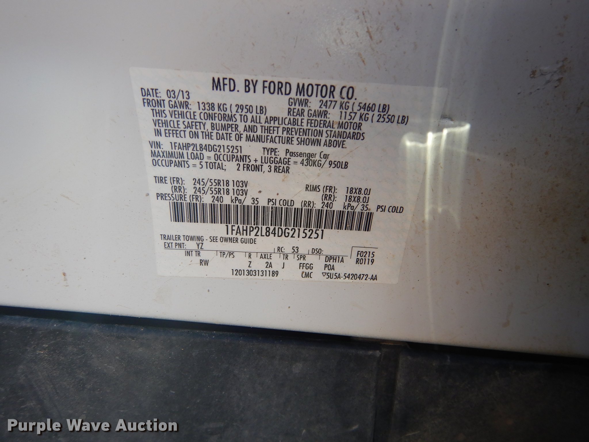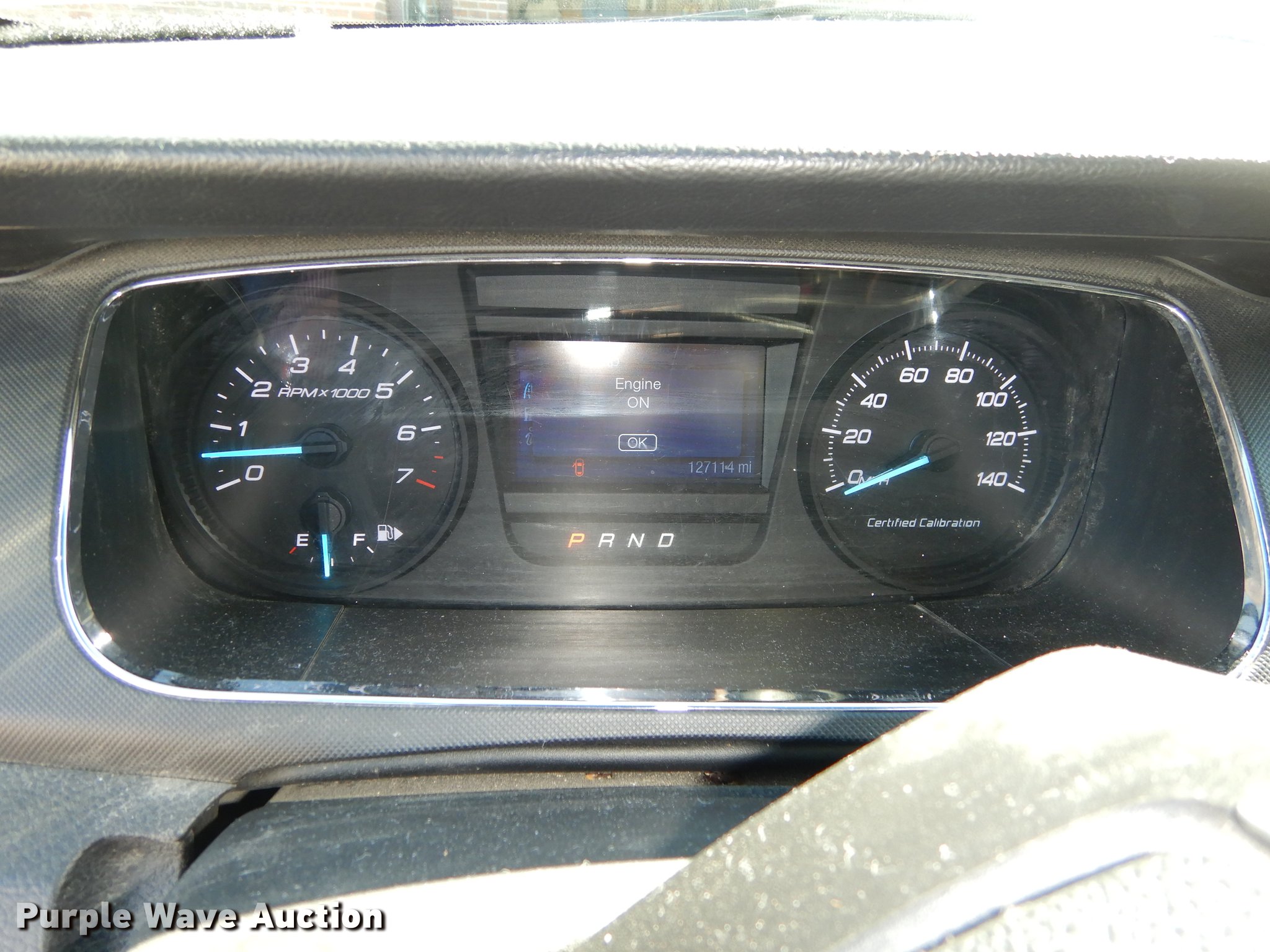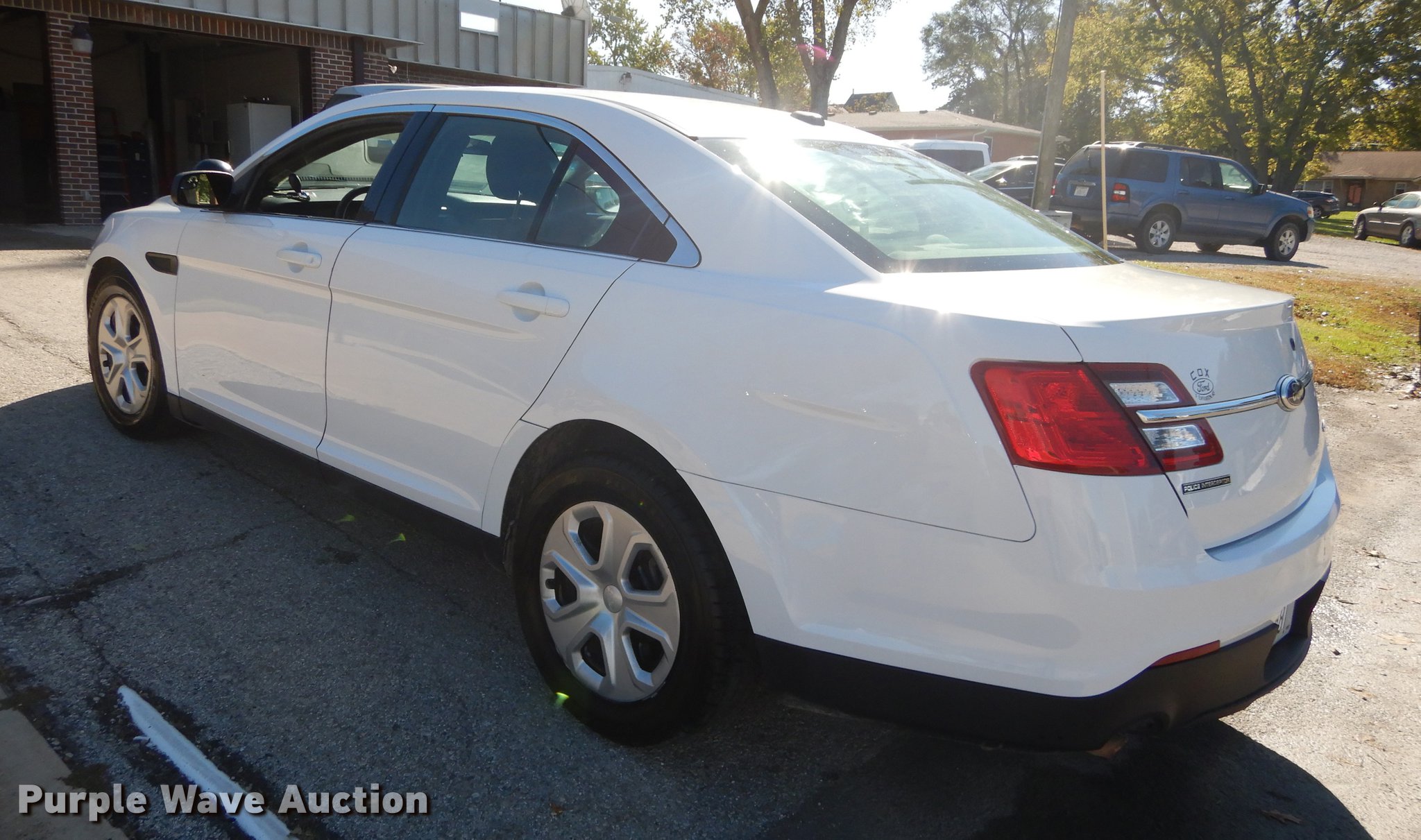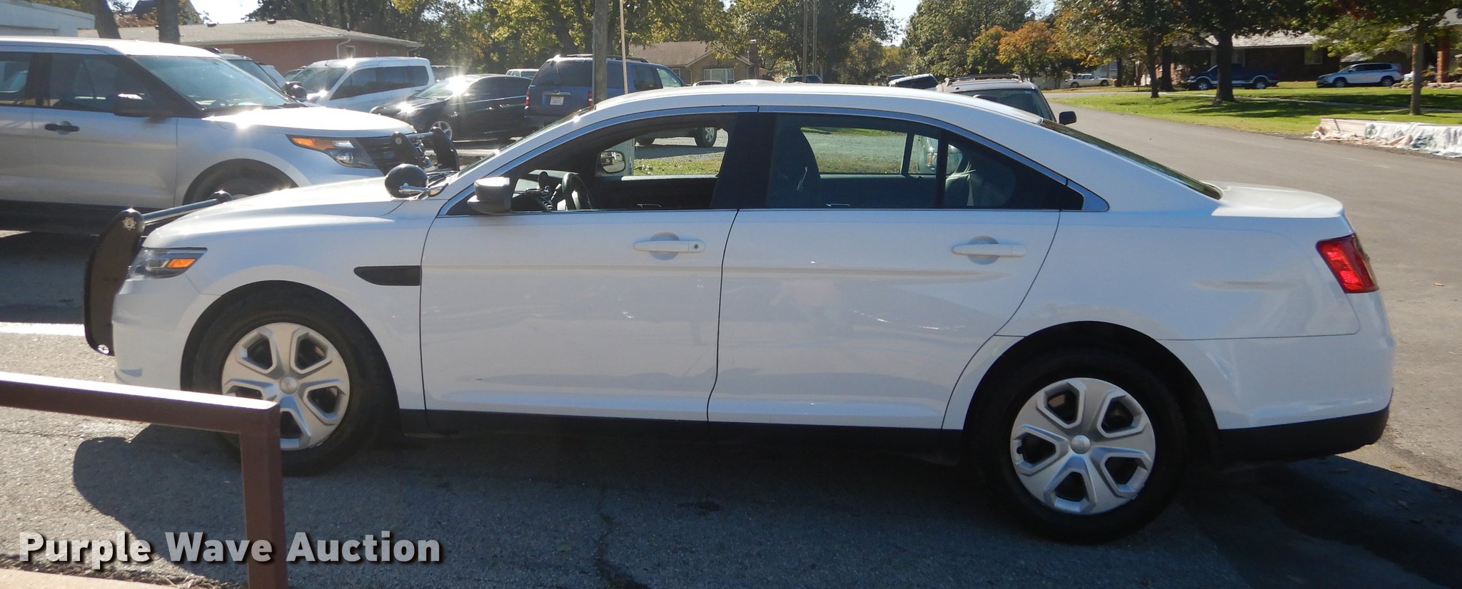 Purple Wave is selling a used Passenger Vehicle in Kansas. This item is a 2013 Ford Taurus Police Interceptor with the following: 127,114 miles on odometer, 3.5L V6 DOHC 24V gas engine, Automatic transmission, AC and heat, Tilt, Cruise, AM/FM/CD, Power windows, locks, mirrors, and seat, Cloth front interior, Vinyl rear interior, Spotlight, Push bar, 245/55R18 tires, Cracked windshield, No center console