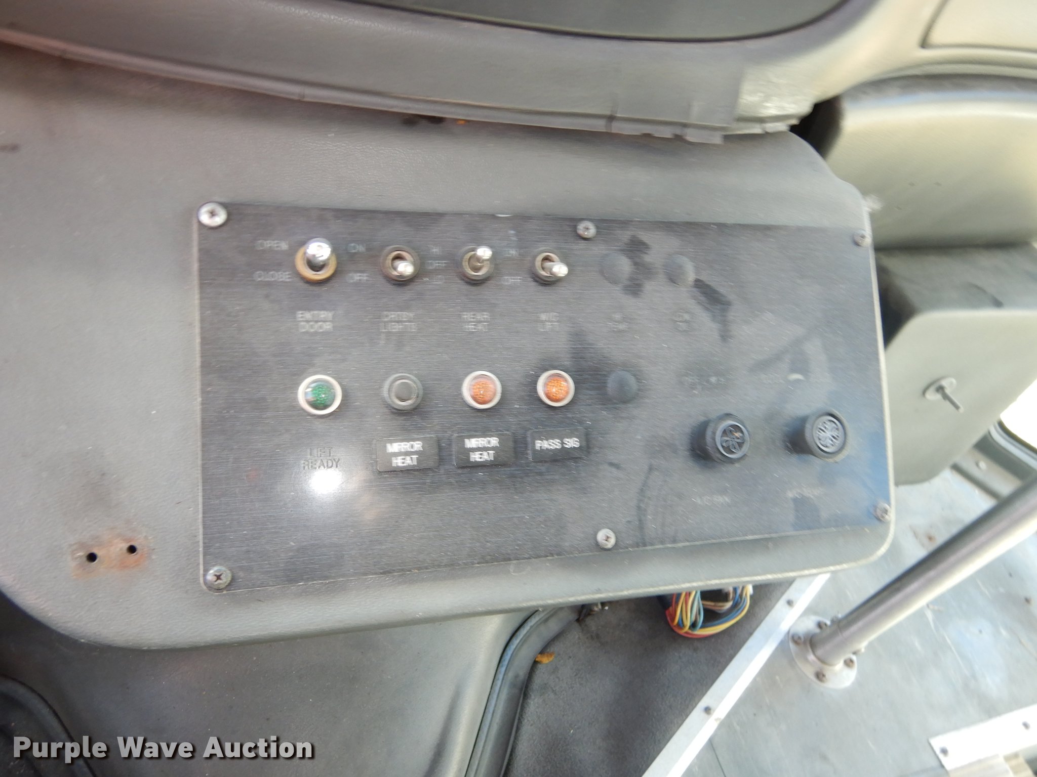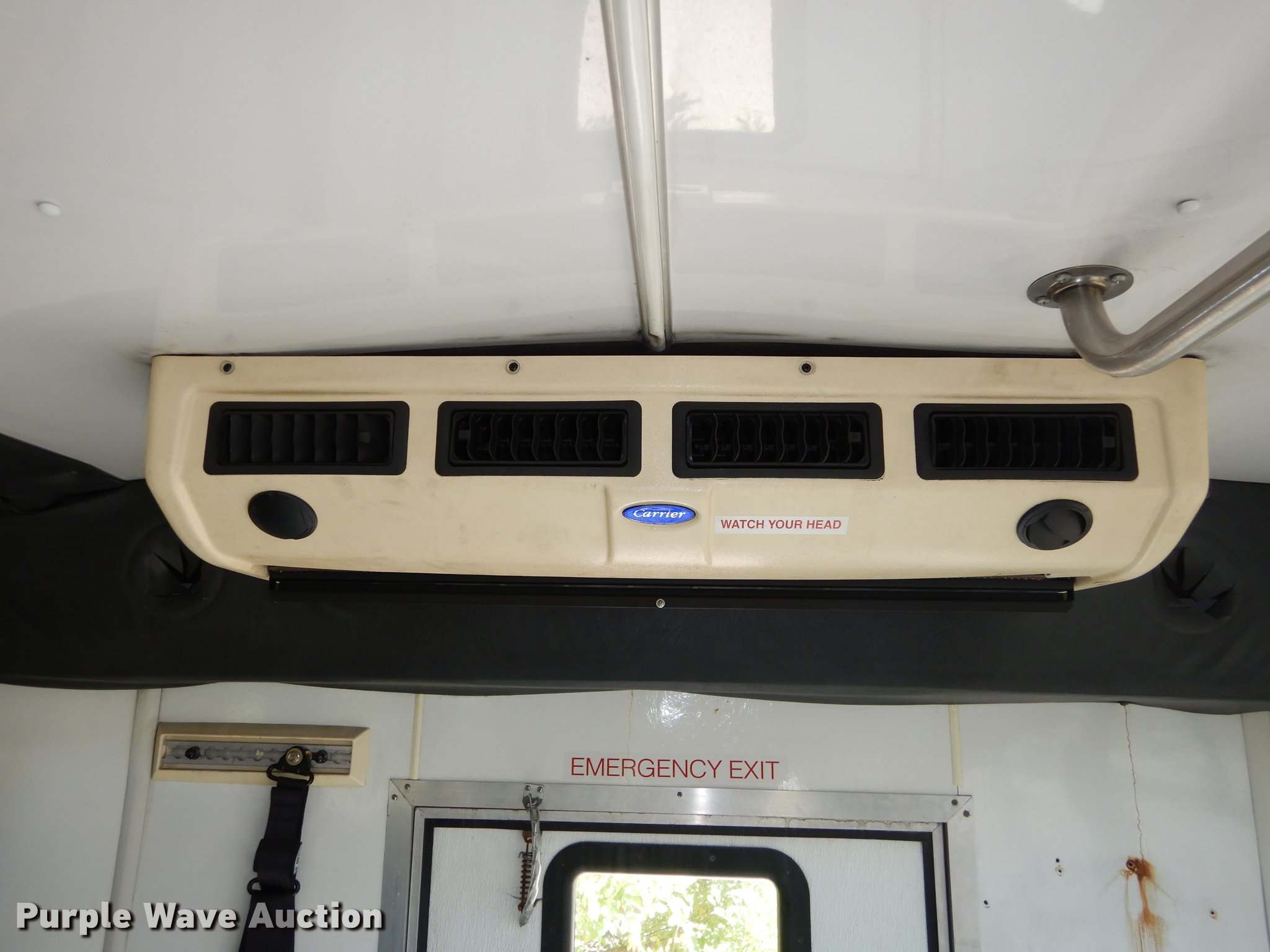 Purple Wave is selling a used Bus in Kansas. This item is a 2004 Ford E450 Super Duty Eldorado AeroTech shuttle bus with the following: Unknown miles on odometer, 6.0L V8 OHV 32V diesel engine, Automatic transmission, Single axle, AC and heat, Tilt, Cruise, AM/FM/cassette, Power drivers seat, Suspension seat, Cloth drivers interior, Vinyl passenger interior, Ceiling handrail, Six passenger capacity, Seat belts, Ricon S2010-S10 wheelchair lift, Serial 00171585, (2) wheelchair tie down areas, Ceiling, rear, and side emergency exits, Carrier roof AC unit, Block heater, Spring suspension, Hydraulic brakes, 13' wheelbase, Goodyear 225/75R16 tires, GVWR 14,050 lbs, Engine disassembled, parts inside bus, Side mirrors missing, Parts missing, Unknown operating condition, parts only, Unit must be towed or hauled