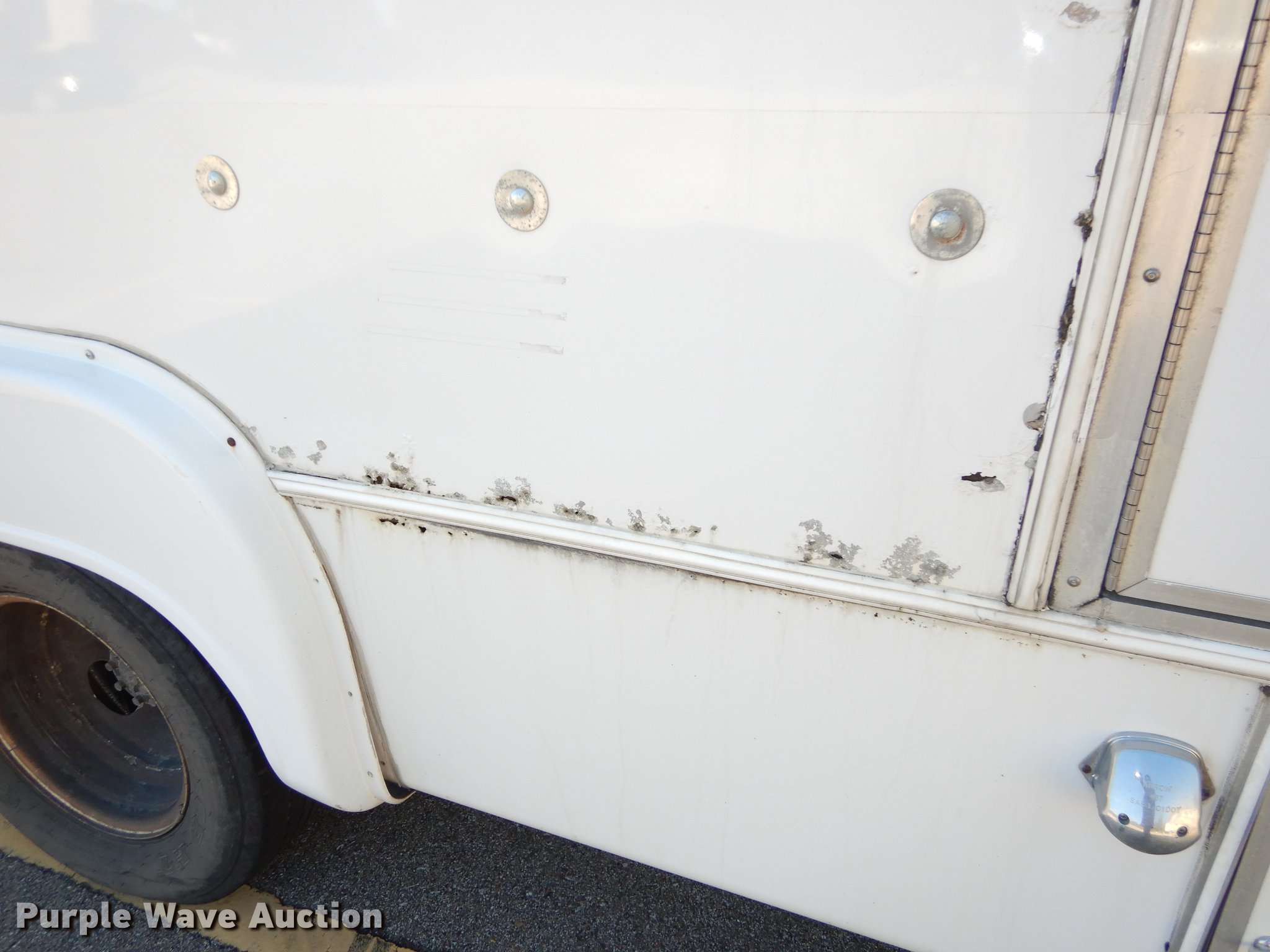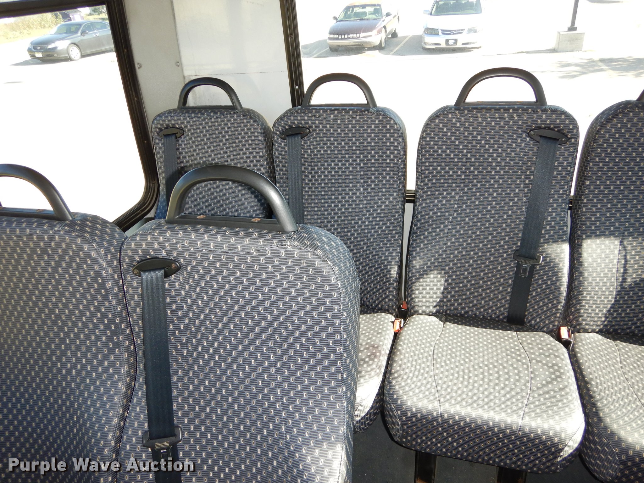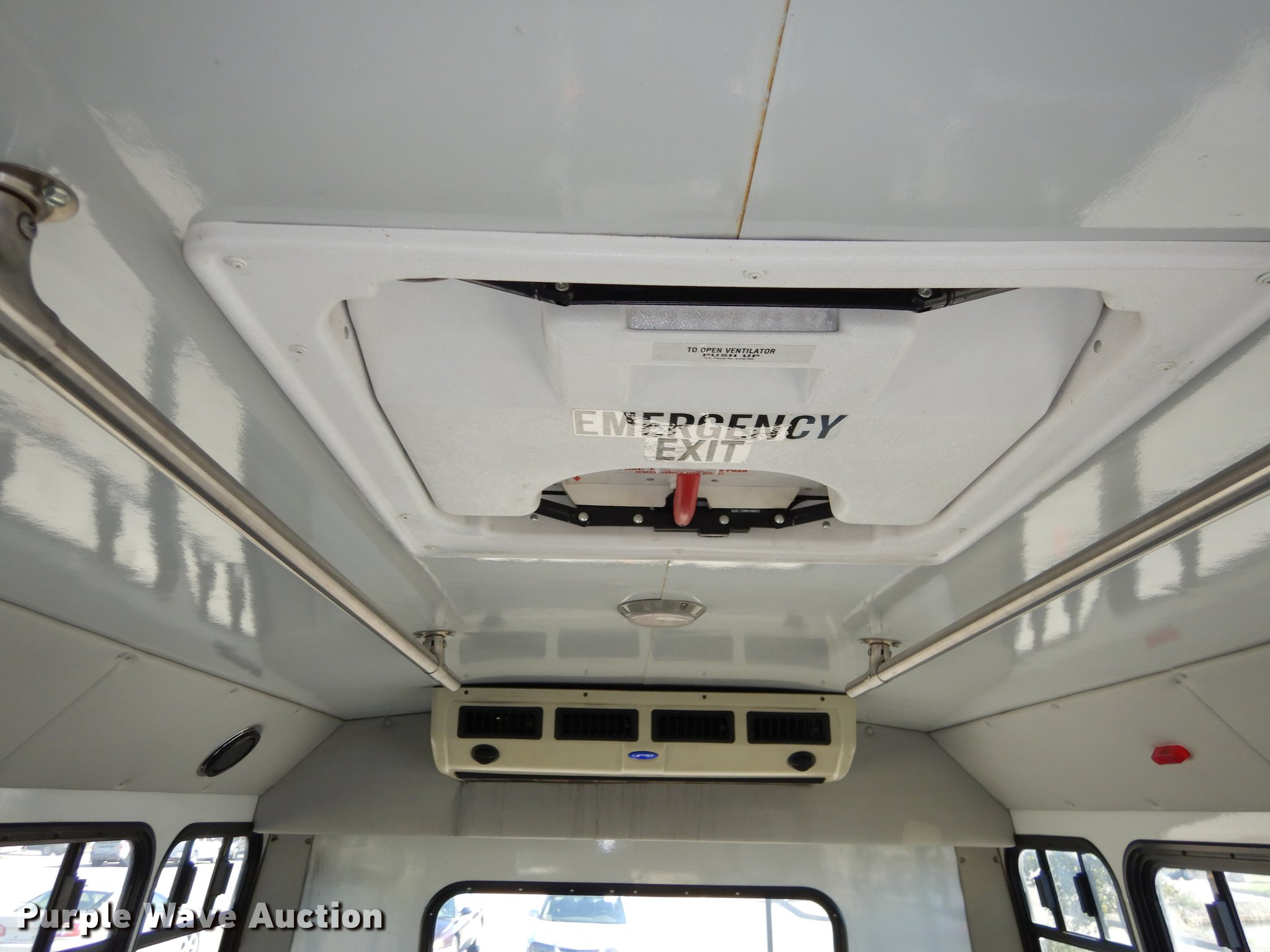 Purple Wave is selling a used Bus in Kansas. This item is a 2006 Ford Econoline E450 Super Duty shuttle bus with the following: 320,659 miles on odometer, 6.8L V10 SOHC 20V gas engine, Automatic transmission, Single axle, AC and heat, Tilt, Cruise, AM/FM/cassette, Power mirrors, Suspension seat, Cloth drivers interior, Vinyl passenger interior, Ceiling handrail, 21 passenger capacity, Seat belts, Braun NL9171B wheelchair lift, No controls, Serial 03-01415, Ceiling, rear, and side emergency exits, Carrier roof AC unit, Spring suspension, Mor/Ryde rubber, Hydraulic brakes, 174" wheelbase, Goodyear 225/75R16 tires, GVWR 14,050 lbs, Dead battery, Unit will not stay running, ABS light on, Check engine light on