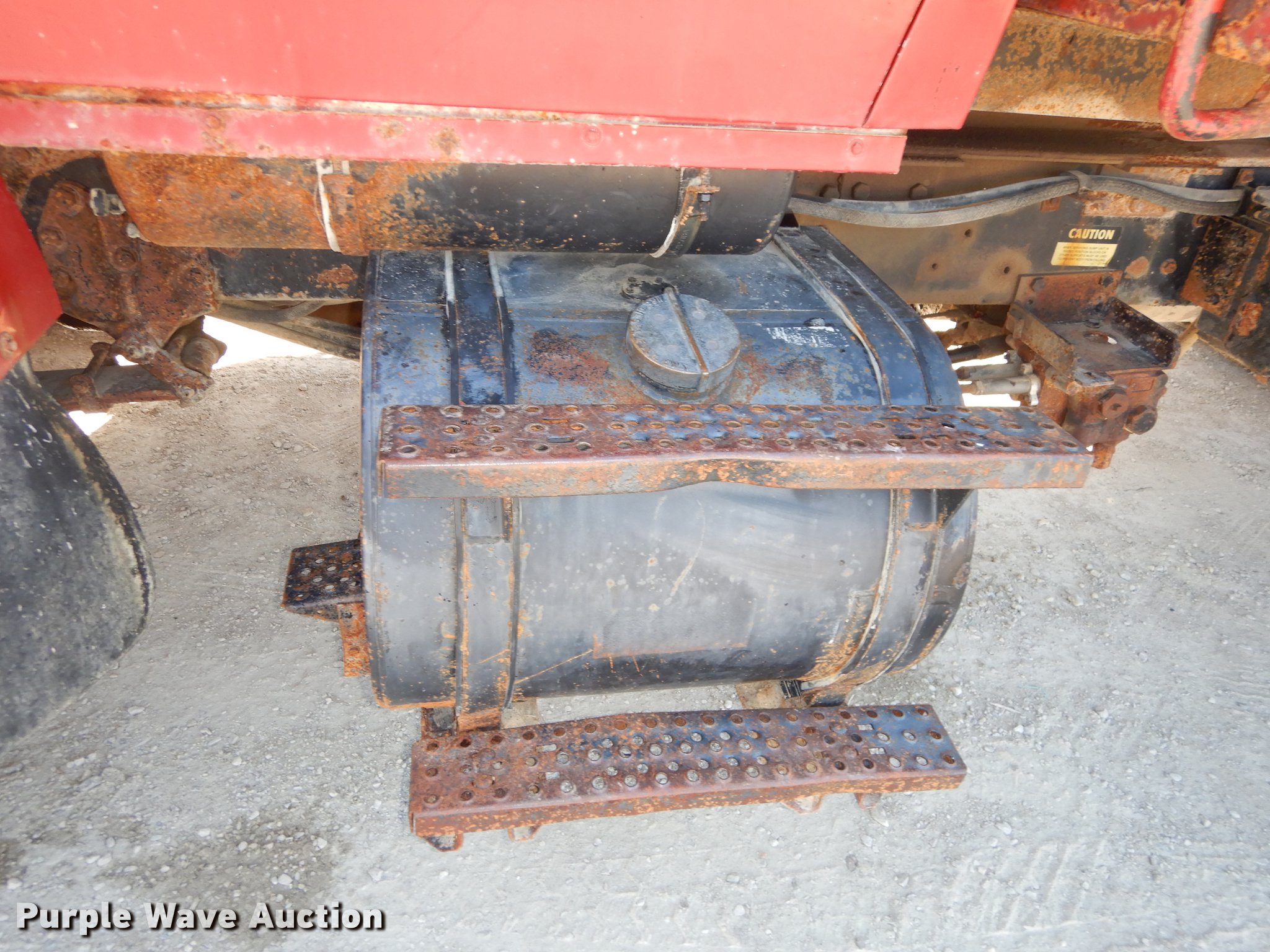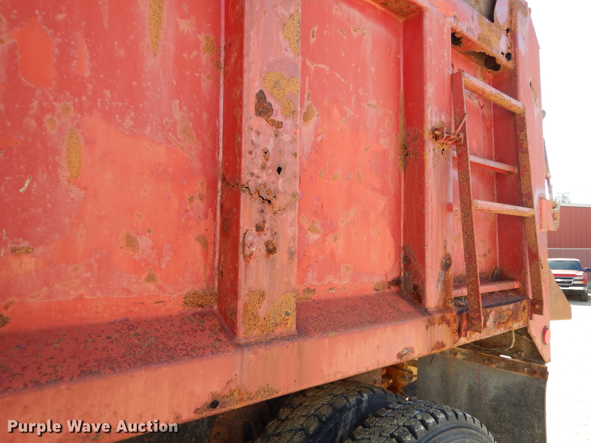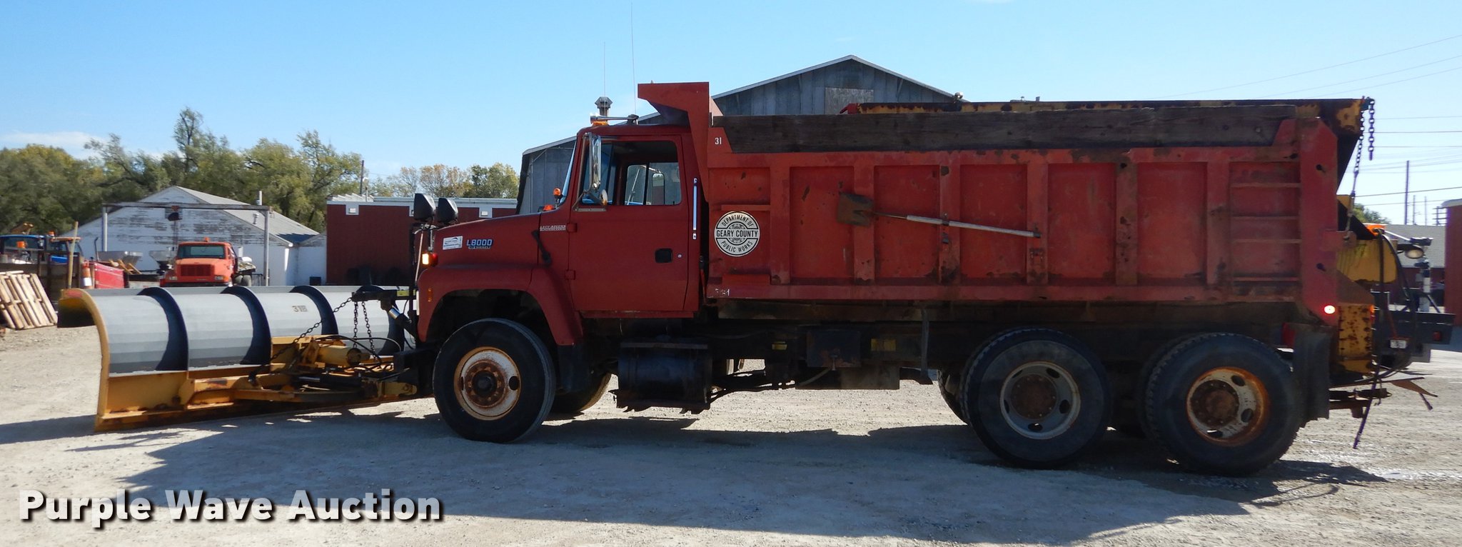 Purple Wave is selling a used Construction Dump Truck in Kansas. This item is a 1995 Ford L8000 dump truck with the following: 702,367 miles on odometer, Cummins ISC 8.3L L6 diesel engine, Automatic transmission, Tandem axle, Heat, AM/FM, Air suspension seat, Vinyl interior, Front and rear work lights, PTO, Galion steel dump bed, 15'L x 8'W, 31" side height, 10-12 yd capacity, Manual end gate, Single ram hoist, Flink snow plow, 12'W, Side markers, Flink LMC5 V-box spreader, 15 yd. capacity, Dual fuel tanks, Spring suspension, Air brakes, 11R22.5 tires, GVWR 54,600 lbs, End gate included, Decals will be removed prior to auction, Frame cracked, Unit# 31
