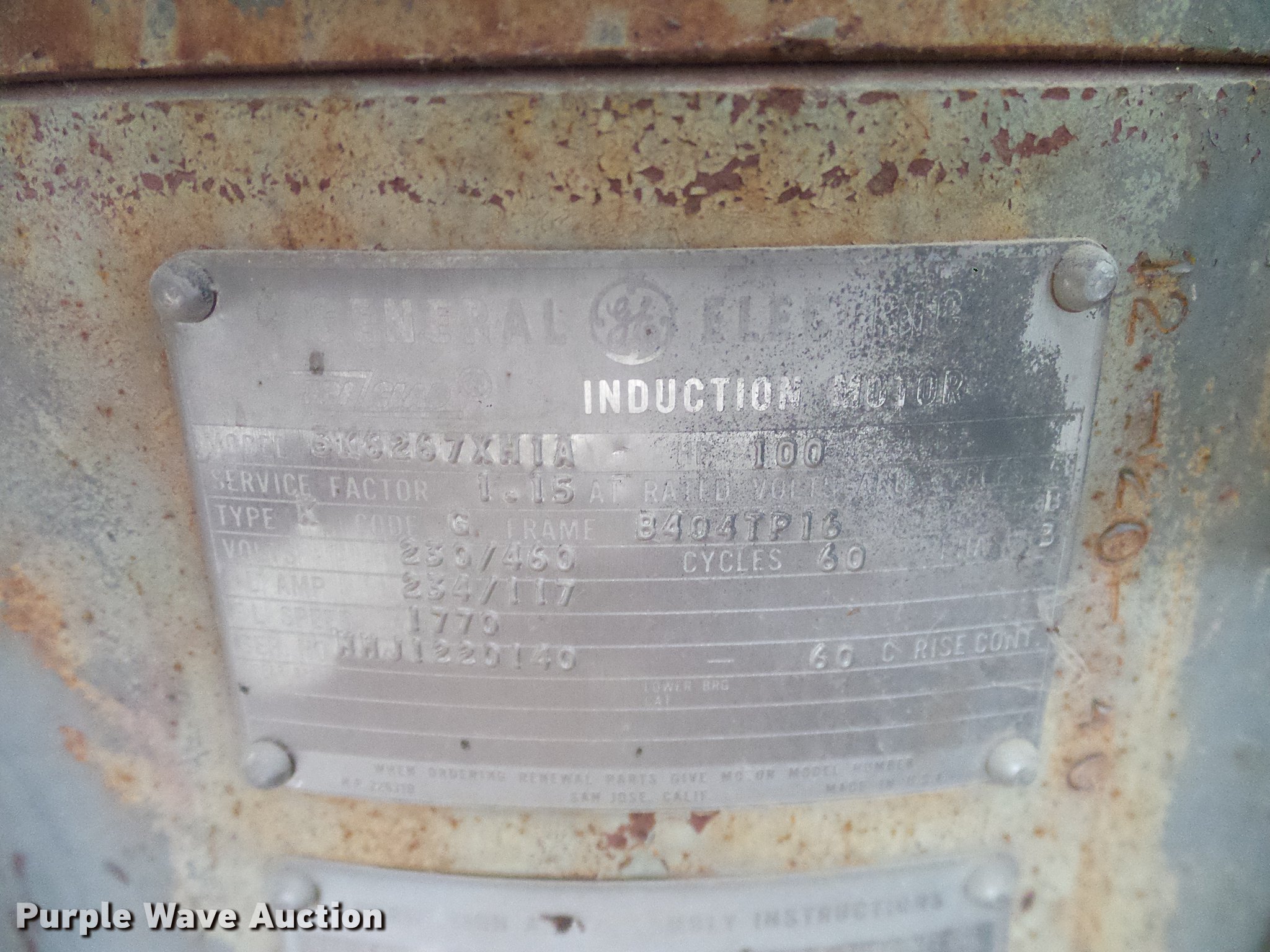 Purple Wave is selling a used Pump in Oklahoma. This item is a GE vertical shaft turbine pump with the following: 100 HP electric motor, 13" discharge, 17'4"L, Needs to be repaired, Serial 91L29898