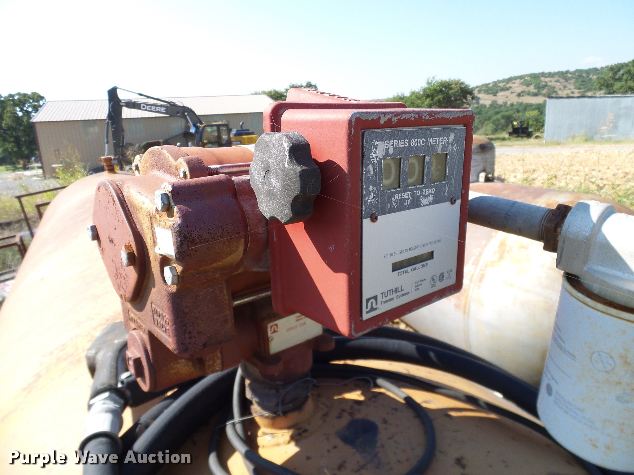 Fuel tank. 146"L x 45" diameter, 990 gallon capacity, Tuthill 700B pump with 800C meter 120V, Skid mounted, Previously used for diesel. Oklahoma Department of Wildlife Conservation. 19333 OK-49 Scenic. Lawton, OK 73507