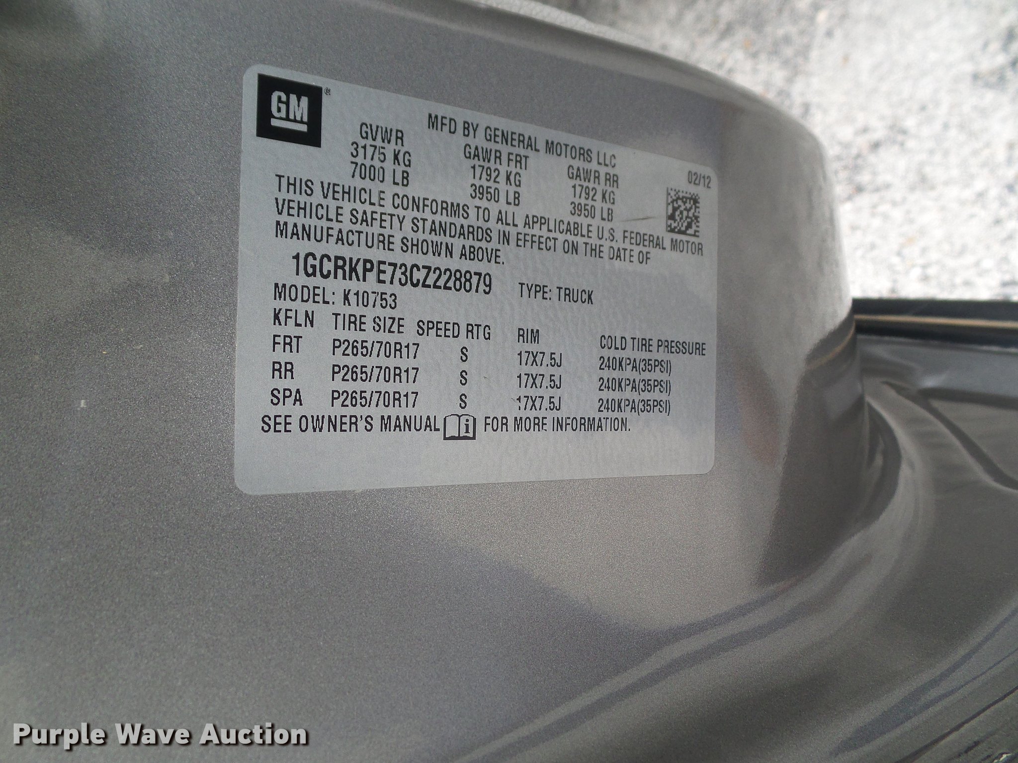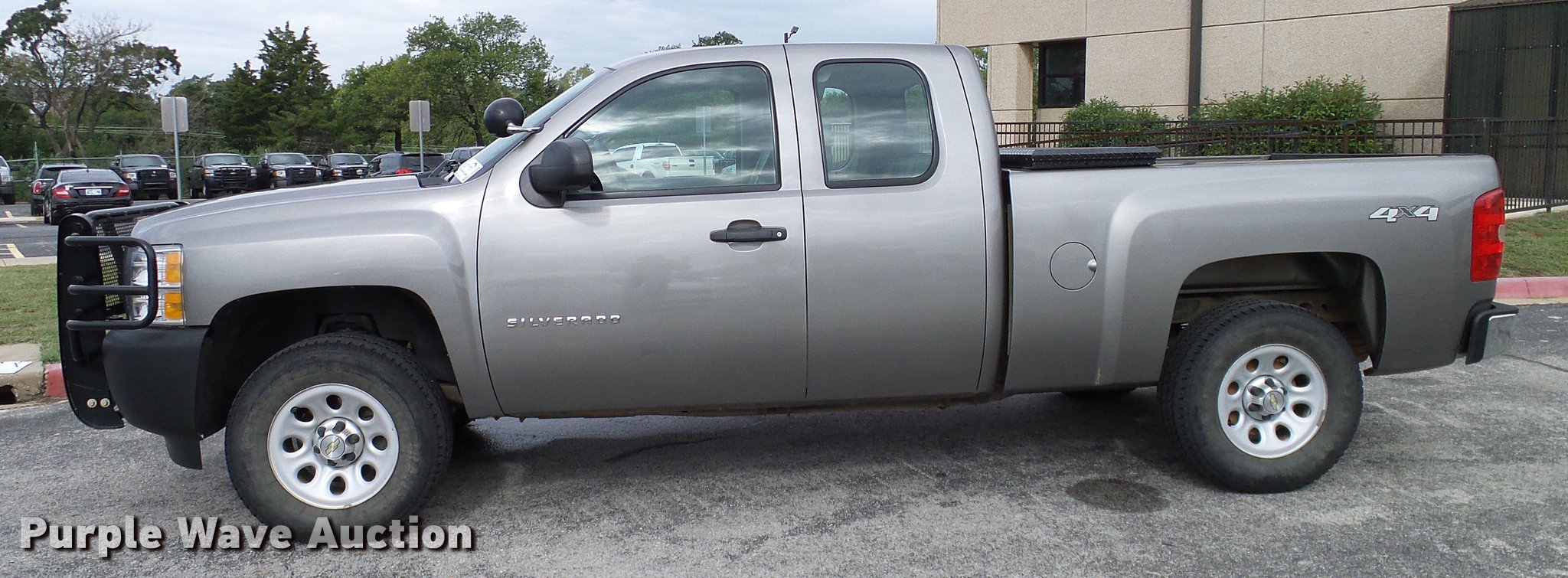 Purple Wave is selling a used 1/2 Ton Pickup or Van in Oklahoma. This item is a 2012 Chevrolet Silverado 1500 Ext. Cab pickup truck with the following: 120,583 miles on odometer, 5.3L V8 OHV 16V FFV gas engine, Automatic transmission, Four wheel drive, AC and heat, Tilt, Cruise, AM/FM, Power windows, locks, and mirrors, Vinyl interior, Fog lights, Spotlight, Grill guard, Toolbox, Receiver hitch, Trailer wiring, 265/70R17 tires