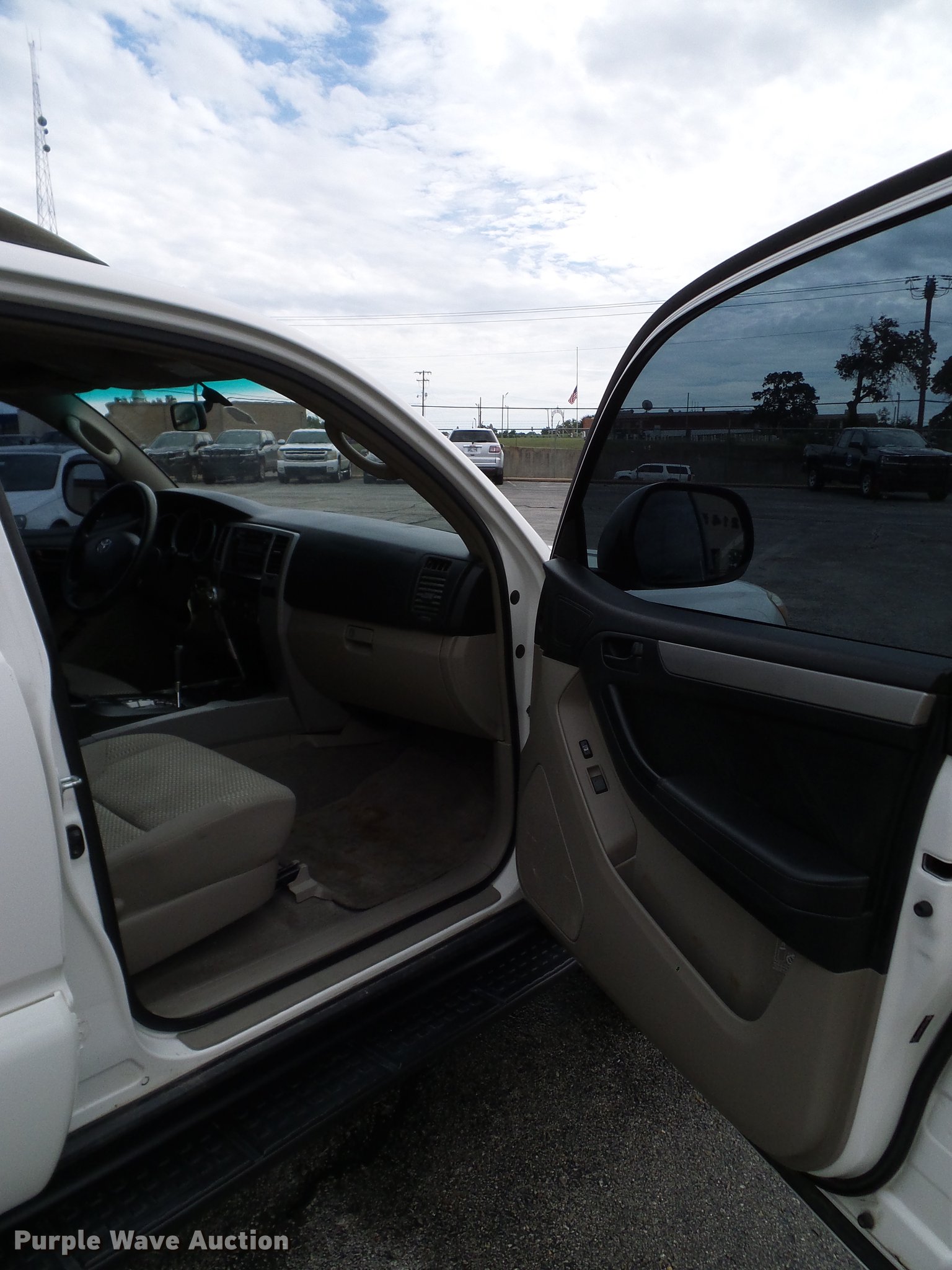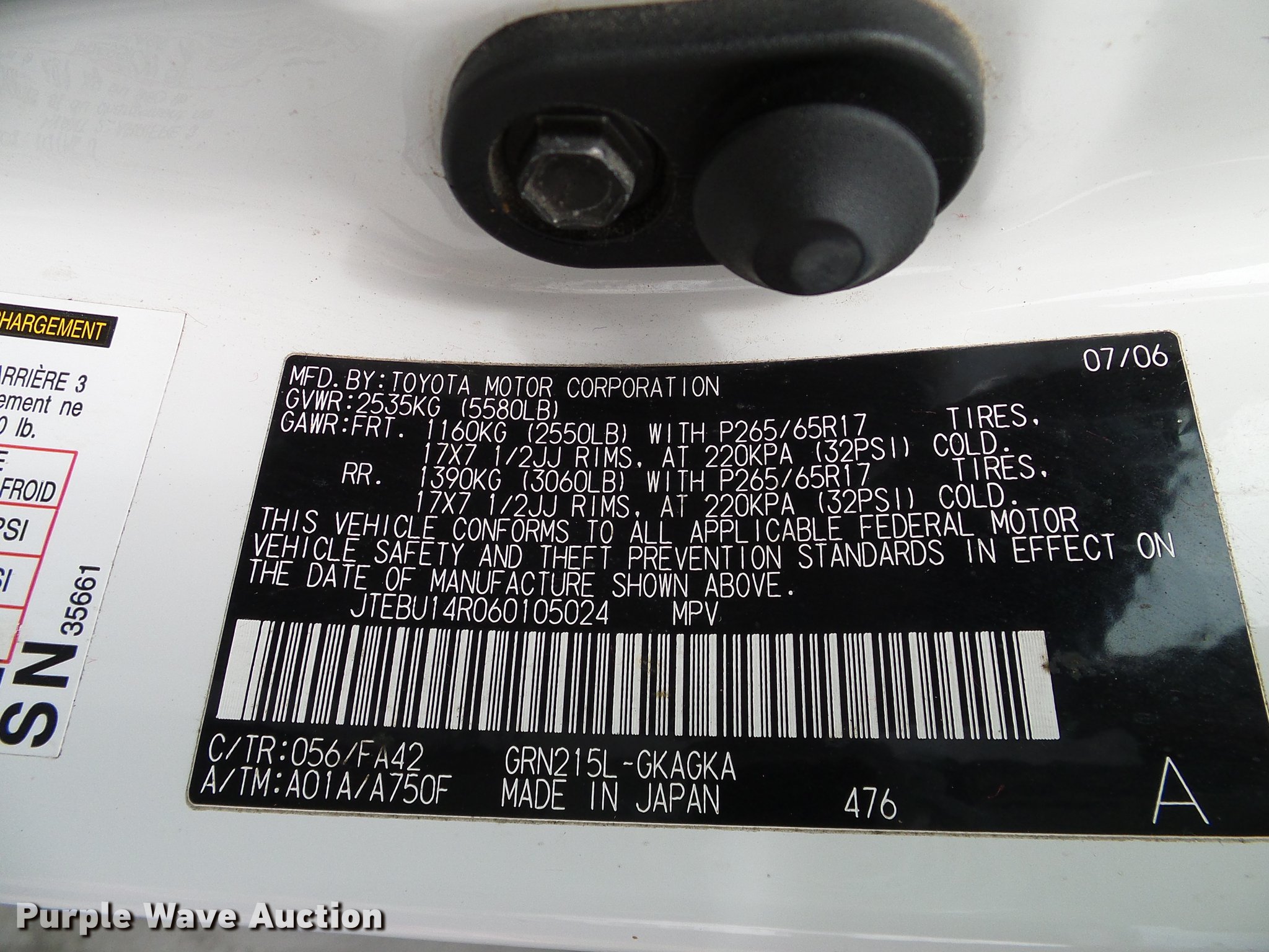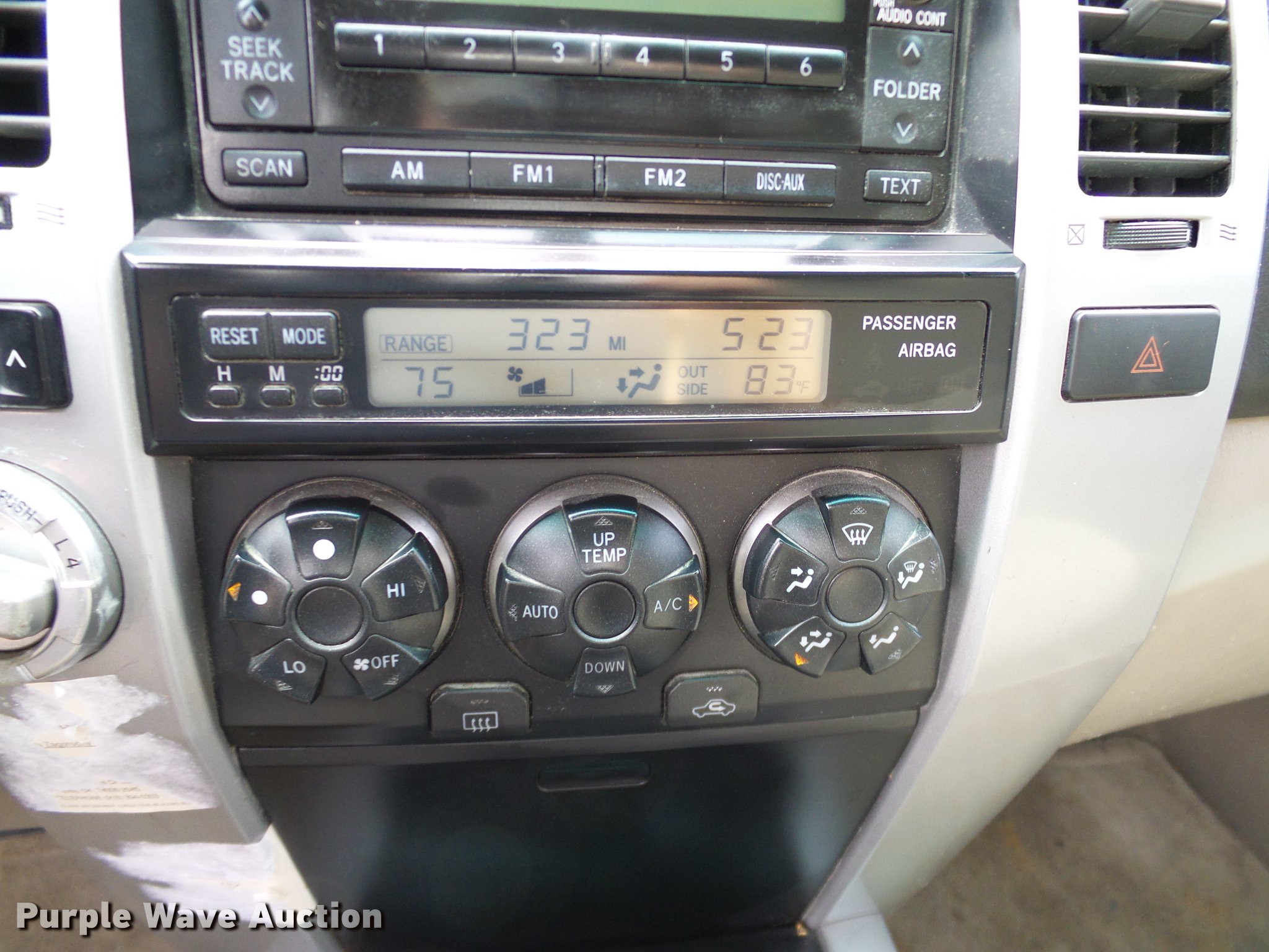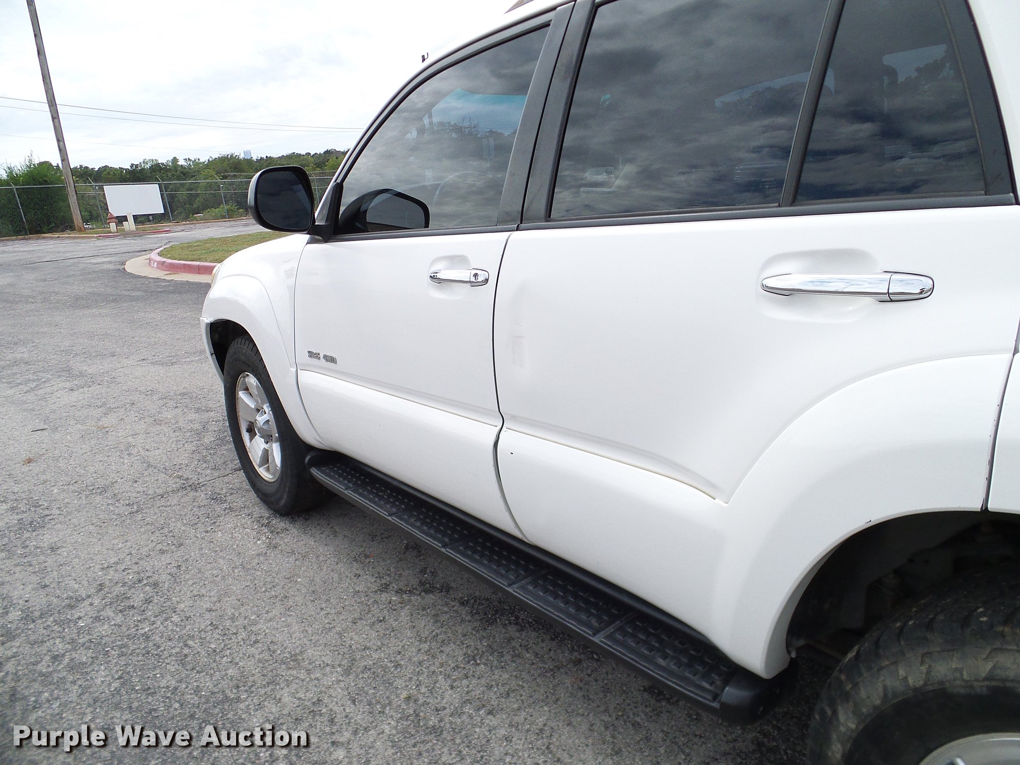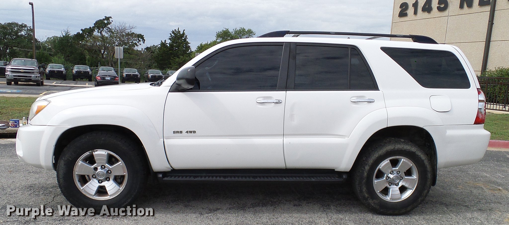 Purple Wave is selling a used Passenger Vehicle in Oklahoma. This item is a 2006 Toyota 4Runner SR5 SUV with the following: 254,565 miles on odometer, 4.0L V6 DOHC 24V gas engine, Automatic transmission, Four wheel drive, AC and heat, Tilt, Cruise, AM/FM/CD, Power windows, locks, and mirrors, Cloth interior, Running boards, Receiver hitch, 265/70R17 tires, Cracked windshield, Left taillight broken