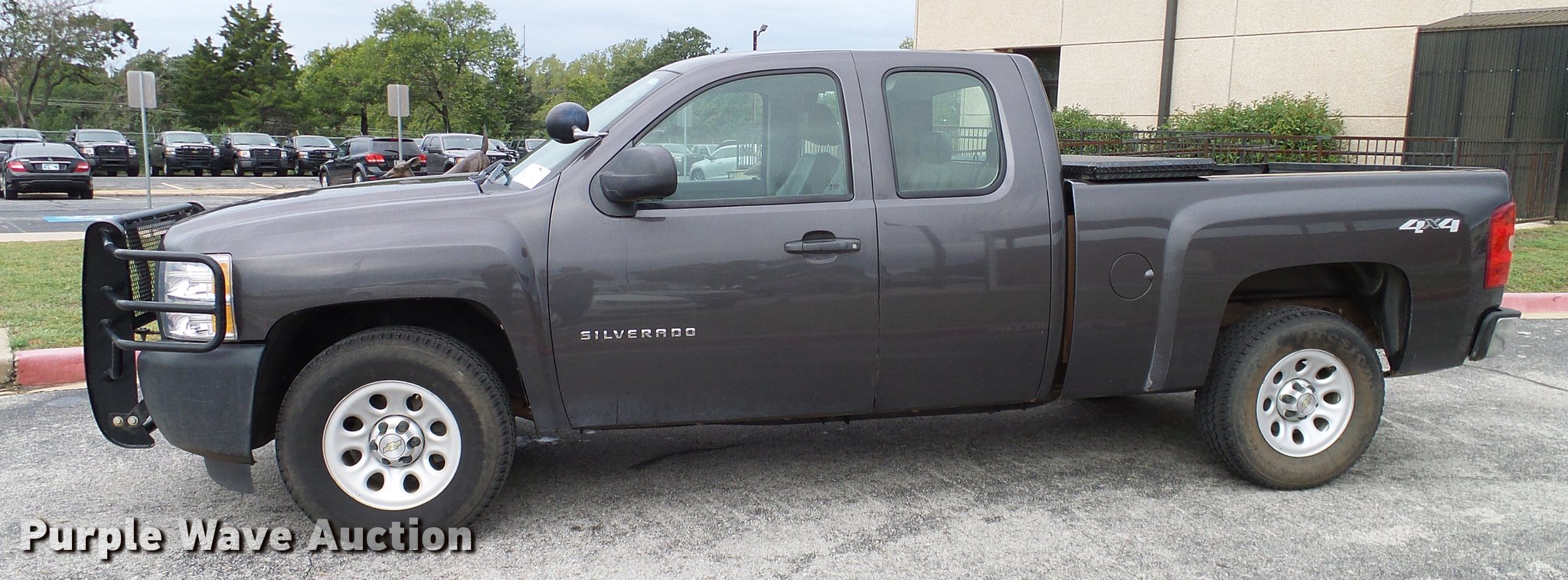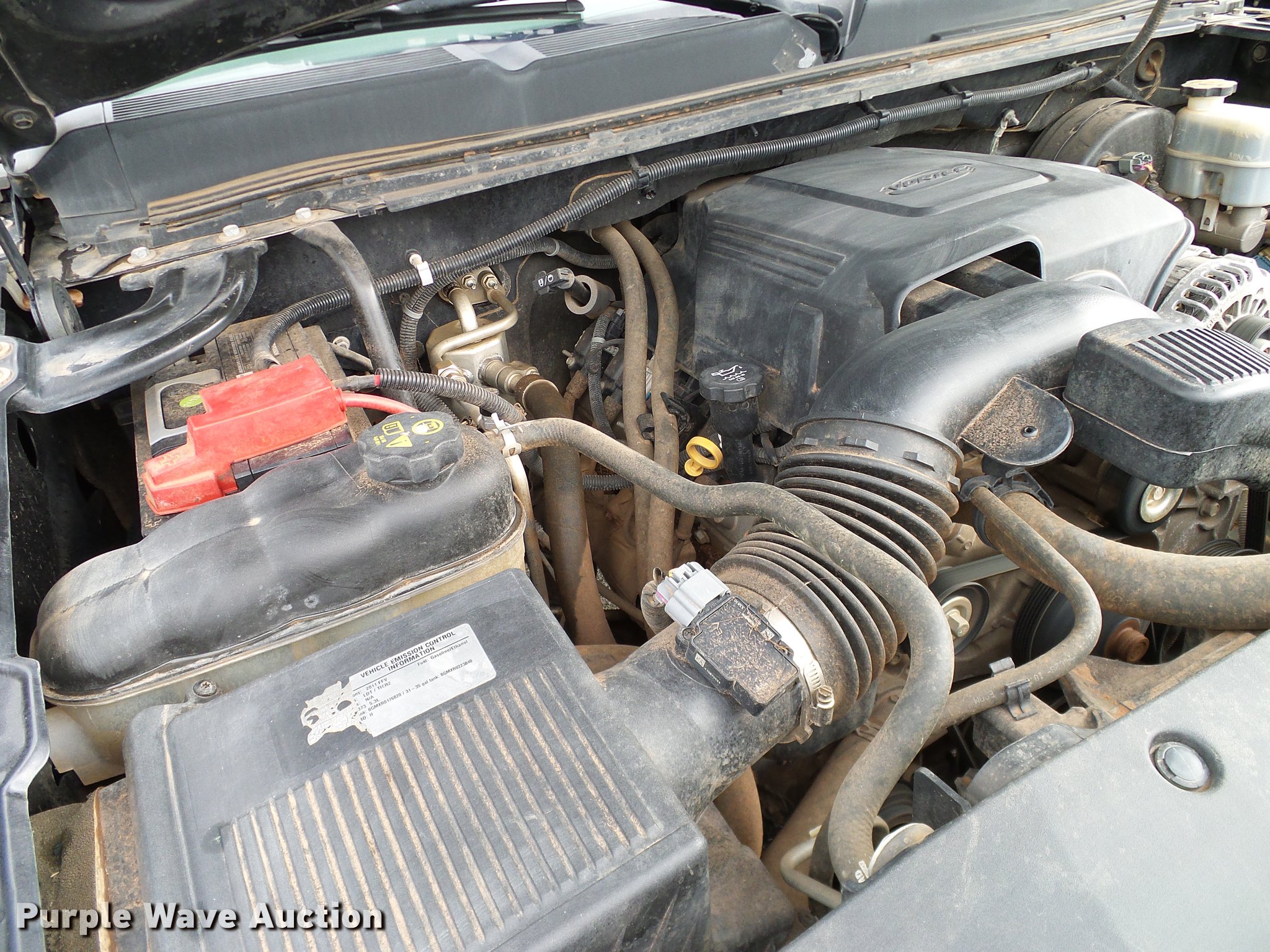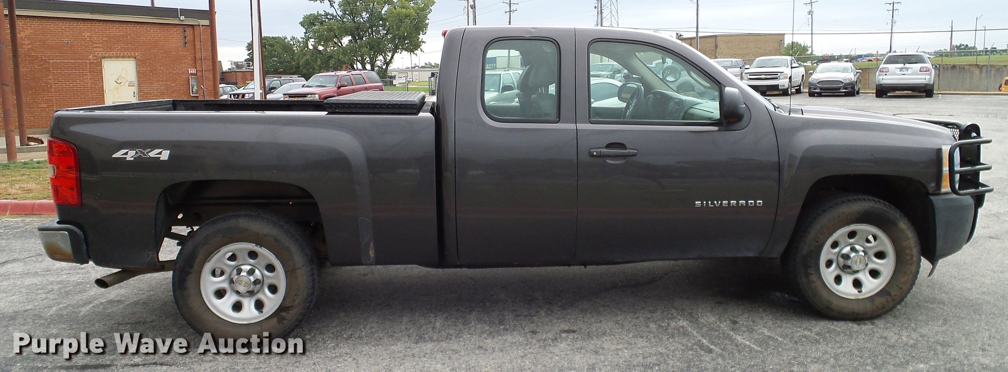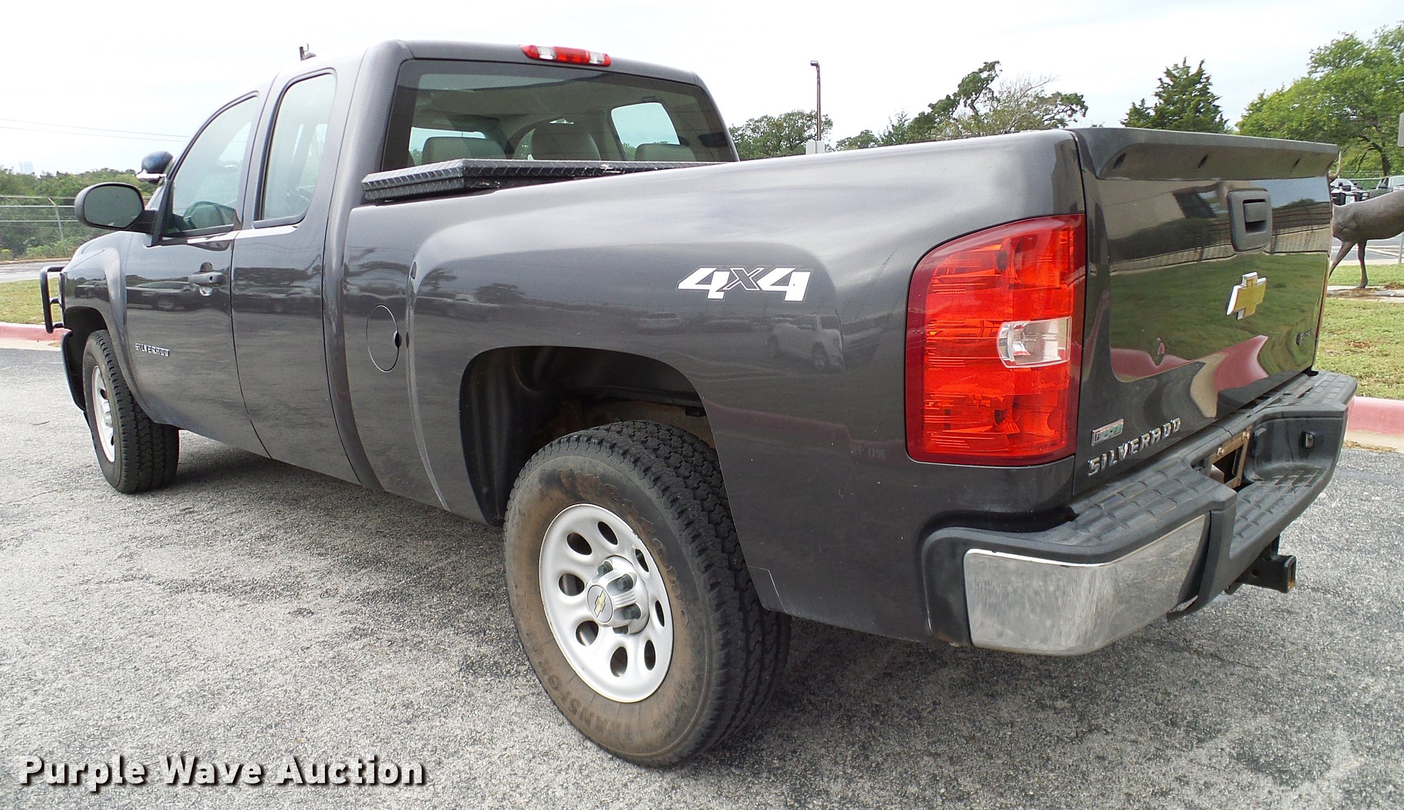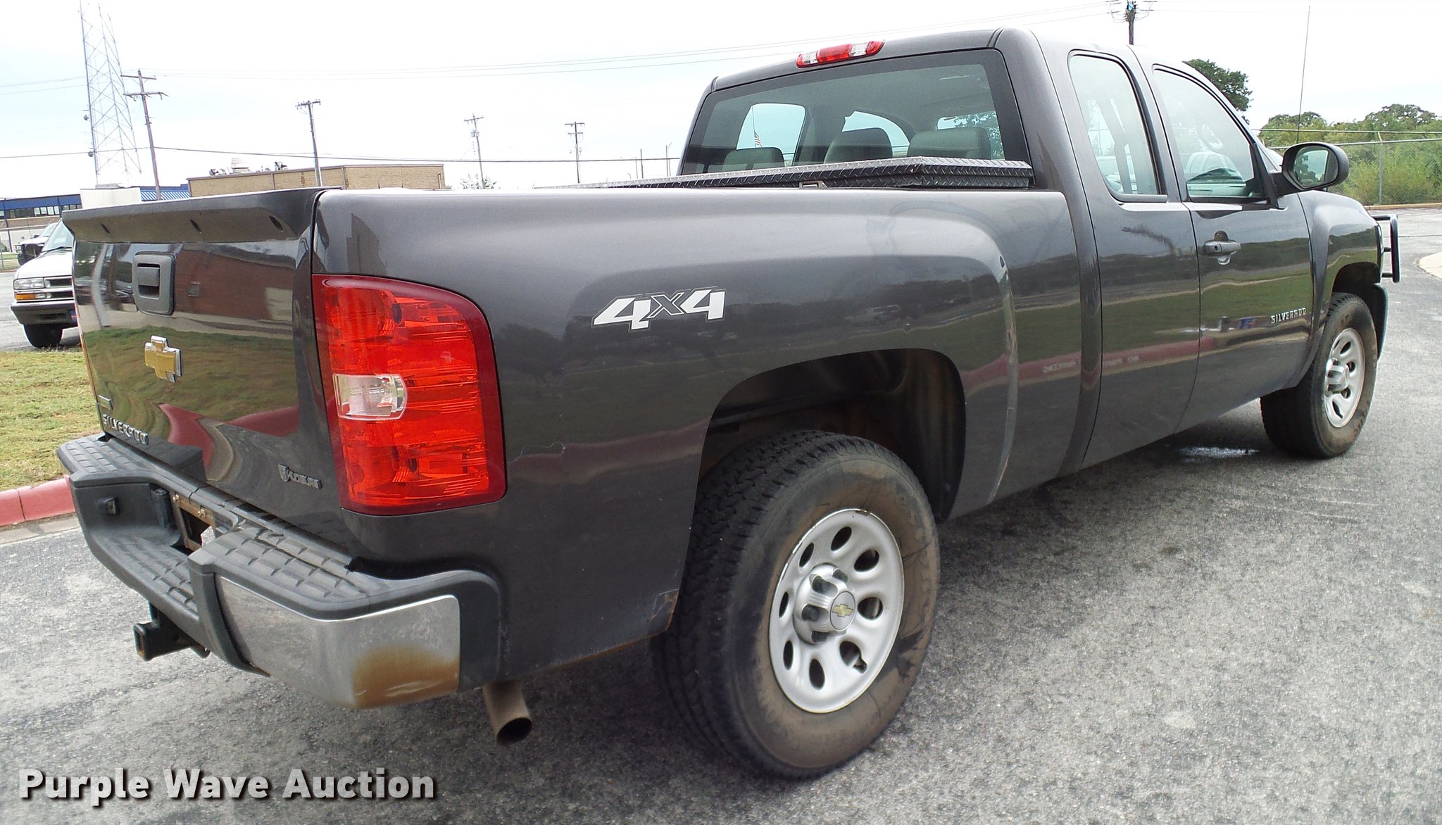 Purple Wave is selling a used 1/2 Ton Pickup or Van in Oklahoma. This item is a 2011 Chevrolet Silverado 1500 Ext. Cab pickup truck with the following: 130,980 miles on odometer, 5.3L V8 OHV 16V FFV gas engine, Automatic transmission, Four wheel drive, AC and heat, Tilt, Cruise, AM/FM, Power windows, locks, and mirrors, Vinyl interior, Spotlight, Front tow hooks, Grill guard, Toolbox, Receiver hitch, Trailer wiring, 265/70R17 tires, Drivers side interior door handle broken