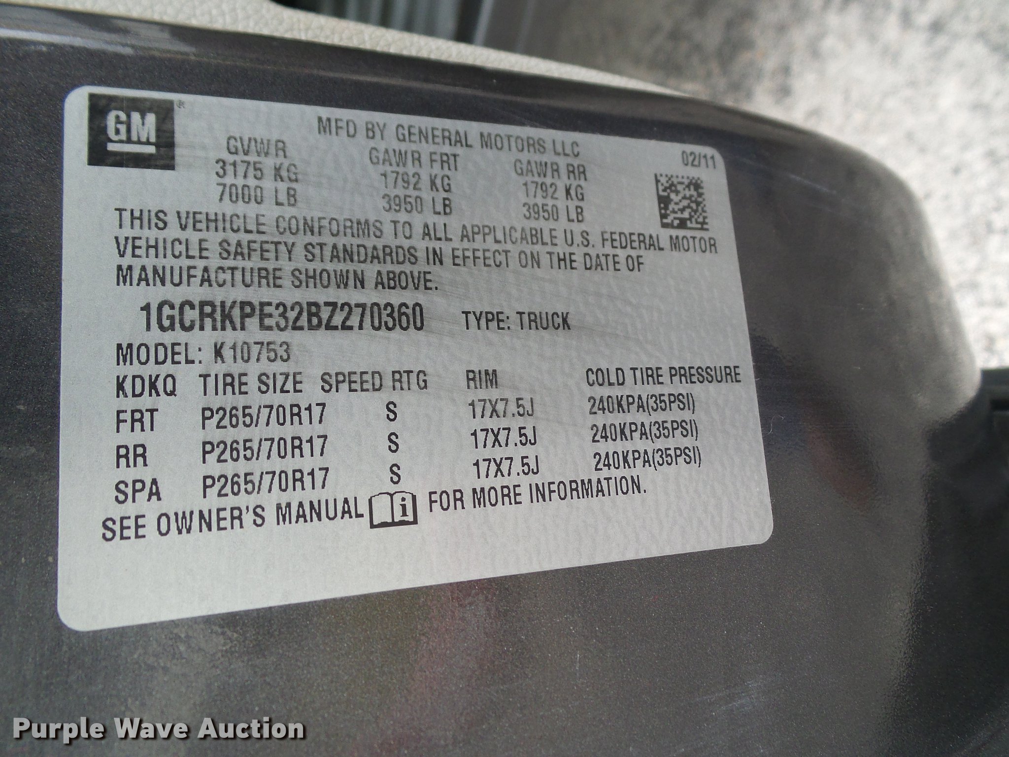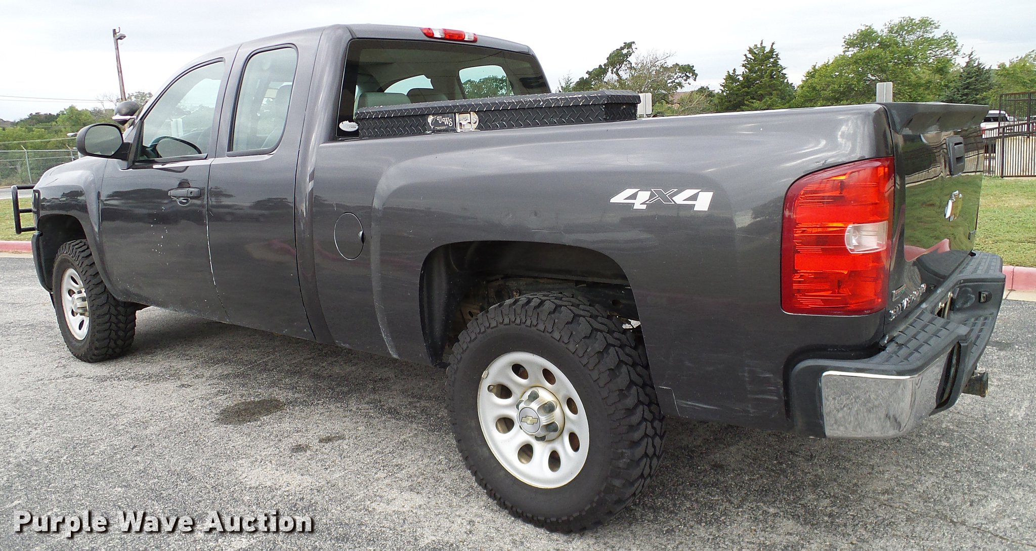 Purple Wave is selling a used 1/2 Ton Pickup or Van in Oklahoma. This item is a 2011 Chevrolet Silverado 1500 Ext. Cab pickup truck with the following: 107,564 miles on odometer, 5.3L V8 OHV 16V FFV gas engine, Automatic transmission, Four wheel drive, AC and heat, Tilt, Cruise, AM/FM, Power windows, locks, and mirrors, Spotlight, Front tow hooks, Grill guard, Toolbox, Receiver hitch, Trailer wiring, 265/70R17 tires, Cracked windshield