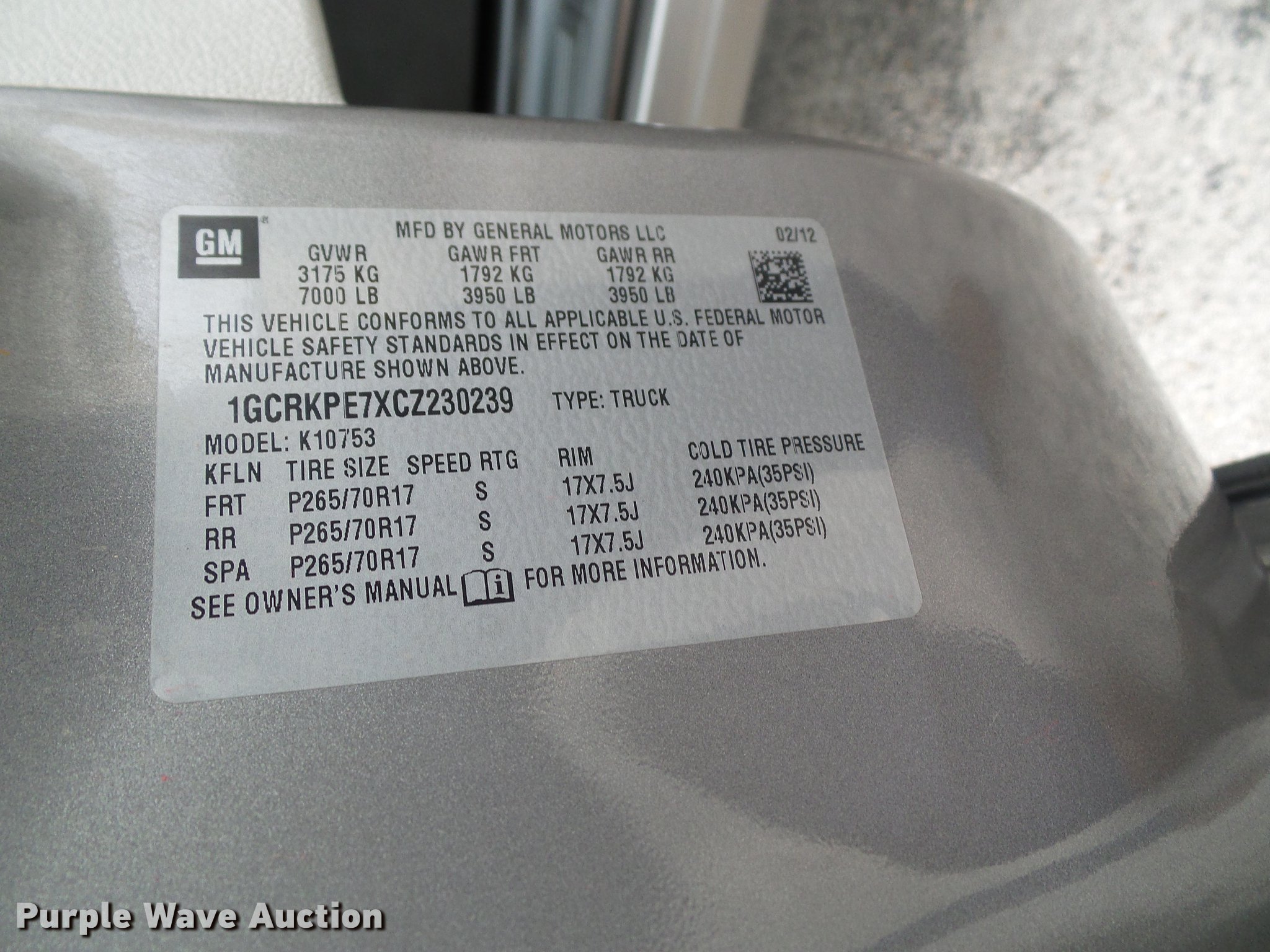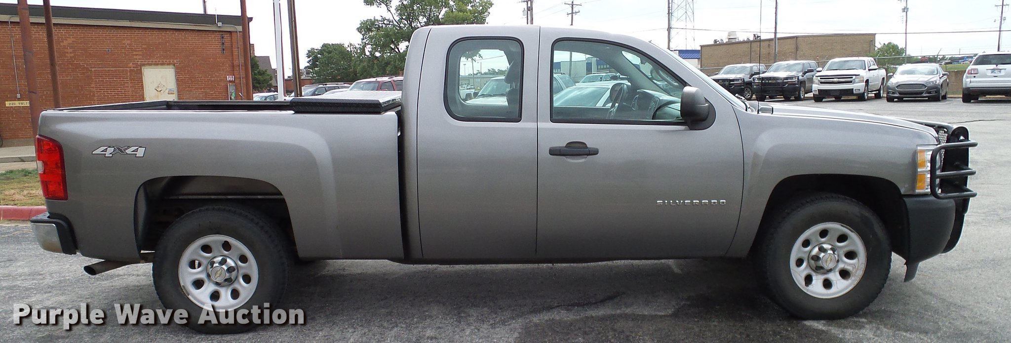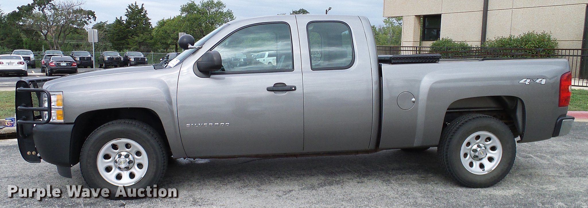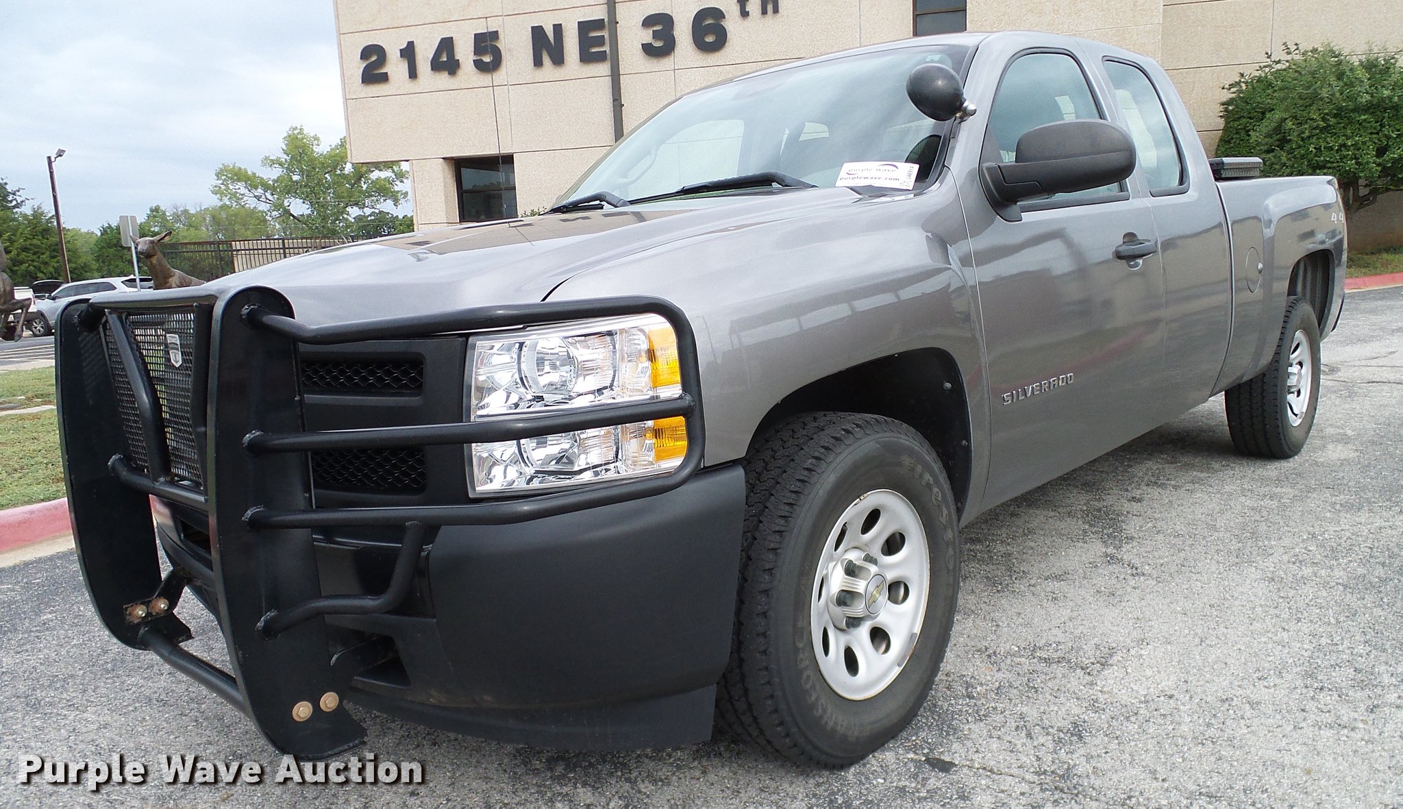 Purple Wave is selling a used 1/2 Ton Pickup or Van in Oklahoma. This item is a 2012 Chevrolet Silverado 1500 Ext. Cab pickup truck with the following: 119,398 miles on odometer, 5.3L V8 OHV 16V FFV gas engine, Automatic transmission, Four wheel drive, AC and heat, Tilt, Cruise, AM/FM, Power windows, locks, and mirrors, Vinyl interior, Spotlight, Front tow hooks, Grill guard, Toolbox, Receiver hitch, Trailer wiring, 265/70R17 tires