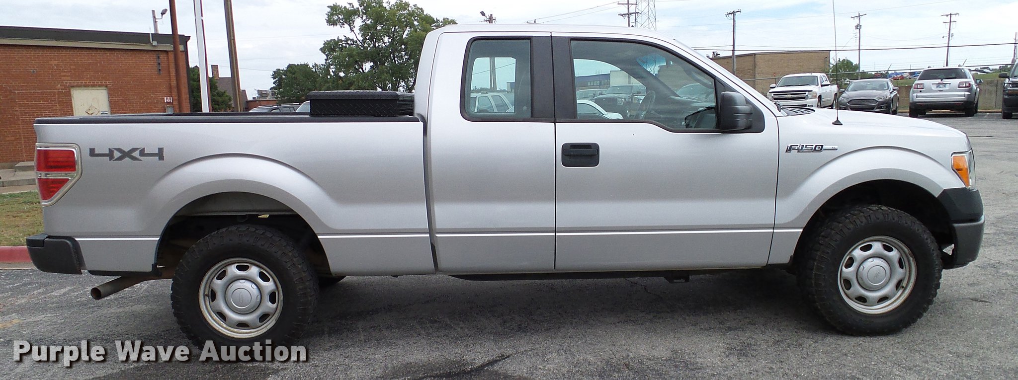 Purple Wave is selling a used 1/2 Ton Pickup or Van in Oklahoma. This item is a 2011 Ford F150 XL SuperCab pickup truck with the following: 97,537 miles on odometer, 5.0L V8 gas engine, Automatic transmission, Four wheel drive, AC and heat, Tilt, Cruise, AM/FM, Power windows, locks, and mirrors, Vinyl interior, Trailer brake controller, Toolbox, Receiver hitch, Trailer wiring, 265/70R17 tires, Check engine light illuminated