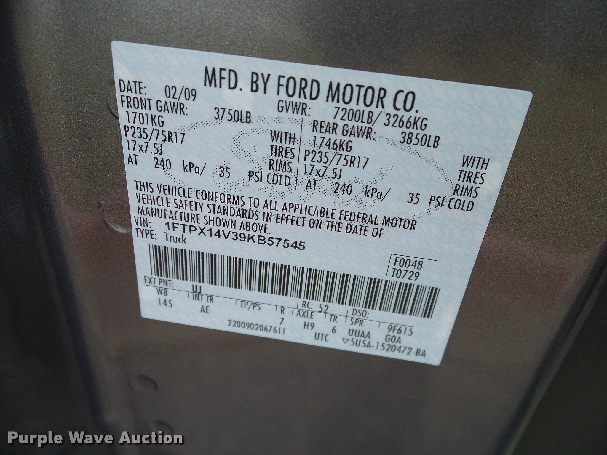 Purple Wave is selling a used 1/2 Ton Pickup or Van in Oklahoma. This item is a 2009 Ford F150 XL SuperCab pickup truck with the following: 103,788 miles on odometer, 5.4L V8 SOHC 24V FFV gas engine, Automatic transmission, Four wheel drive, AC and heat, Tilt, Cruise, AM/FM, Power windows, locks, and mirrors, Vinyl interior, Spotlight, Front tow hooks, Grill guard, Toolbox, Receiver hitch, Trailer wiring, 265/70R17 tires, Heater actuator needs repair