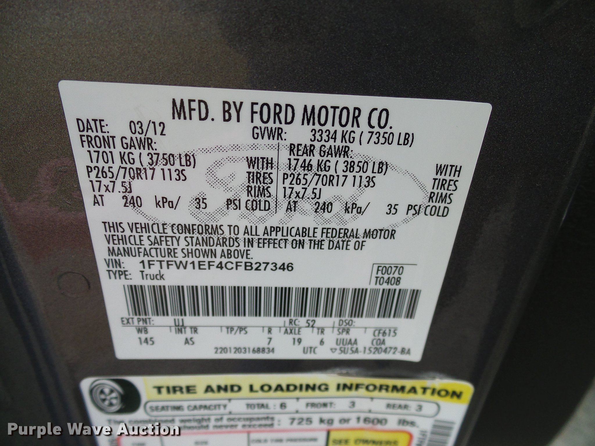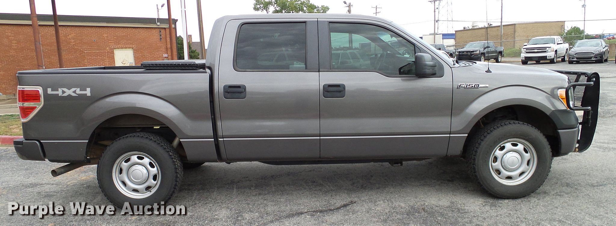 Purple Wave is selling a used 1/2 Ton Pickup or Van in Oklahoma. This item is a 2012 Ford F150 XL SuperCrew pickup truck with the following: 117,372 miles on odometer, 5.0L V8 gas engine, Automatic transmission, Four wheel drive, AC and heat, Tilt, Cruise, AM/FM, Power windows, locks, and mirrors, Vinyl interior, Spotlight, Front tow hooks, Grill guard, Toolbox, Receiver hitch, Trailer wiring, 265/70R17 tires, Hail damage, Check engine light illuminated