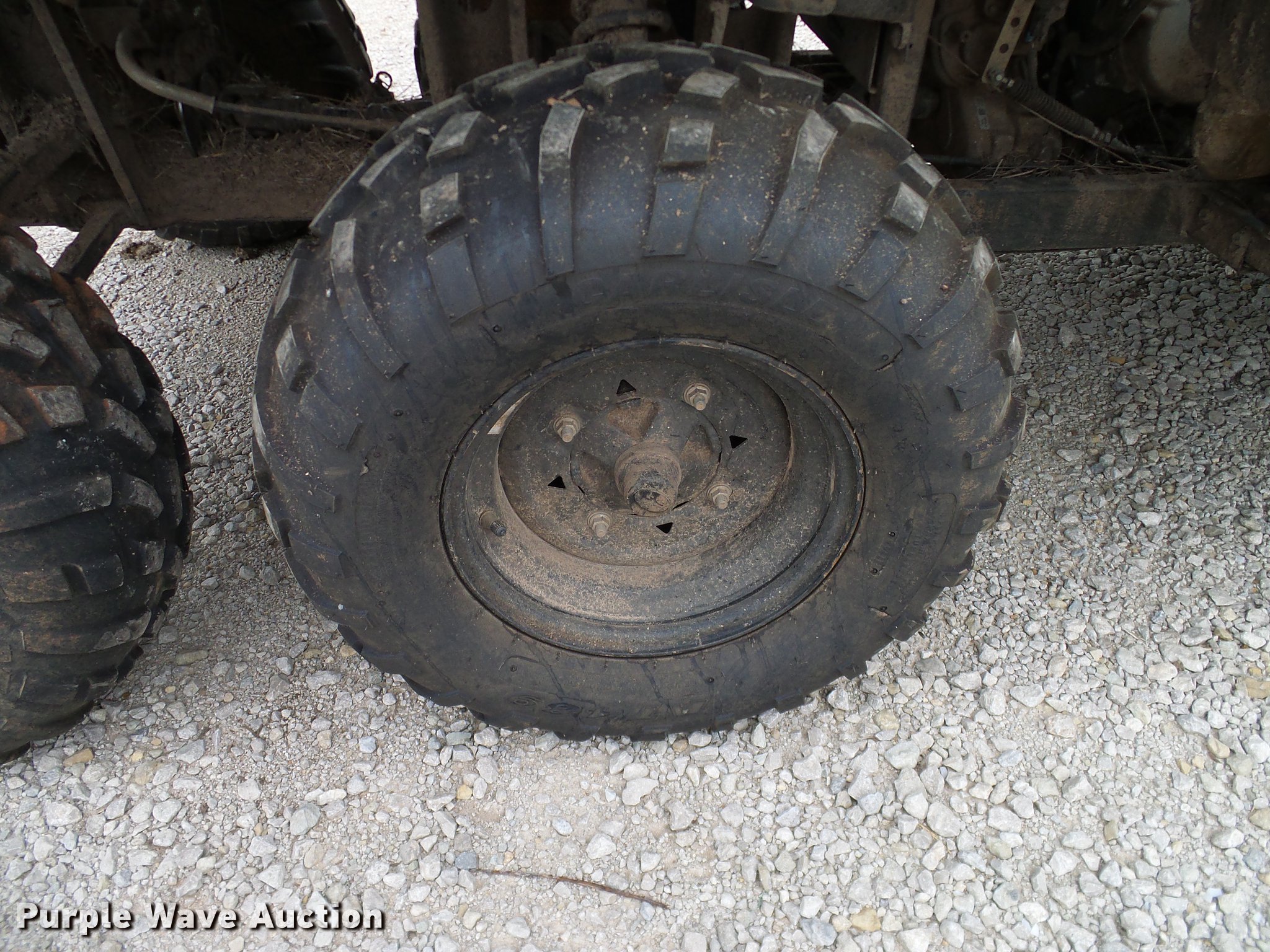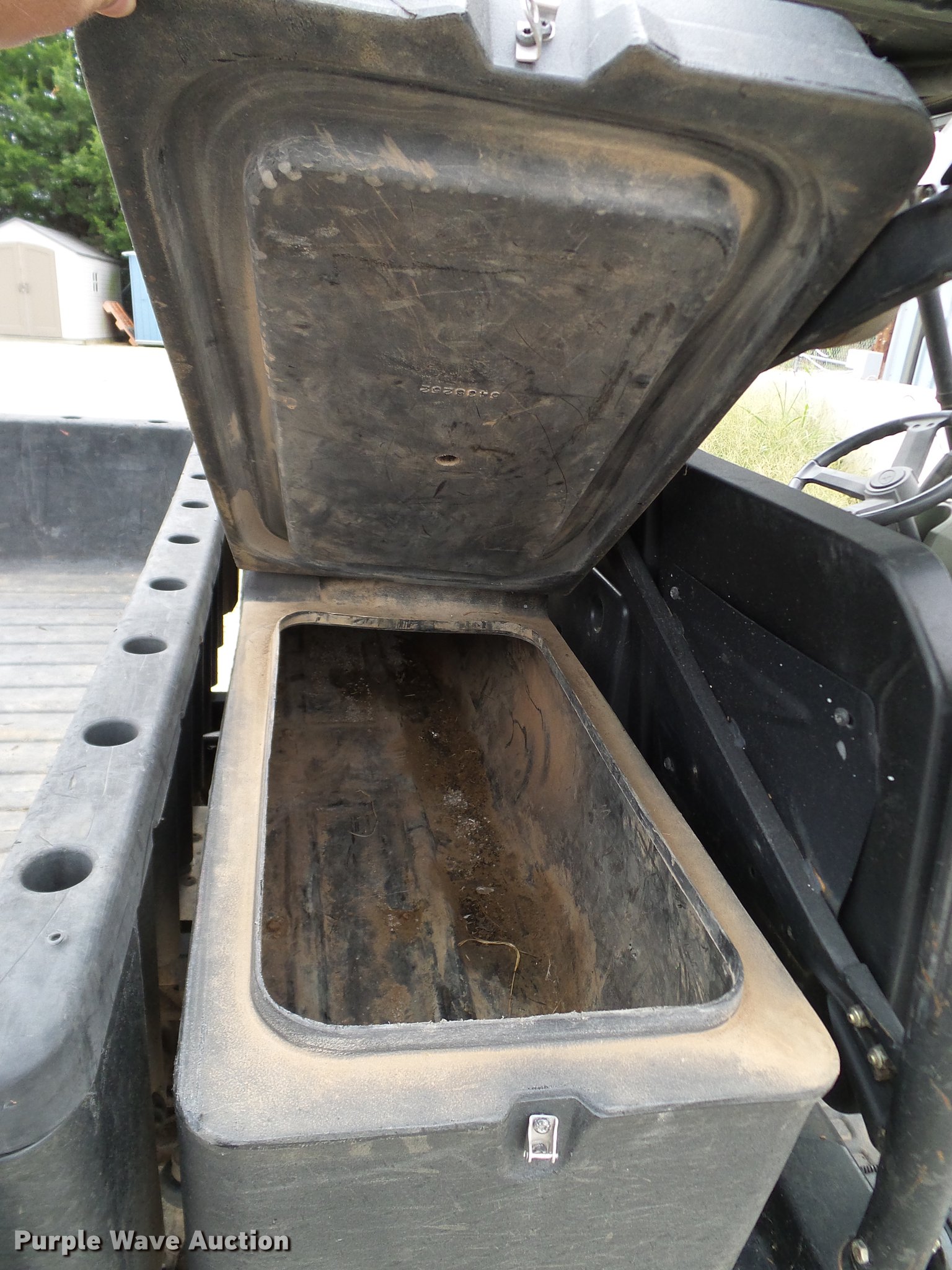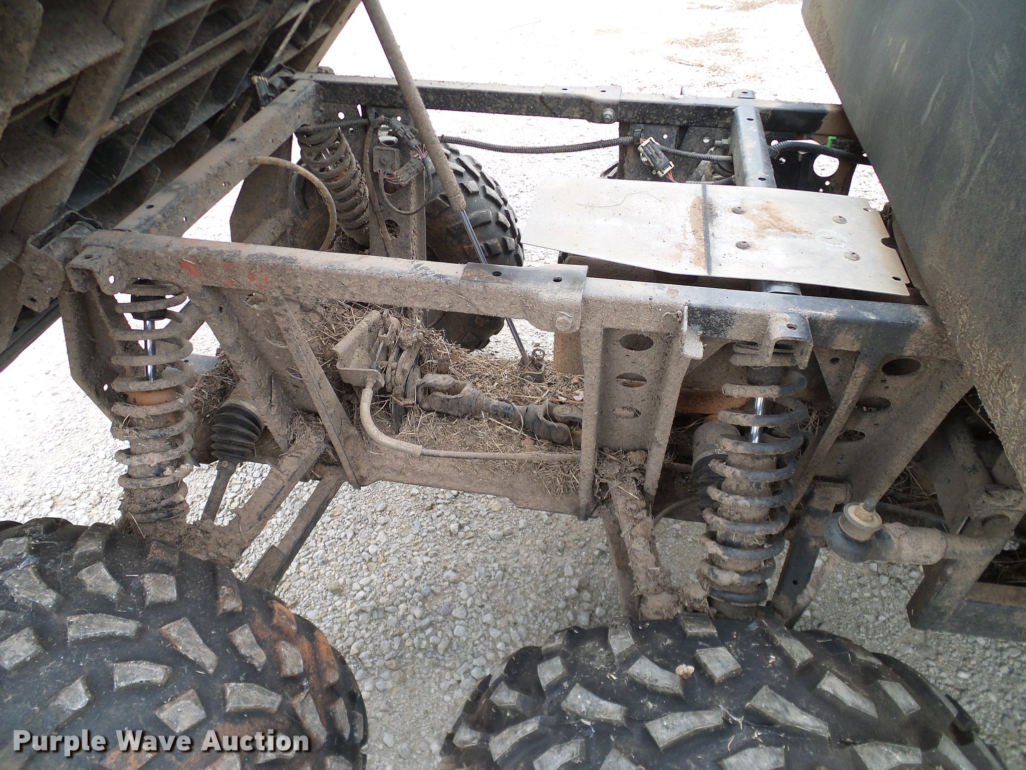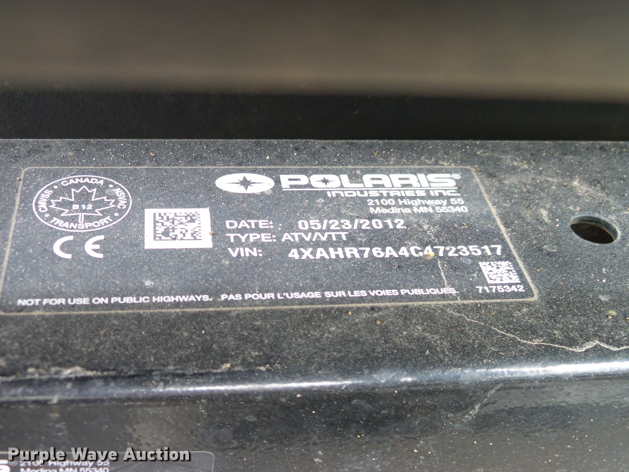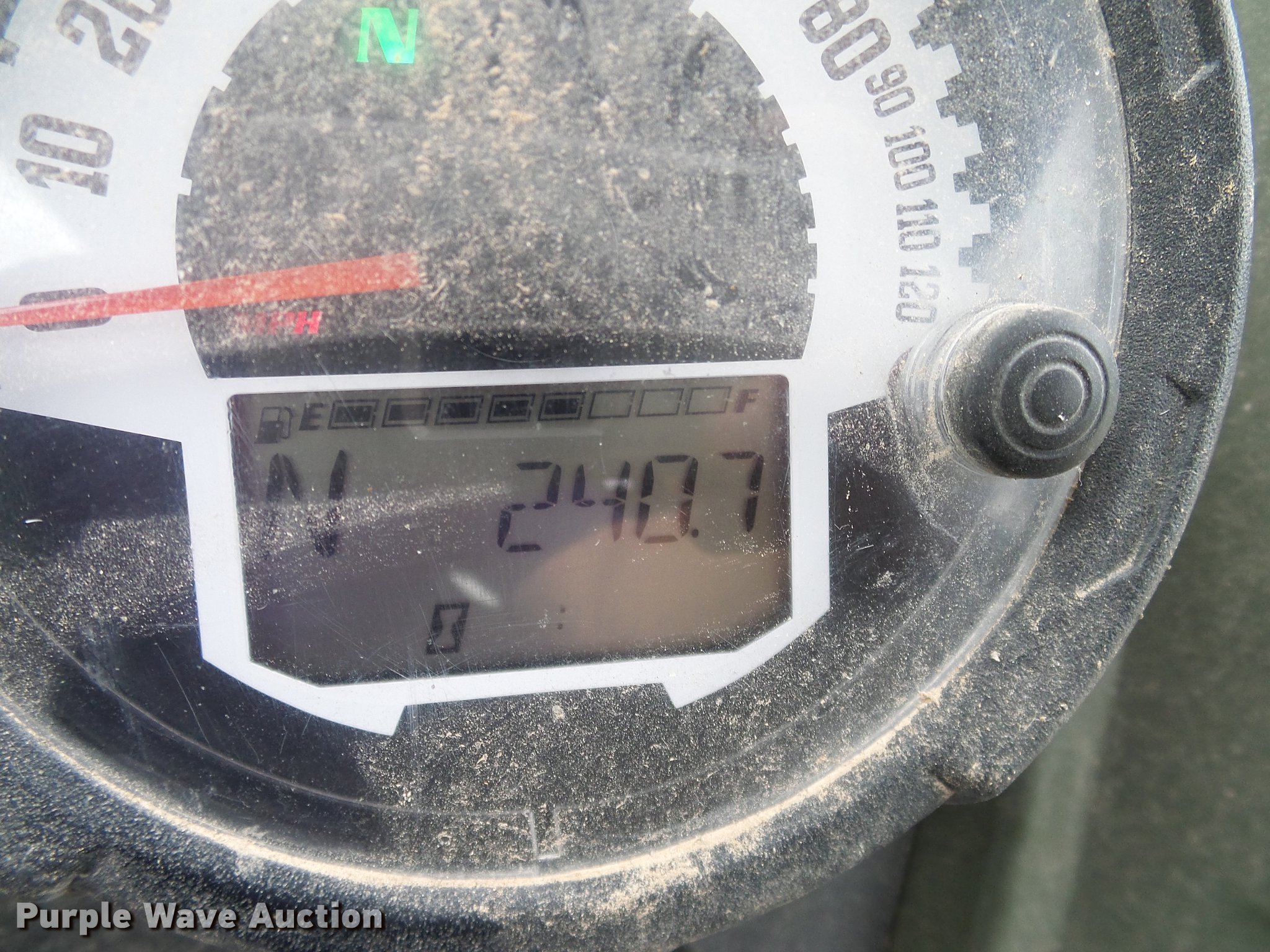 Purple Wave is selling a used Utility Vehicle in Oklahoma. This item is a 2012 Polaris Ranger 800 utility vehicle with the following: 1,177 miles on odometer, 240 hours on meter, Polaris 800 EFI two cylinder gas engine, Hydrostatic transmission, 2F-1R gears, Six wheel drive, OROPS canopy, Grill guard, Toolbox, Manual dump bed, Receiver hitch, 25x10.00-12 front tires, 25x11.00-12 rear tires, Non-operational transmission