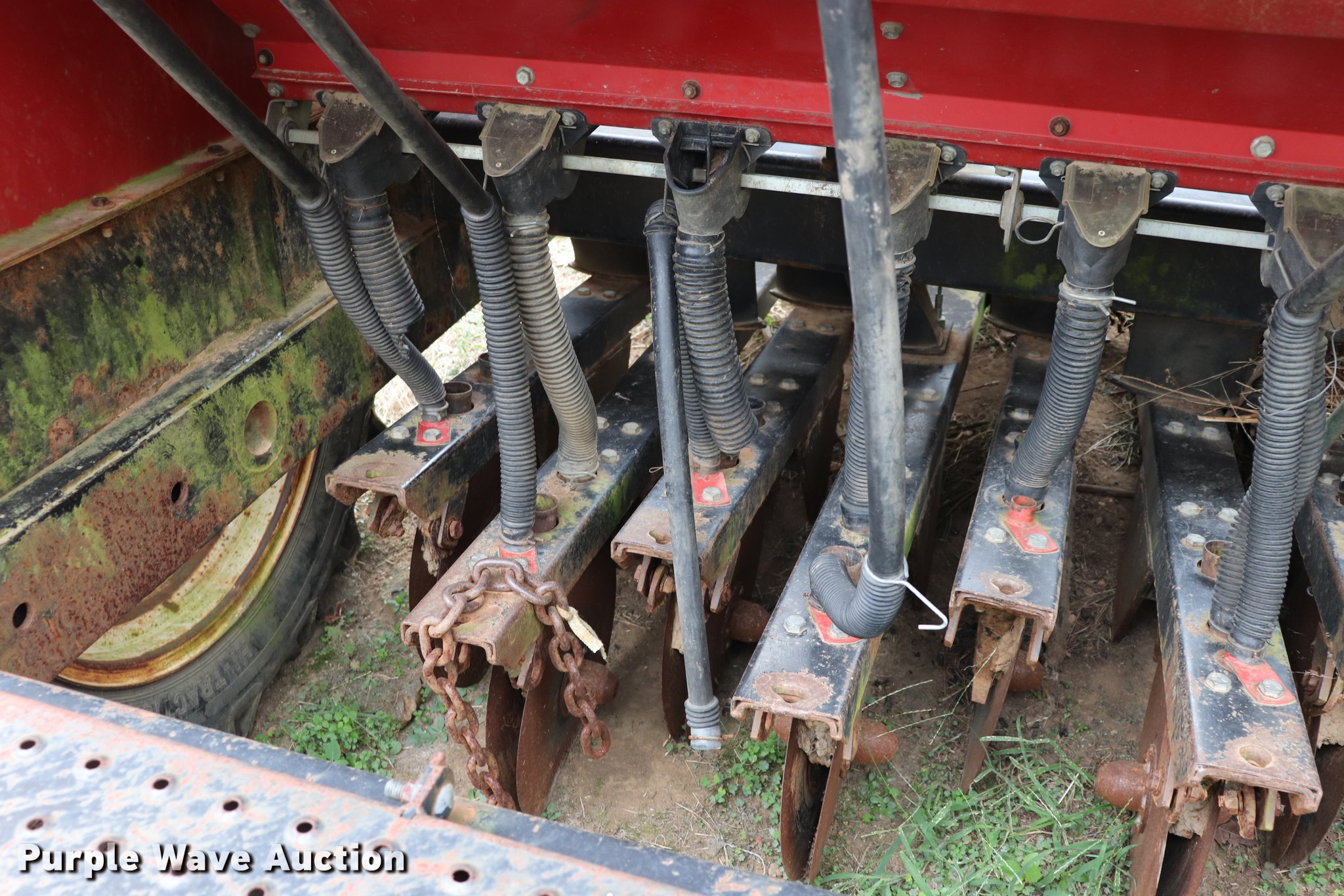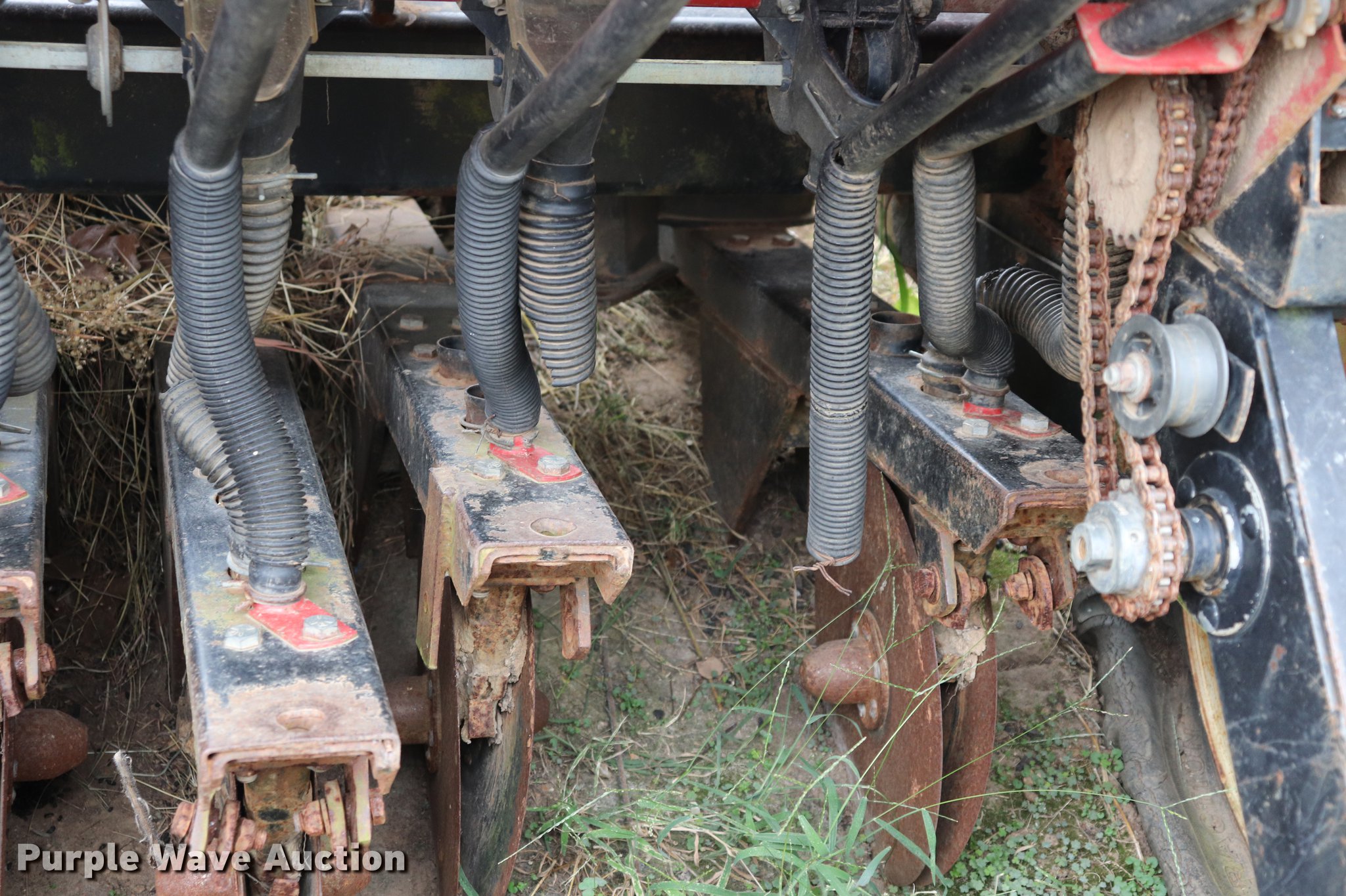 Purple Wave is selling a used Grain Drill or Seeder in Oklahoma. This item is a Bush Hog grain drill with the following: 13 row units, 7.5" row spacing, Bulk fill system, Double disk openers, Hydraulic lift, Pin hitch, Single leg landing jack, (2) 12.4-24 transport tires, One row unit missing, Seed tubes and Brojen missing, Disk openers missing, Unknown operating condition