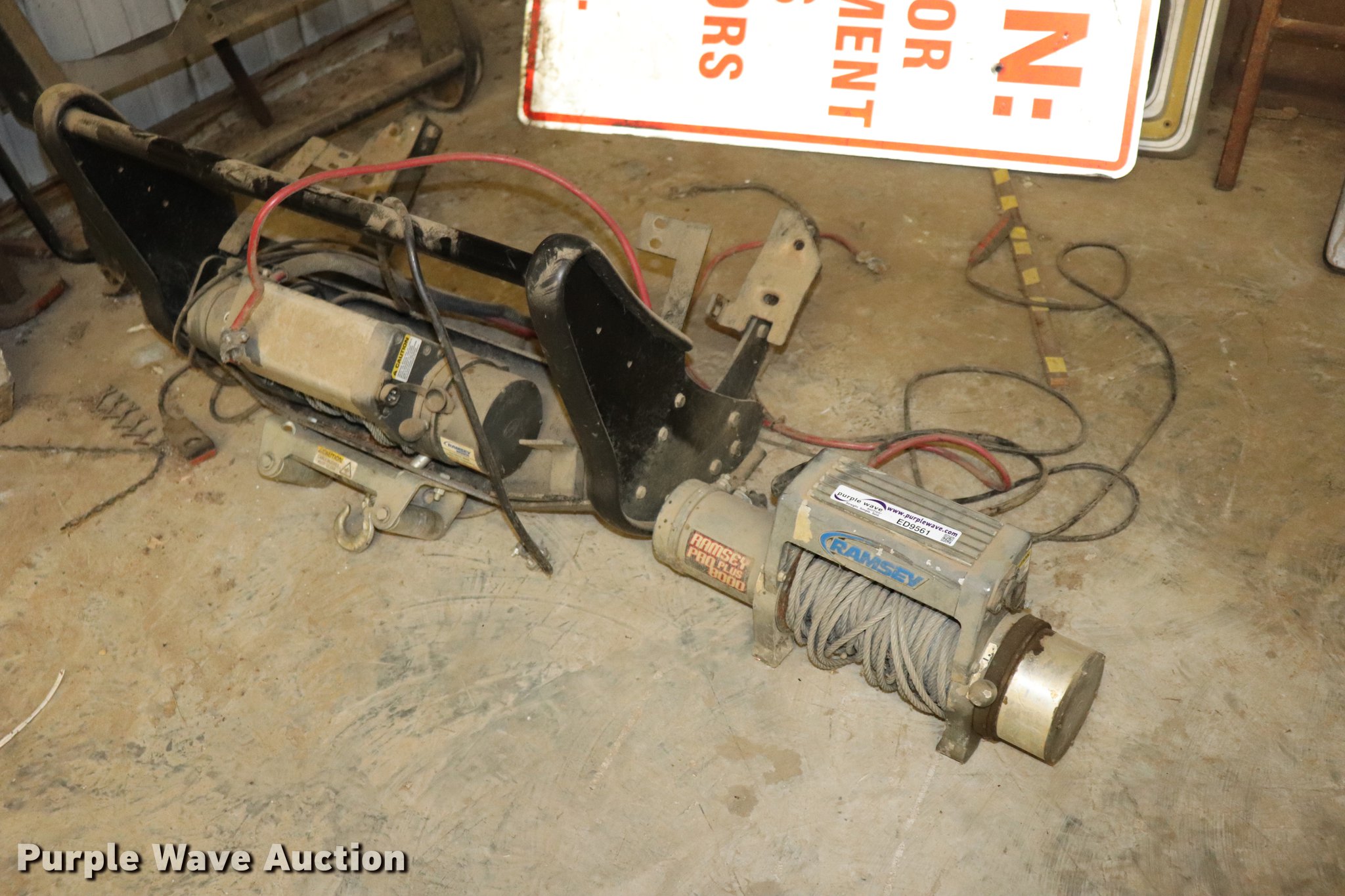 Purple Wave is selling a used Automotive Parts or Acces. in Oklahoma. This item is a (2) Ramsey winches with the following: Model Pro Plus 8000, Wired remote control, Unknown operating condition, Patriot 8000, 35" x 25" x 24", Wired remote control, Grill guard, Serial K18903014, Unknown operating condition