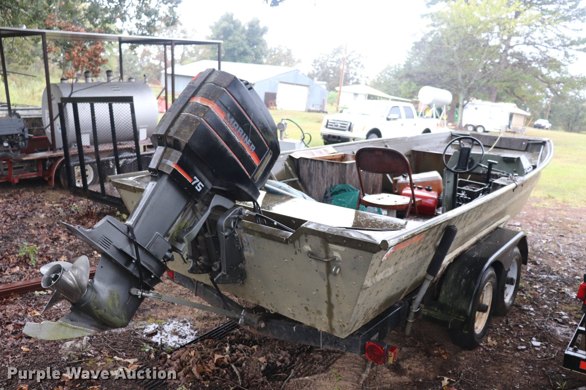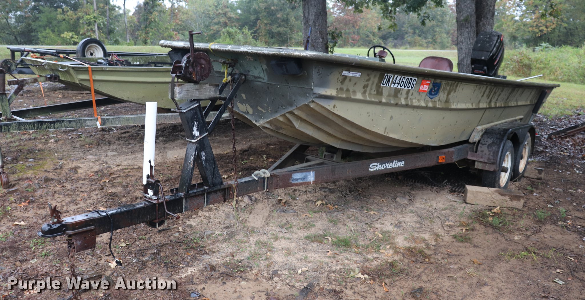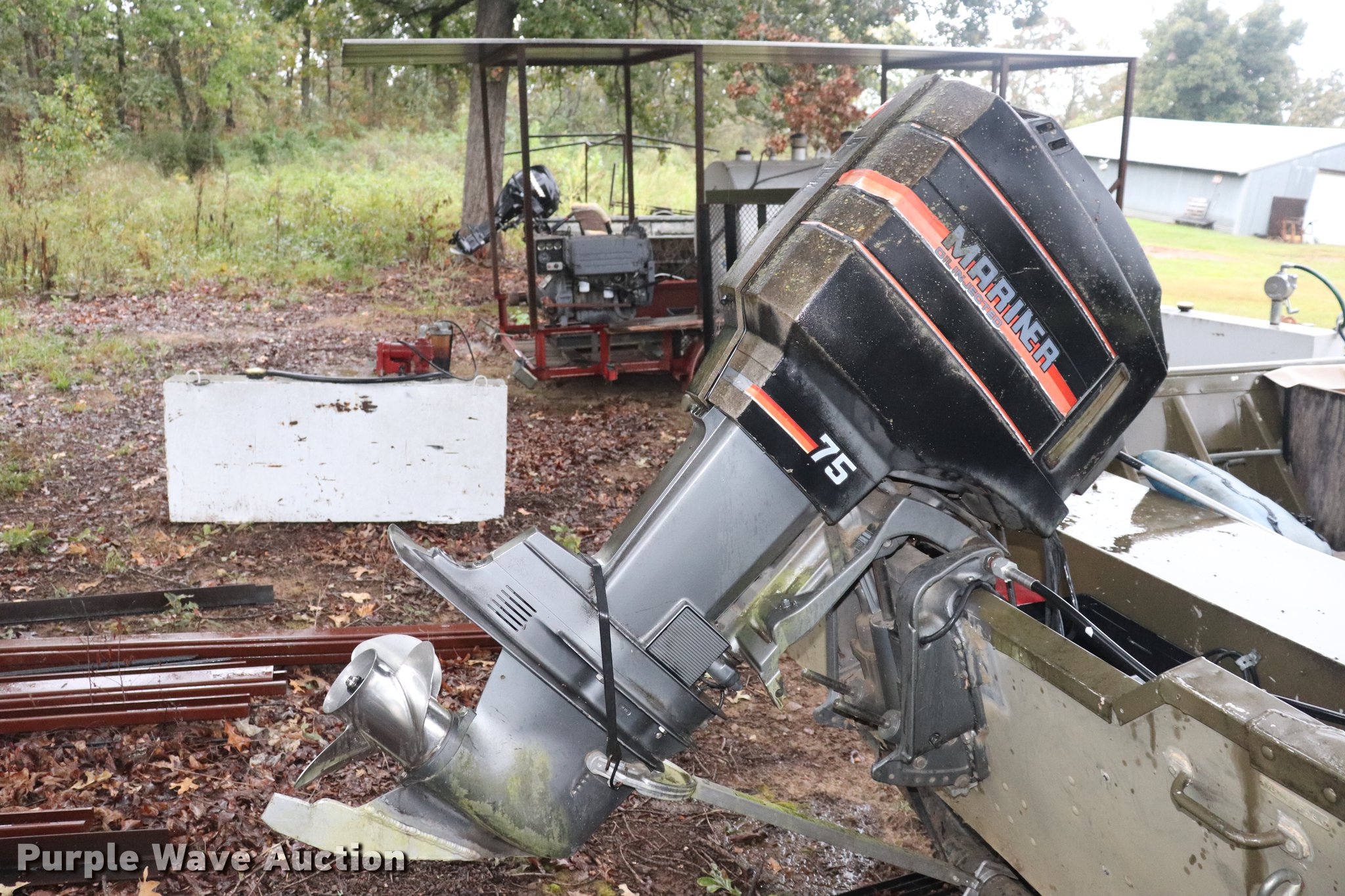 Purple Wave is selling a used Boat in Oklahoma. This item is a 1985 Polar Kraft boat with the following: 17'L x 6'10"W, Shop built captains chair, 1986 Mariner 75 HP outboard motor, Serial 0B145927, Aluminum construction, Hull ID PLR77317F585, 1985 Shoreline tandem axle trailer, 2" ball hitch, Single leg landing jack, Flat electrical connection, Spring suspension, 175/80R13 tires, Unknown operating condition