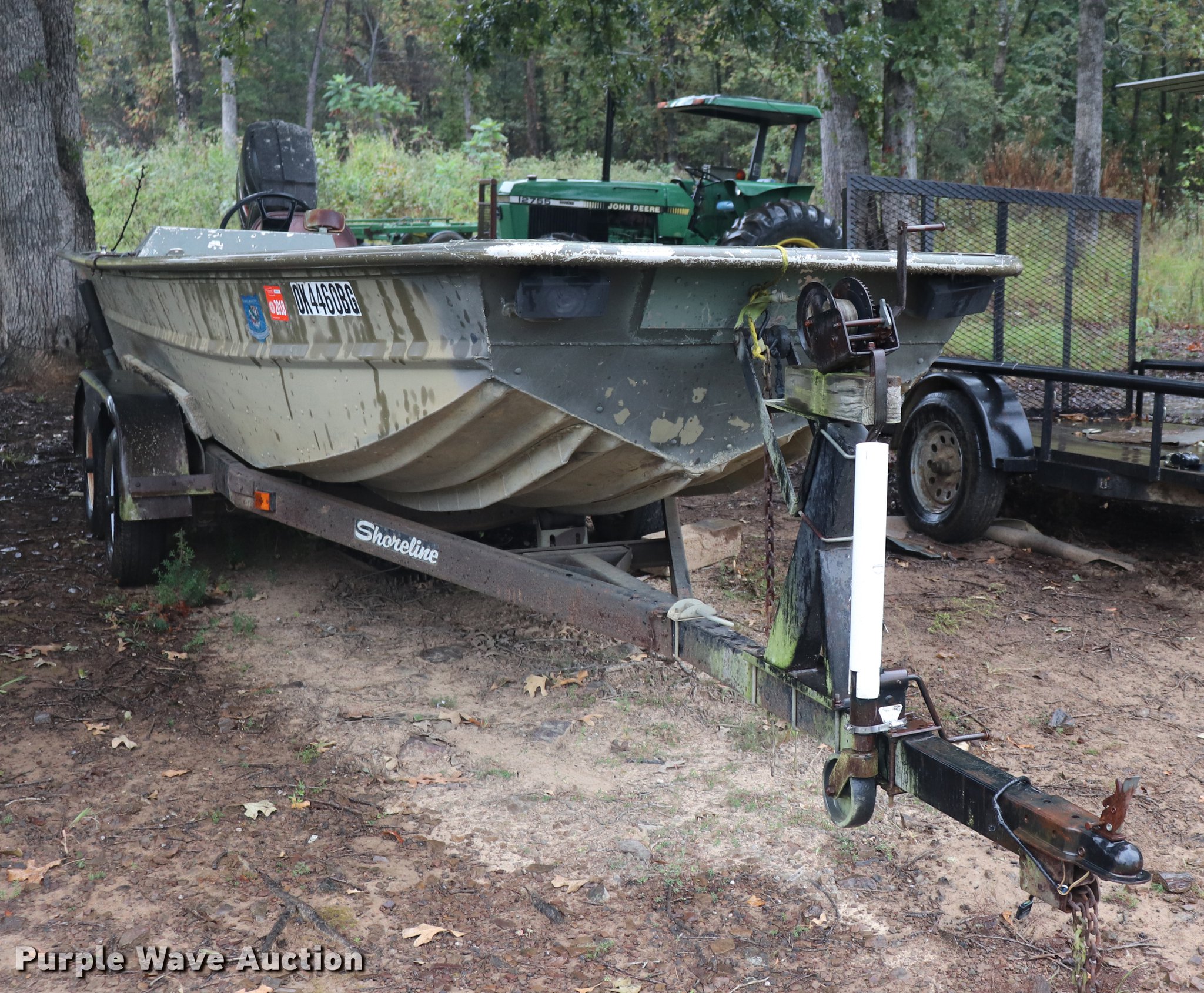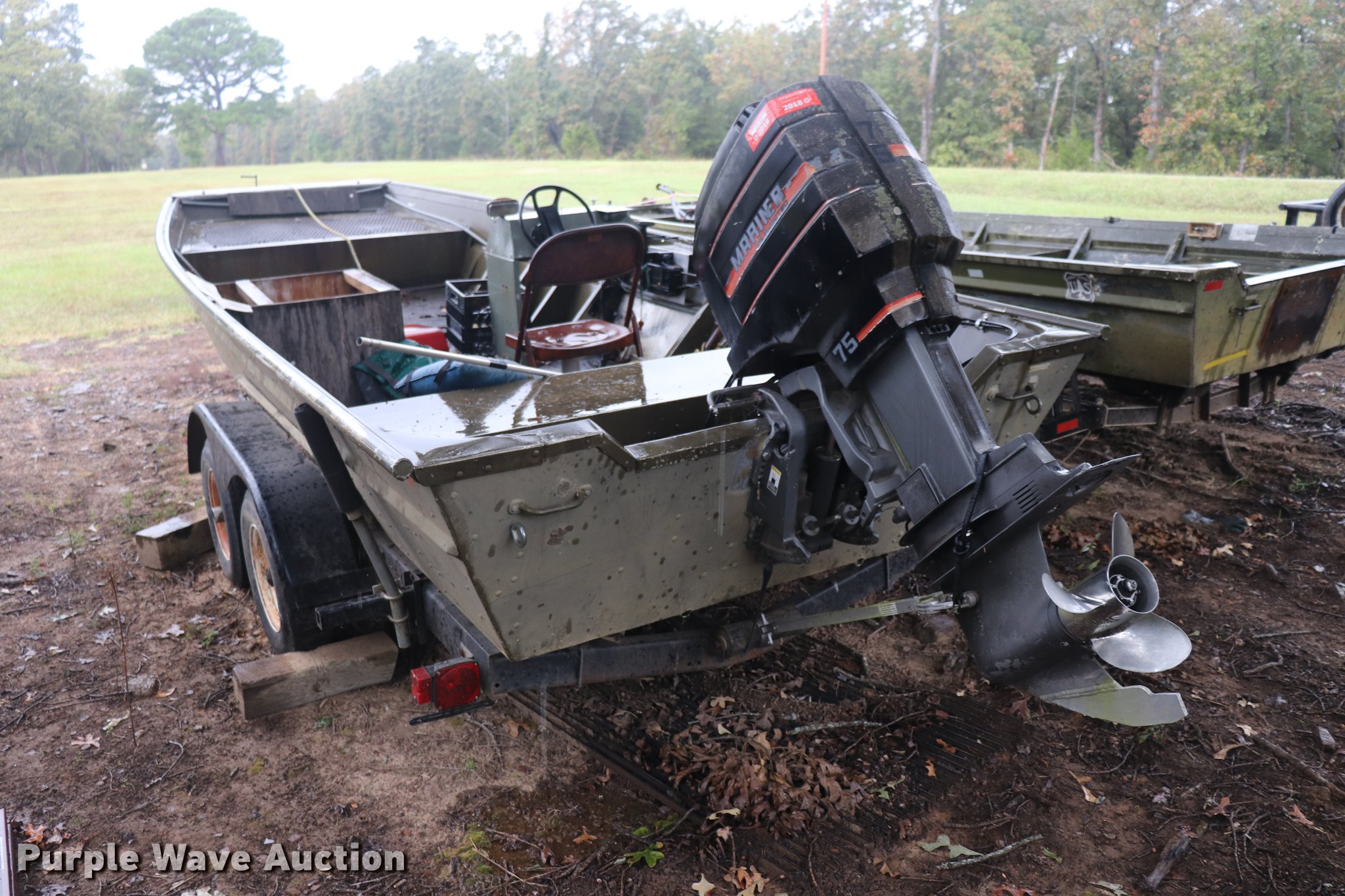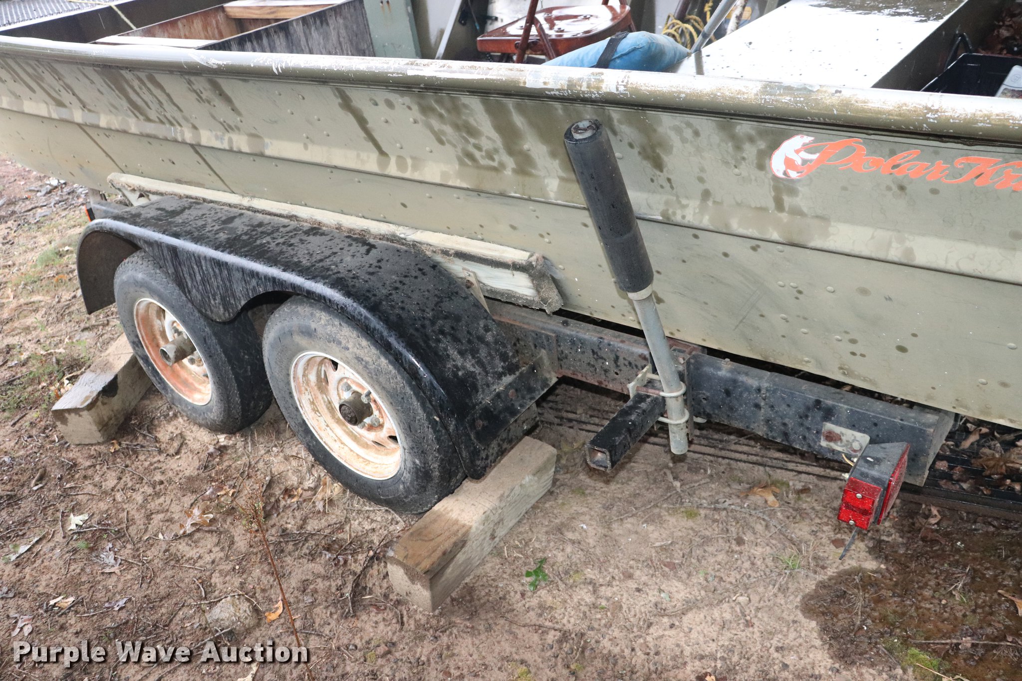 Purple Wave is selling a used Boat in Oklahoma. This item is a 1985 Polar Kraft boat with the following: 17'L x 6'10"W, Shop built captains chair, 1986 Mariner 75 HP outboard motor, Serial 0B145927, Aluminum construction, Hull ID PLR77317F585, 1985 Shoreline tandem axle trailer, 2" ball hitch, Single leg landing jack, Flat electrical connection, Spring suspension, 175/80R13 tires, Unknown operating condition