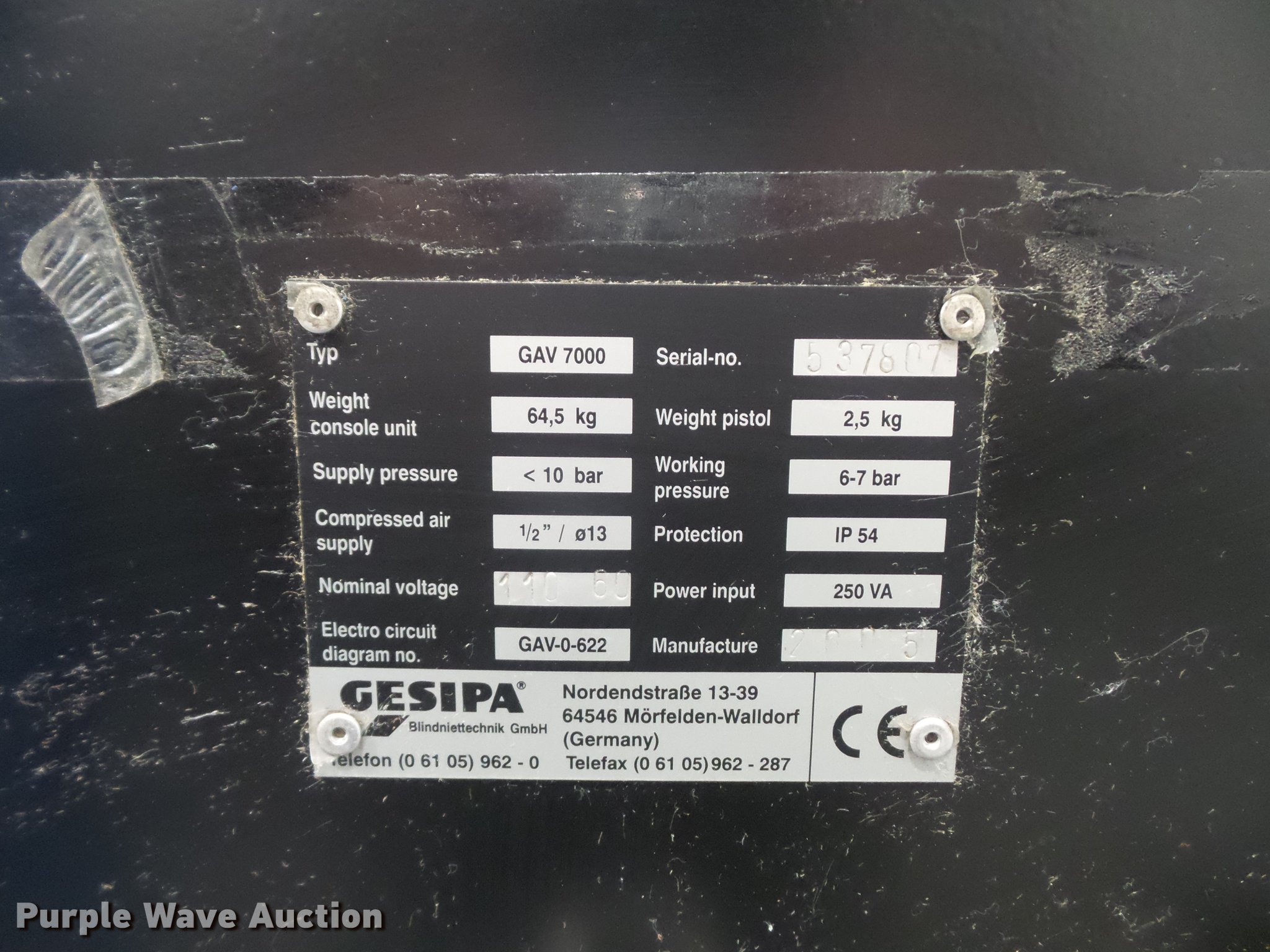 This Gesipa 7000 automatic rivet machine will sell to the highest bidder regardless of price.