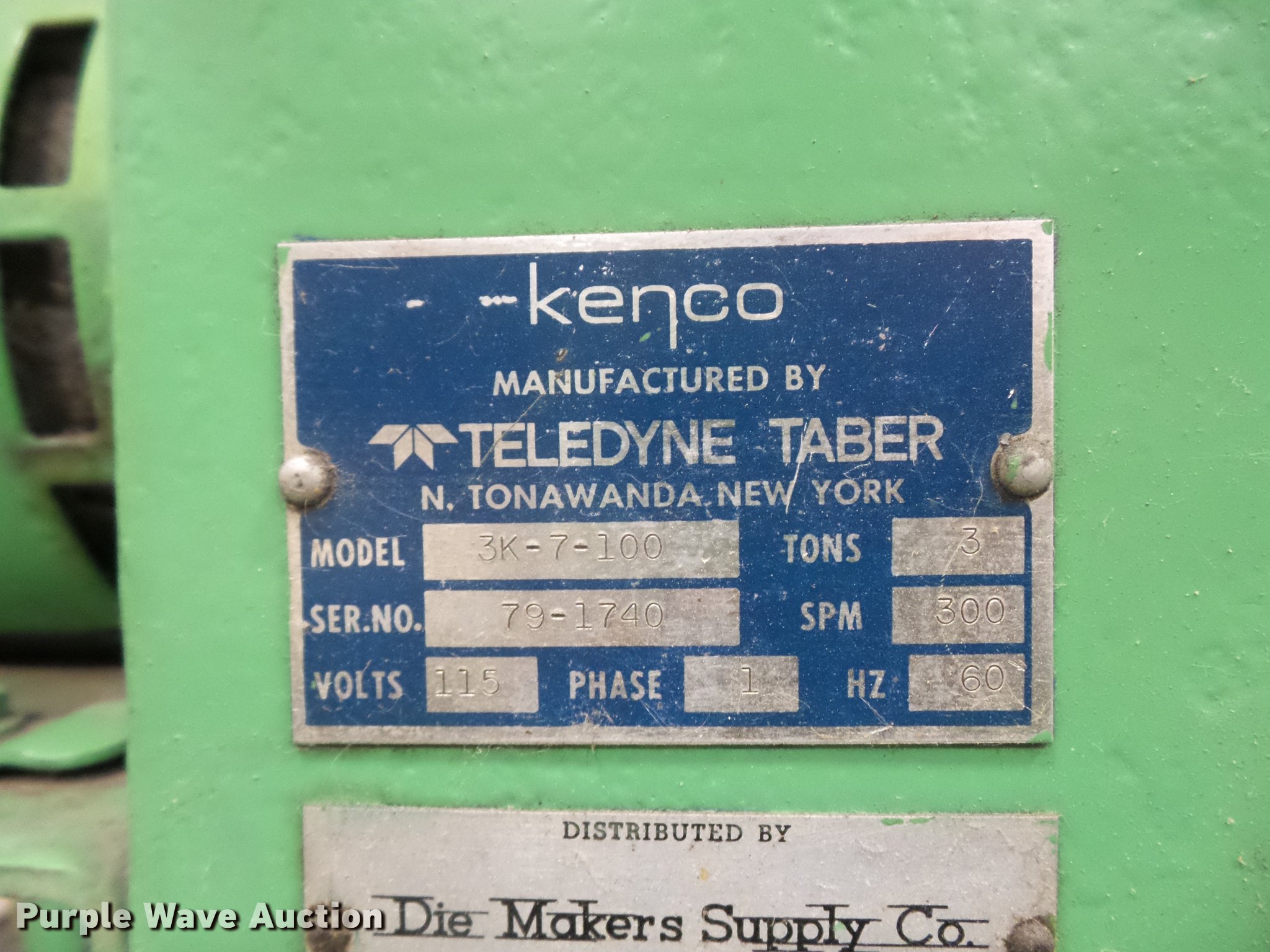Purple Wave is selling a used Machine Shop Tools and Equip. in Missouri. This item is a Kanco 3K-7-100 punch press with the following: 115V, Three ton capacity, Serial 79-1740