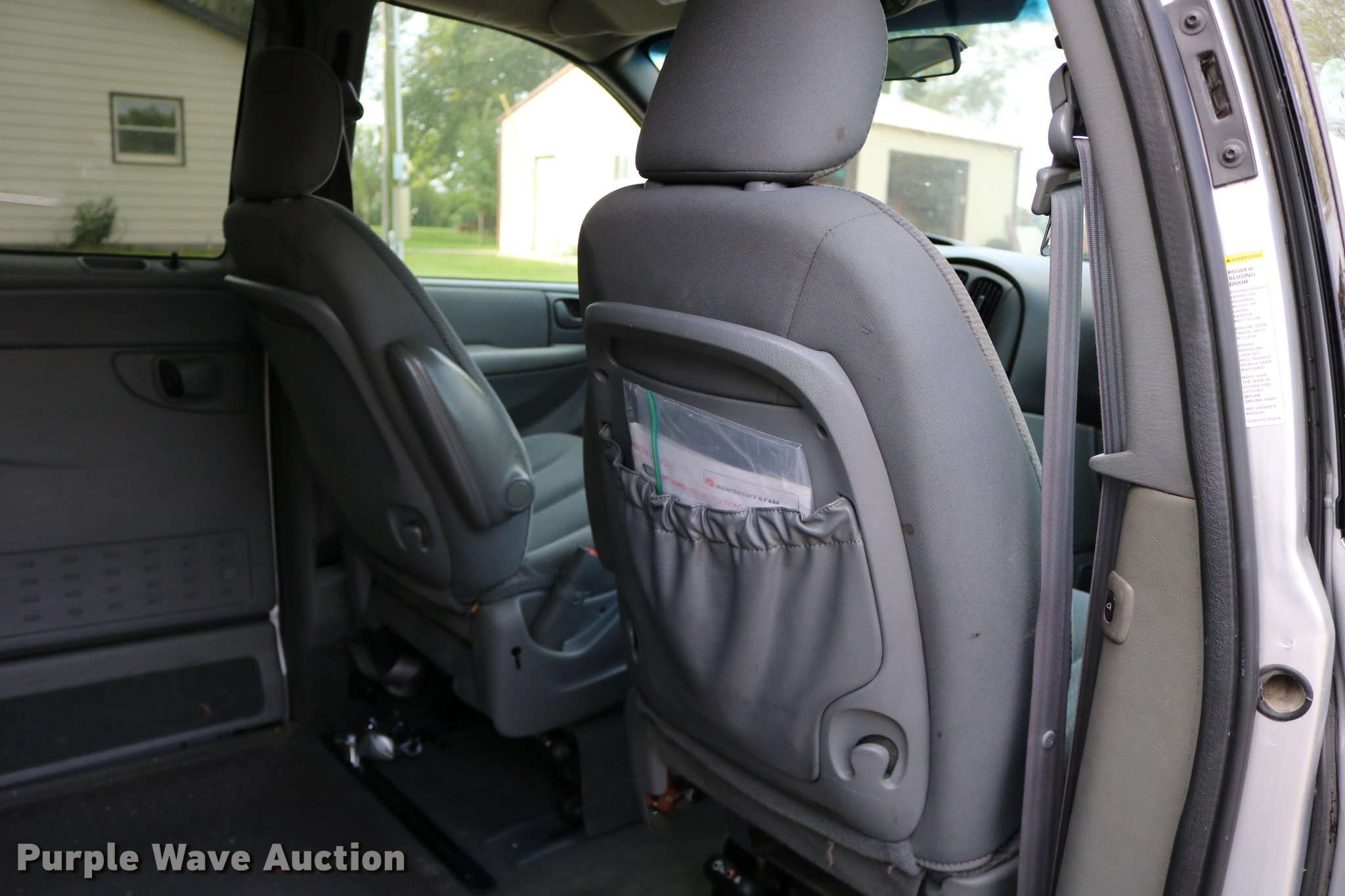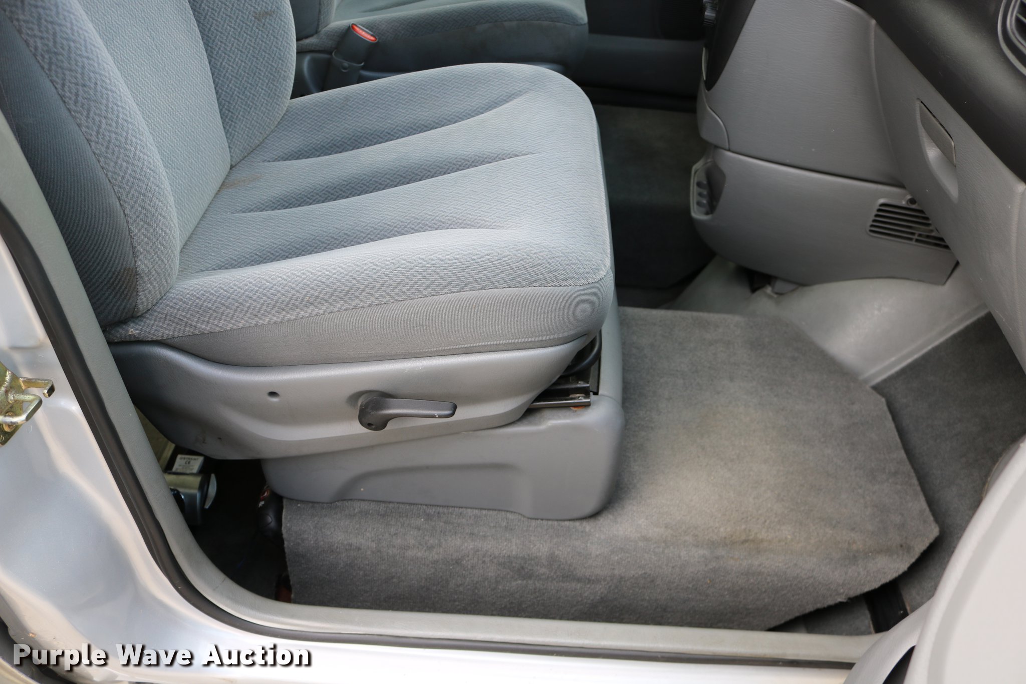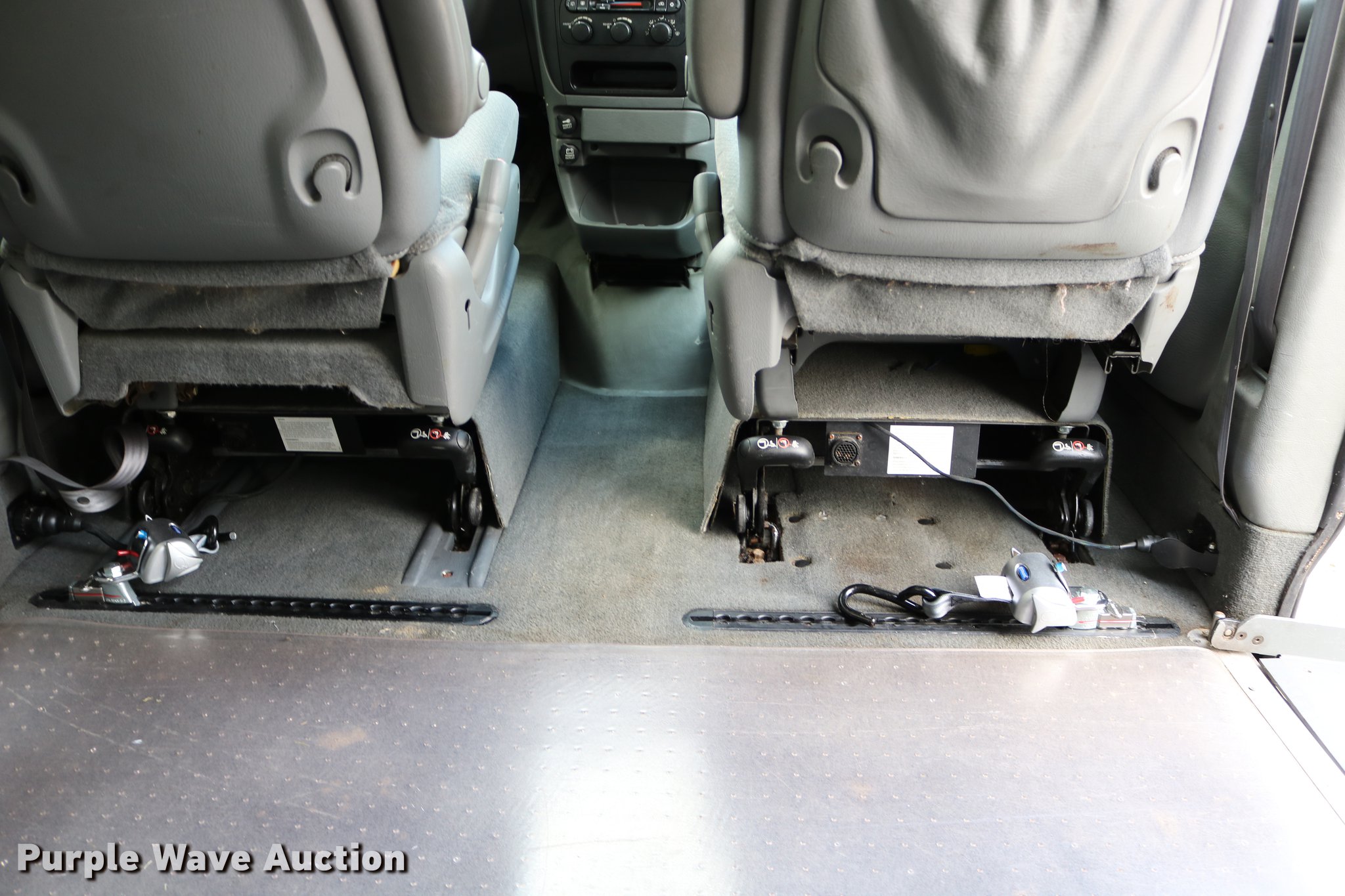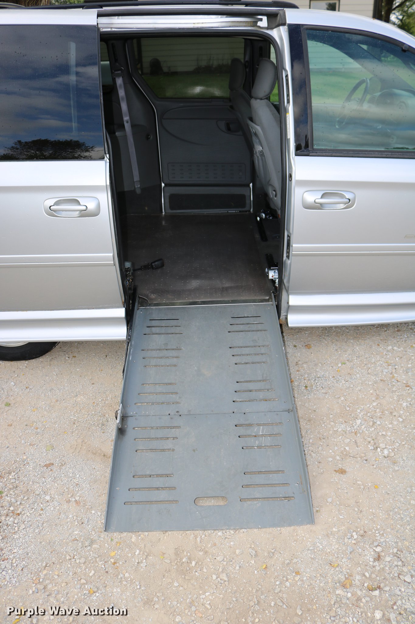 Purple Wave is selling a used Passenger Vehicle in Kansas. This item is a 2004 Dodge Grand Caravan van with the following: 162,282 miles on odometer, 3.8L V6 OHV 12V gas engine, Automatic transmission, AC and heat, Tilt, Cruise, AM/FM/cassette, Power windows, locks, mirrors, and seat, Cloth interior, Fog lights, Q'Straint electric wheelchair ramp, Q'Straint wheelchair quick ratchets, Braun Entervan conversion package, 215/65R16 tires