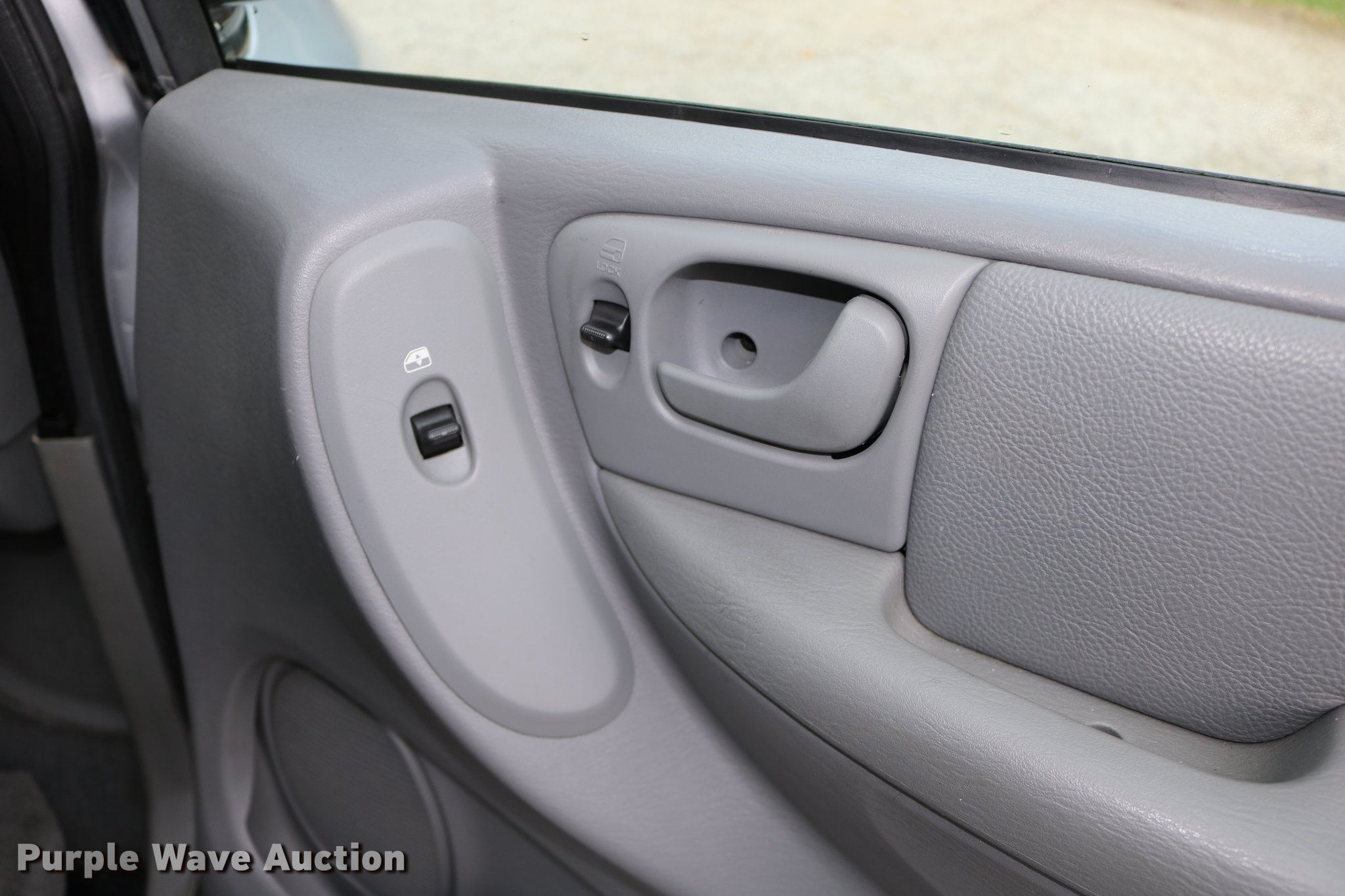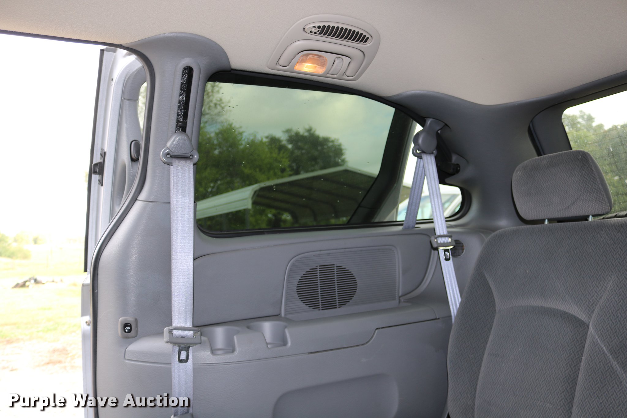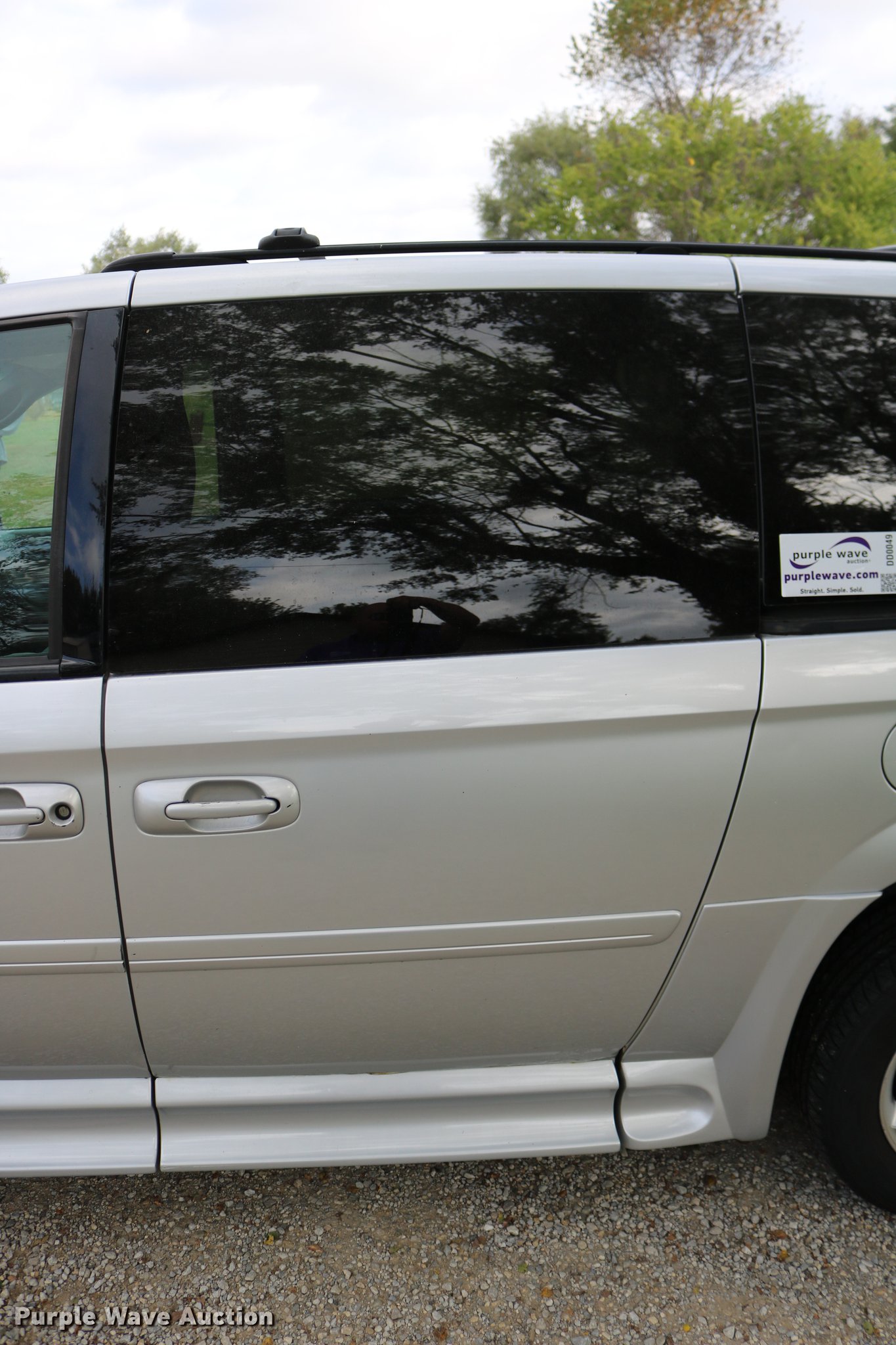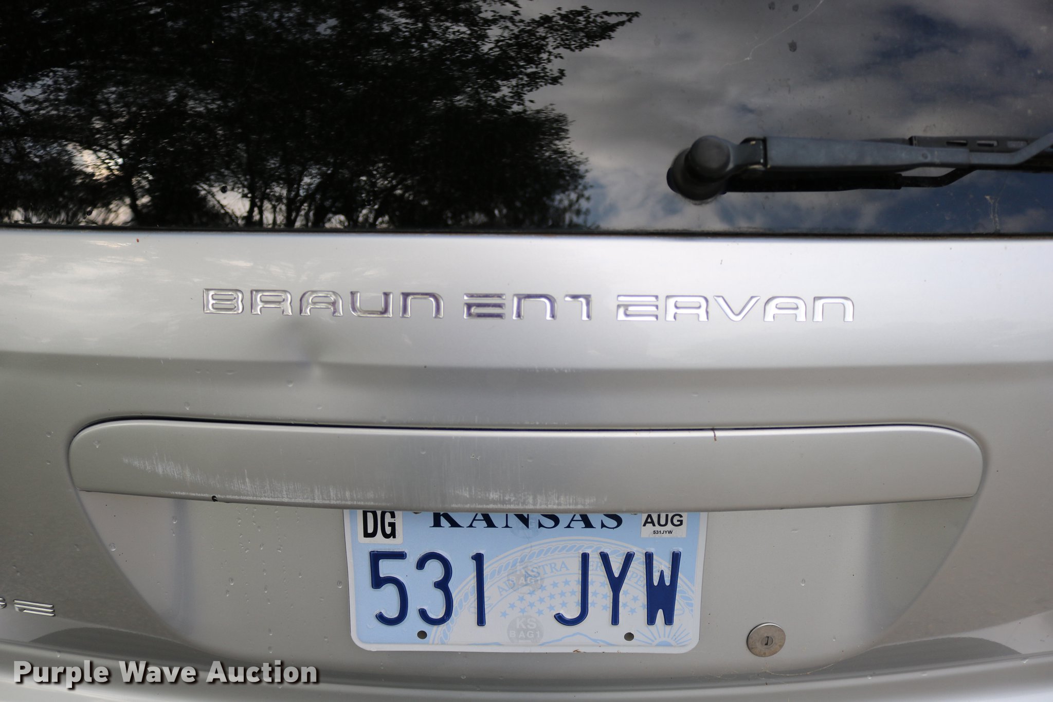 Purple Wave is selling a used Passenger Vehicle in Kansas. This item is a 2004 Dodge Grand Caravan van with the following: 162,282 miles on odometer, 3.8L V6 OHV 12V gas engine, Automatic transmission, AC and heat, Tilt, Cruise, AM/FM/cassette, Power windows, locks, mirrors, and seat, Cloth interior, Fog lights, Q'Straint electric wheelchair ramp, Q'Straint wheelchair quick ratchets, Braun Entervan conversion package, 215/65R16 tires