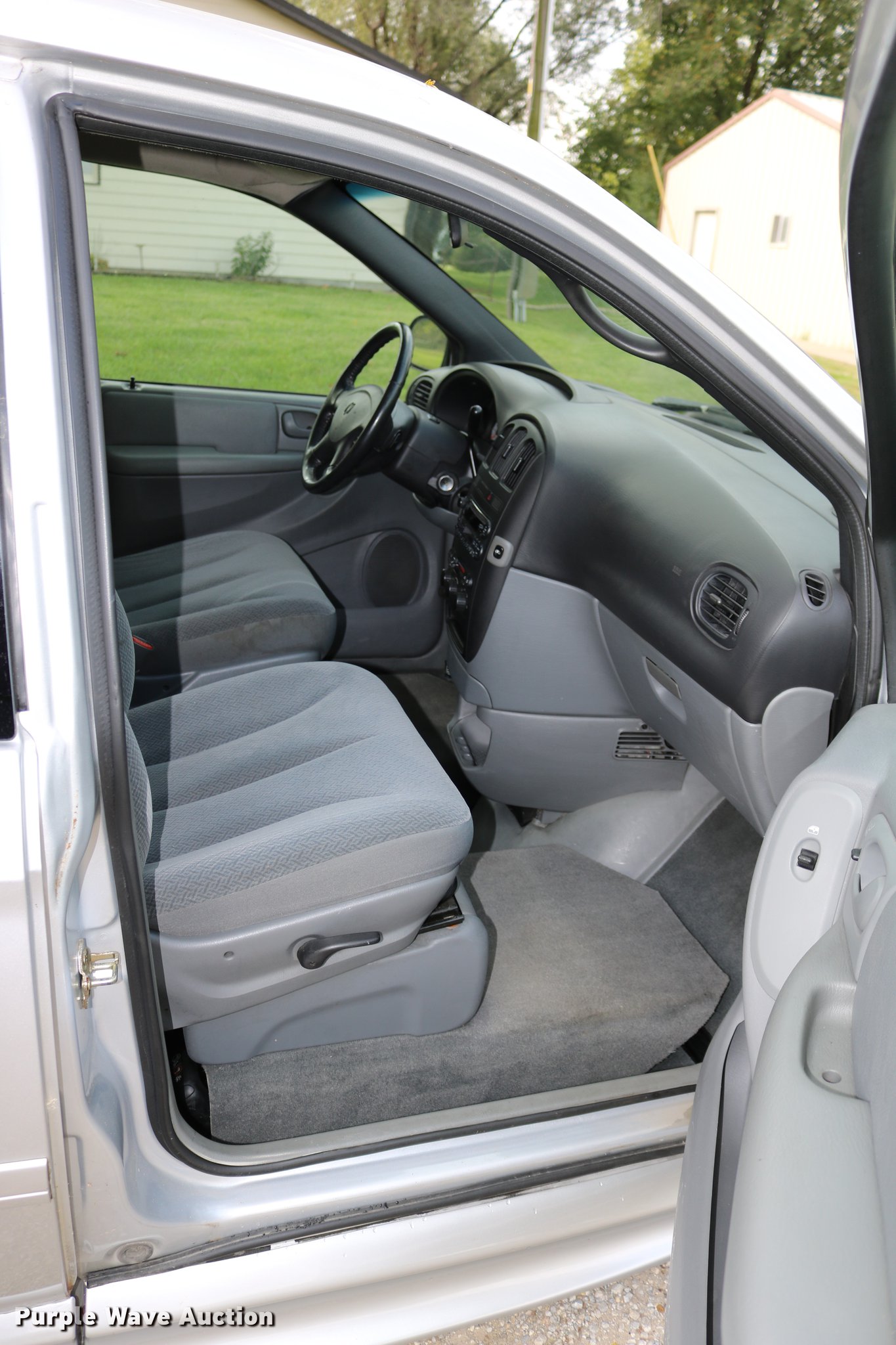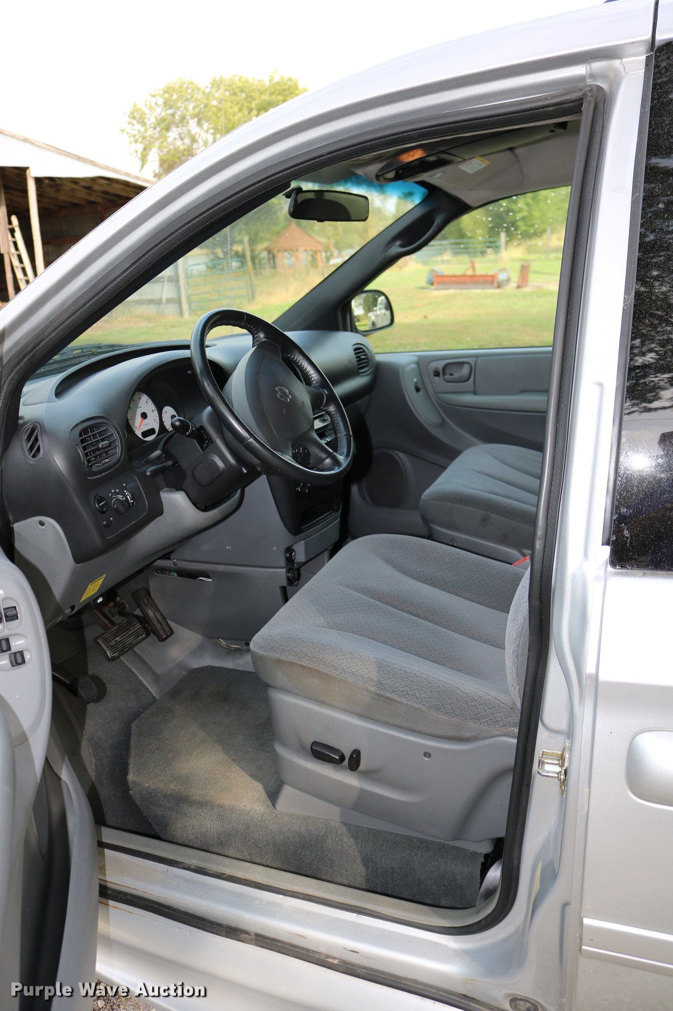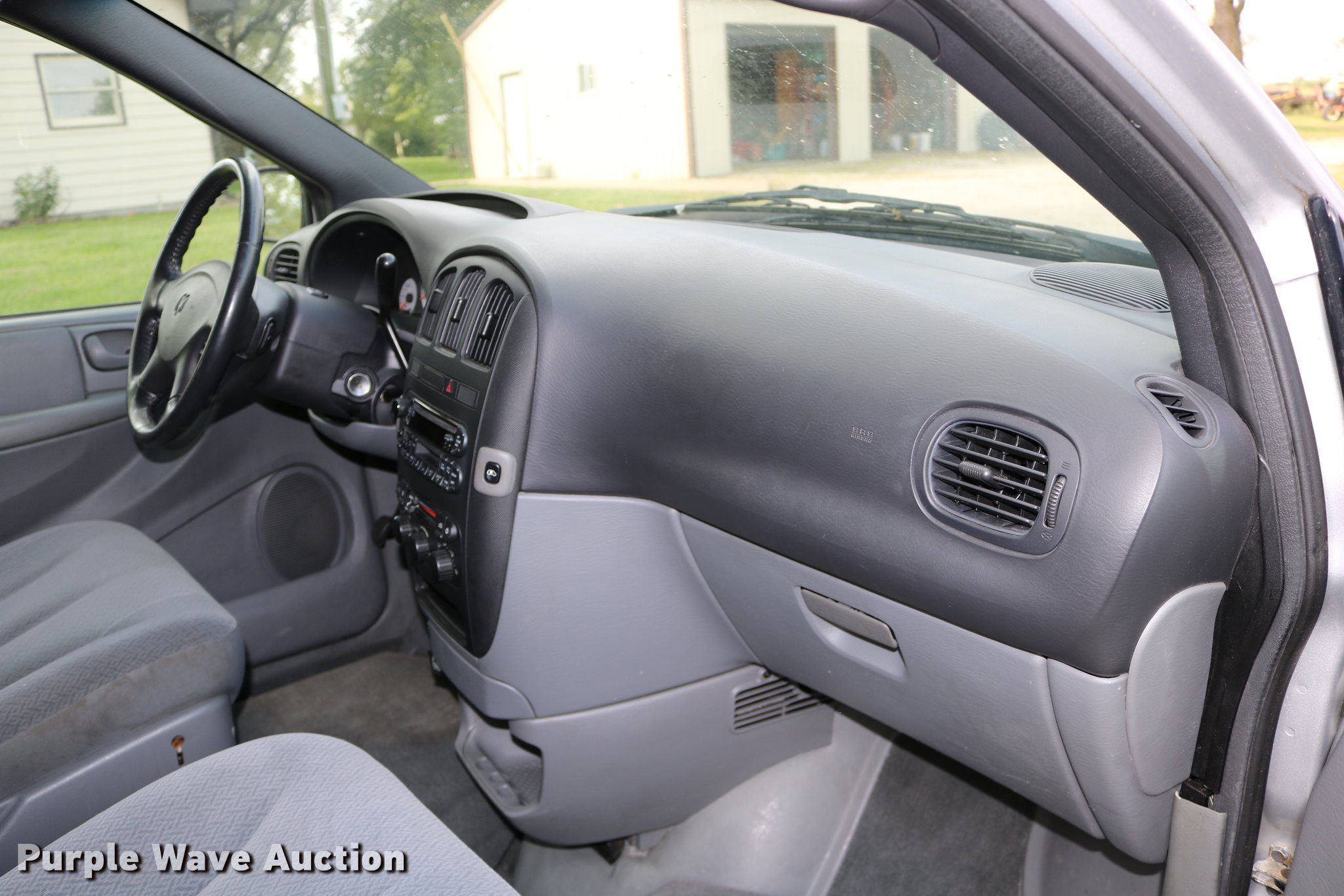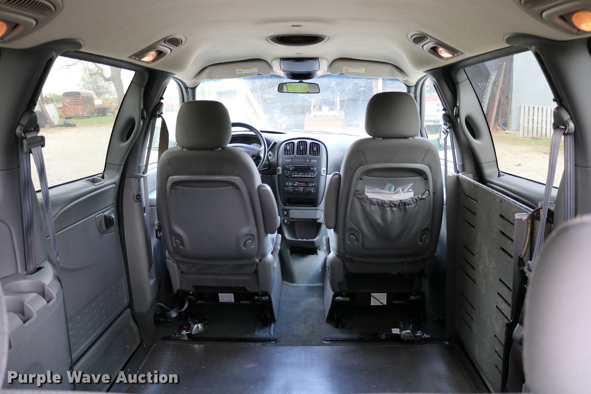Purple Wave is selling a used Passenger Vehicle in Kansas. This item is a 2004 Dodge Grand Caravan van with the following: 162,282 miles on odometer, 3.8L V6 OHV 12V gas engine, Automatic transmission, AC and heat, Tilt, Cruise, AM/FM/cassette, Power windows, locks, mirrors, and seat, Cloth interior, Fog lights, Q'Straint electric wheelchair ramp, Q'Straint wheelchair quick ratchets, Braun Entervan conversion package, 215/65R16 tires