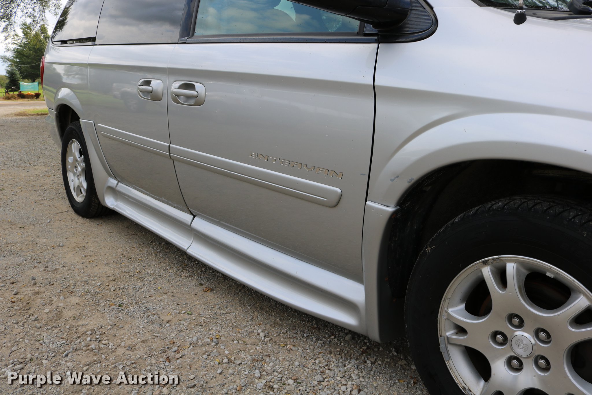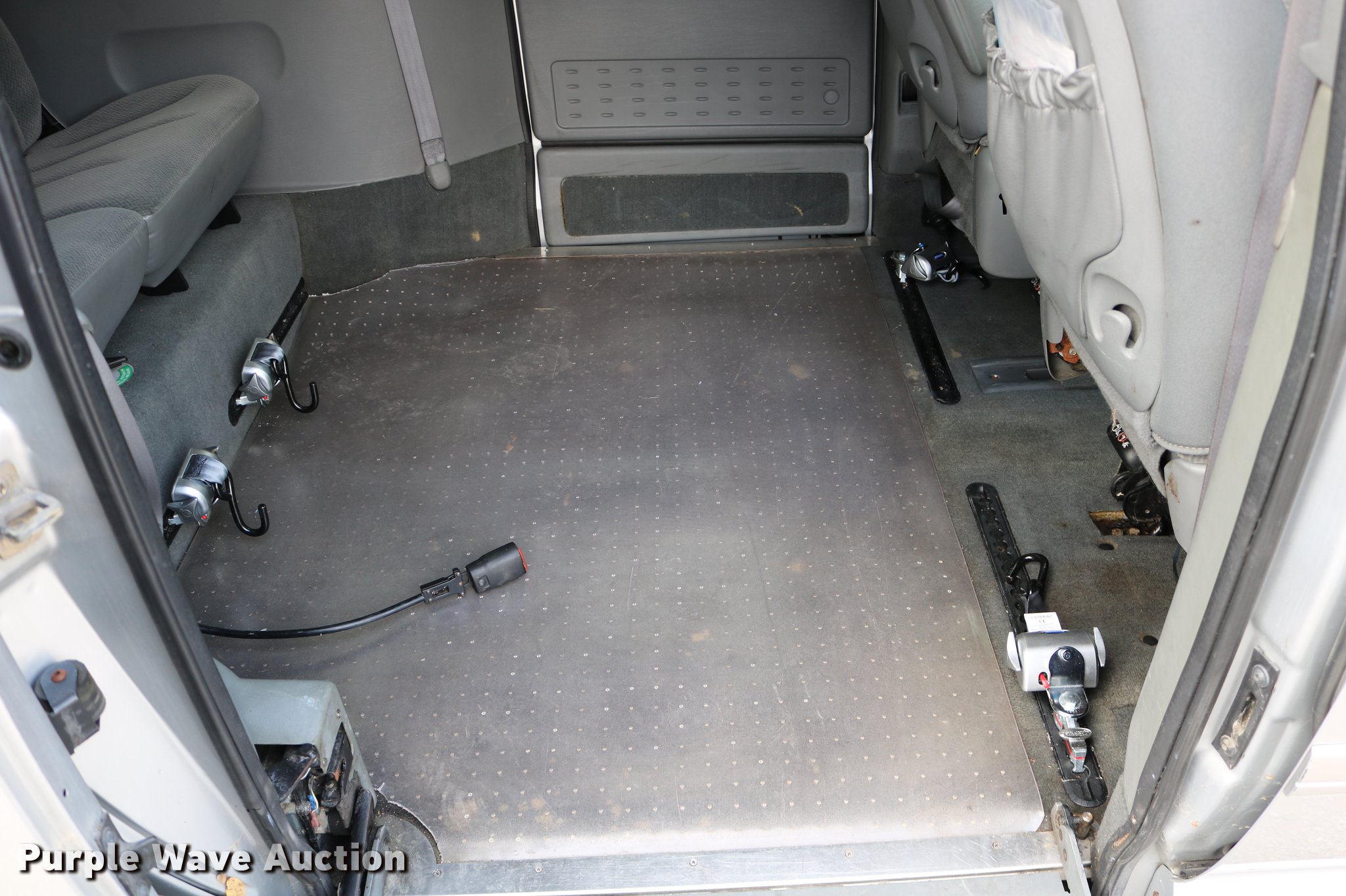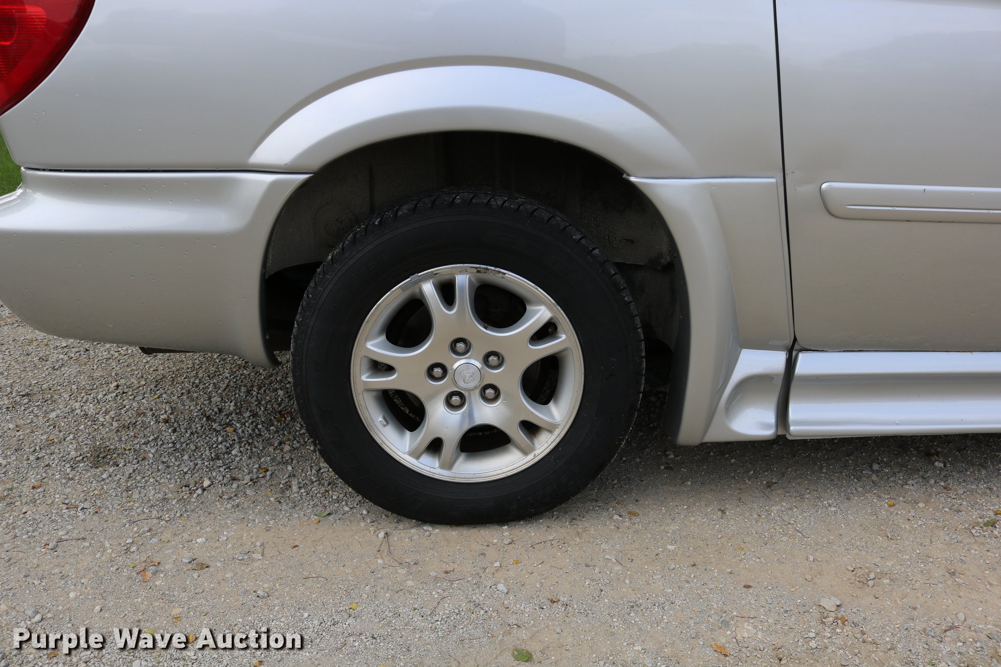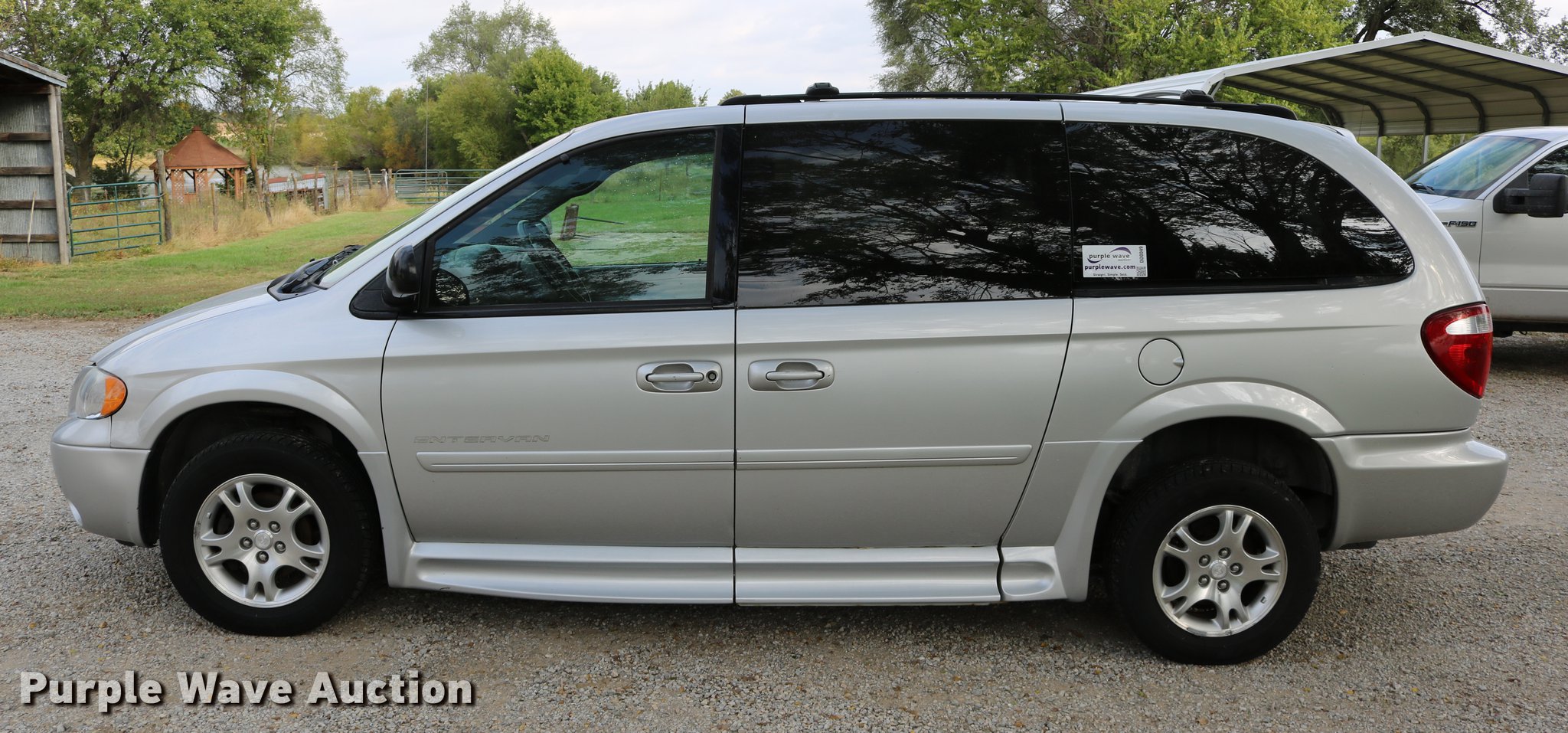 Purple Wave is selling a used Passenger Vehicle in Kansas. This item is a 2004 Dodge Grand Caravan van with the following: 162,282 miles on odometer, 3.8L V6 OHV 12V gas engine, Automatic transmission, AC and heat, Tilt, Cruise, AM/FM/cassette, Power windows, locks, mirrors, and seat, Cloth interior, Fog lights, Q'Straint electric wheelchair ramp, Q'Straint wheelchair quick ratchets, Braun Entervan conversion package, 215/65R16 tires