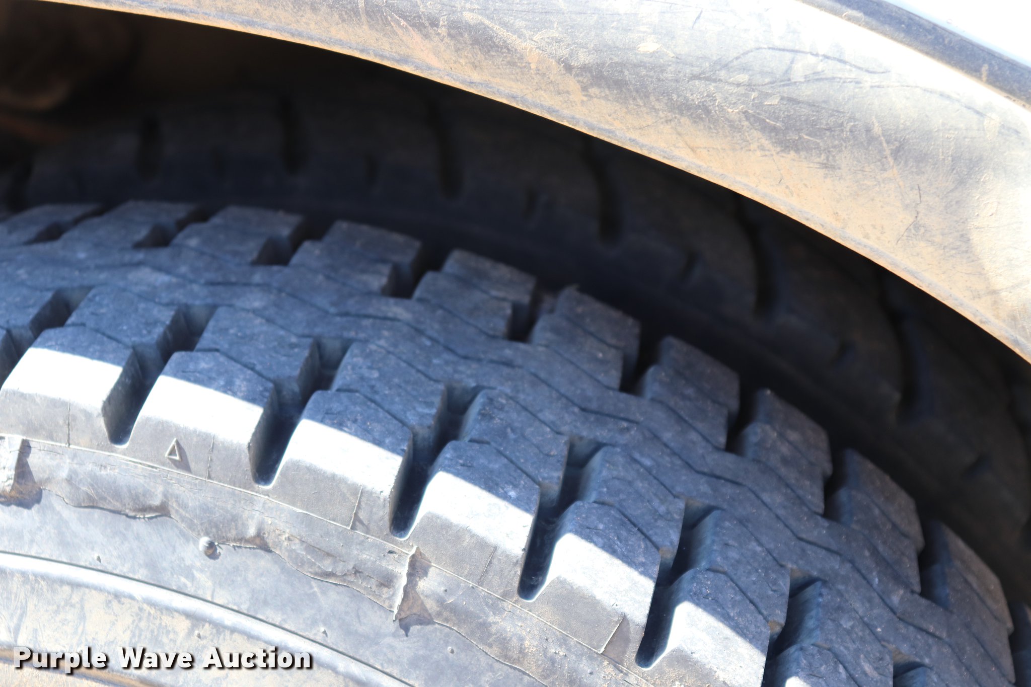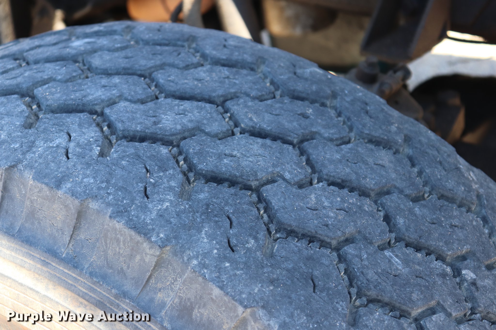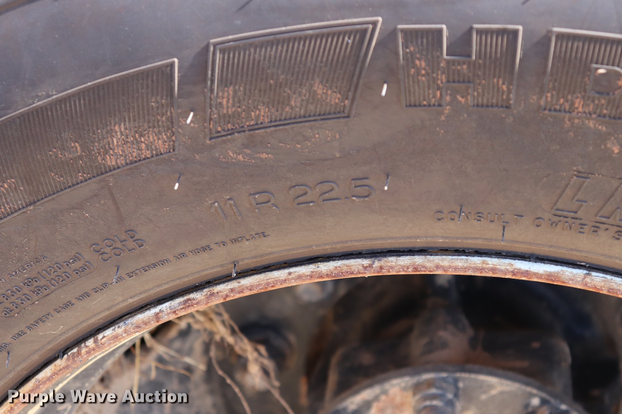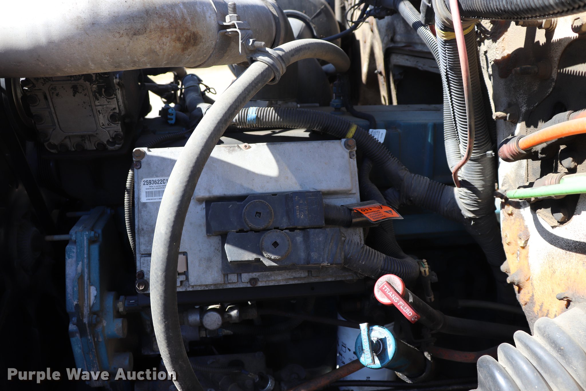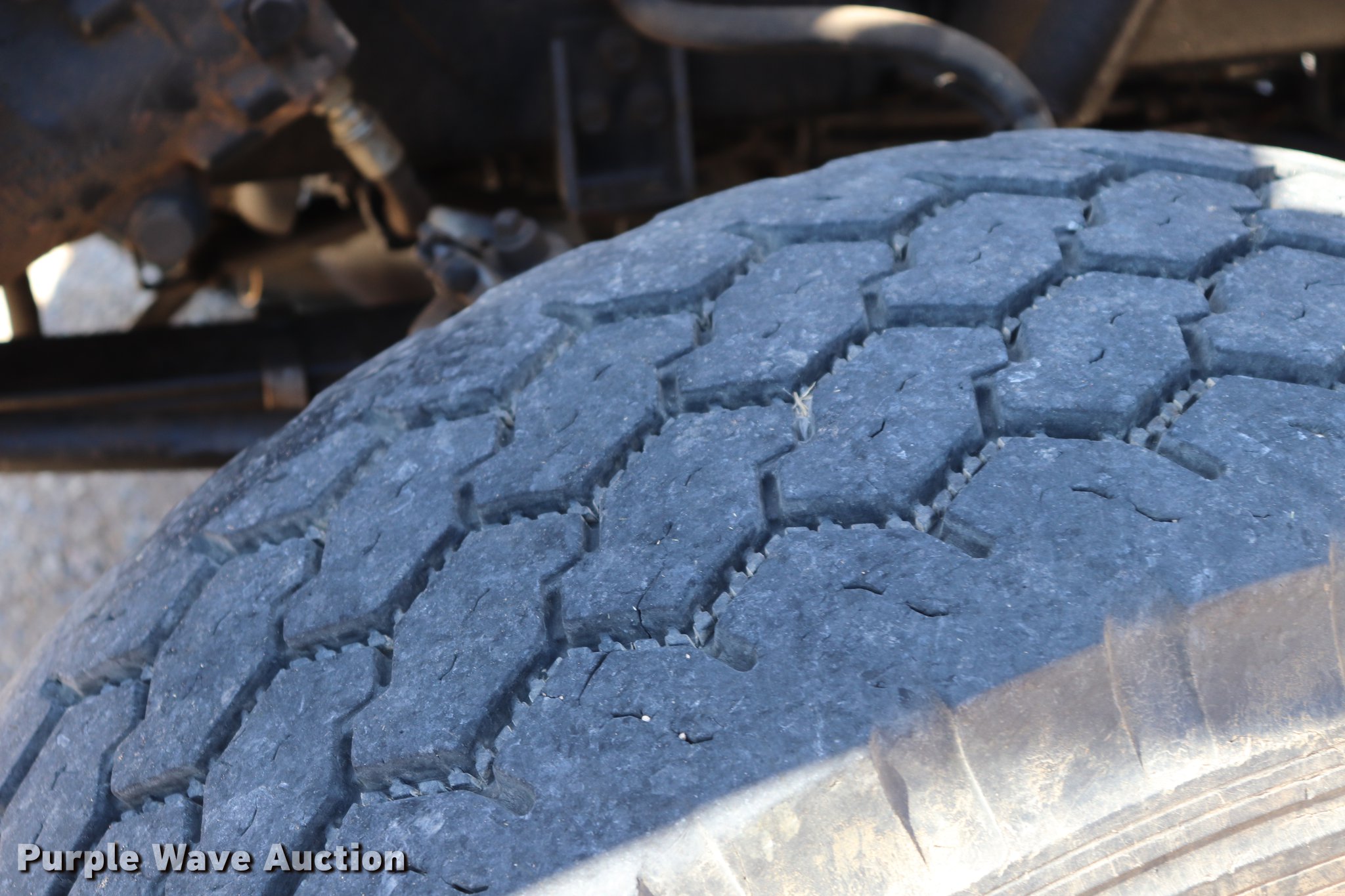 Purple Wave is selling a used Bucket Truck in Oklahoma. This item is a 2001 International 4800 bucket truck with the following: 185,644 miles on odometer, 13,973 hours on meter, International DT466E 7.6L L6 turbo diesel engine, Automatic transmission, All wheel drive, AC and heat, Cruise, AM/FM, Single exhaust stack, Adkins 12495FTV40 service bed, 175"L, Shelving, Slide-out drawers, Compartment lights, Front work lights, Serial 6278100, Altec AA755L boom, 55' boom length, 400 lbs max platform capacity, Man basket, 55' max lift height, 1,500 lbs max jib capacity, Ground and platform controls, Boom rotation, Articulating boom, Cable material handler, (4) outriggers, Serial 1199BZ0951, Single fuel tank, Spring suspension, Air brakes, 190" wheelbase, 385/65R22.5 front tires, 11R22.5 rear tires
