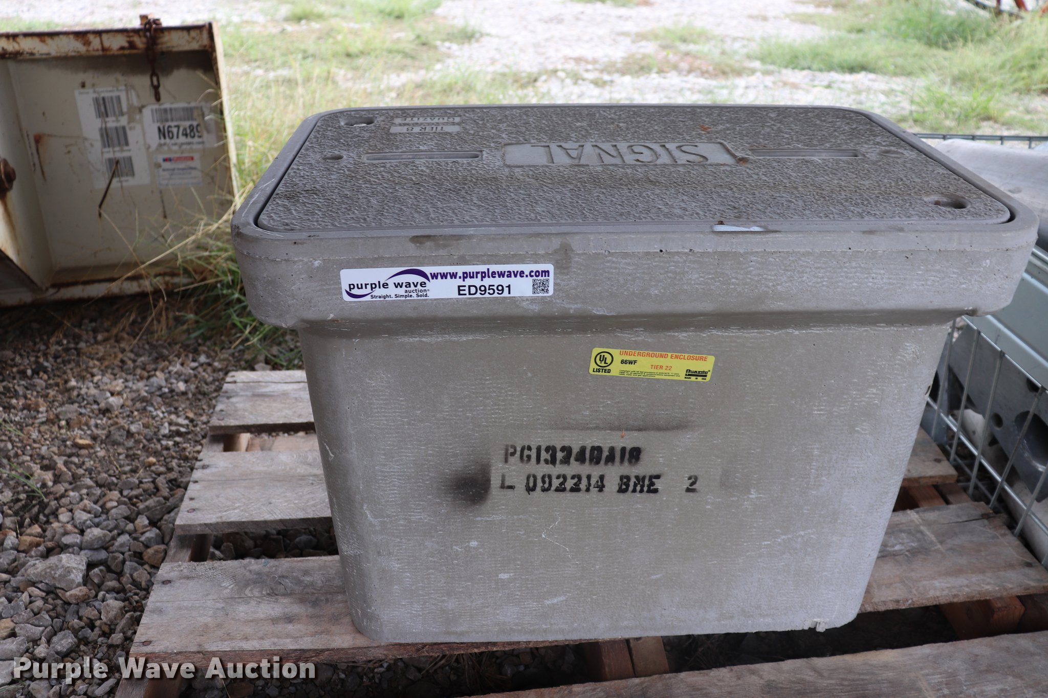 Purple Wave is selling a used Underground Safety or Shoring in Oklahoma. This item is a Underground concrete enclosure with the following: Quazite Tier 8, 25" x 18" x 15.5"