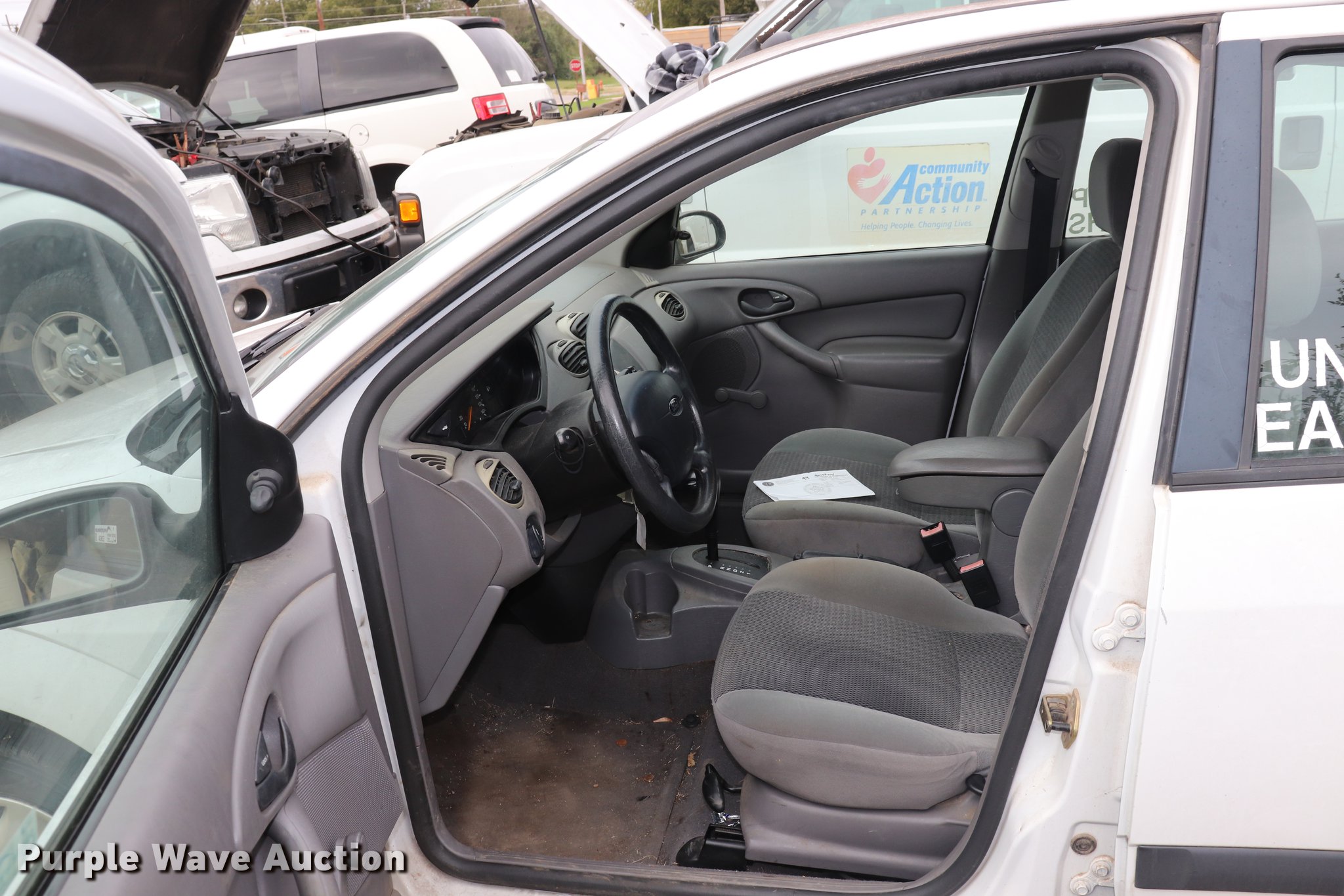 Purple Wave is selling a used Passenger Vehicle in Oklahoma. This item is a 2003 Ford Focus with the following: 161,612 miles on odometer, 2.0L L4 SOHC 8V gas engine, Automatic transmission, AC and heat, Tilt, Cruise, AM/FM/cassette, Manual windows and locks, Cloth interior, 185/65R14 tires, Unit# 94