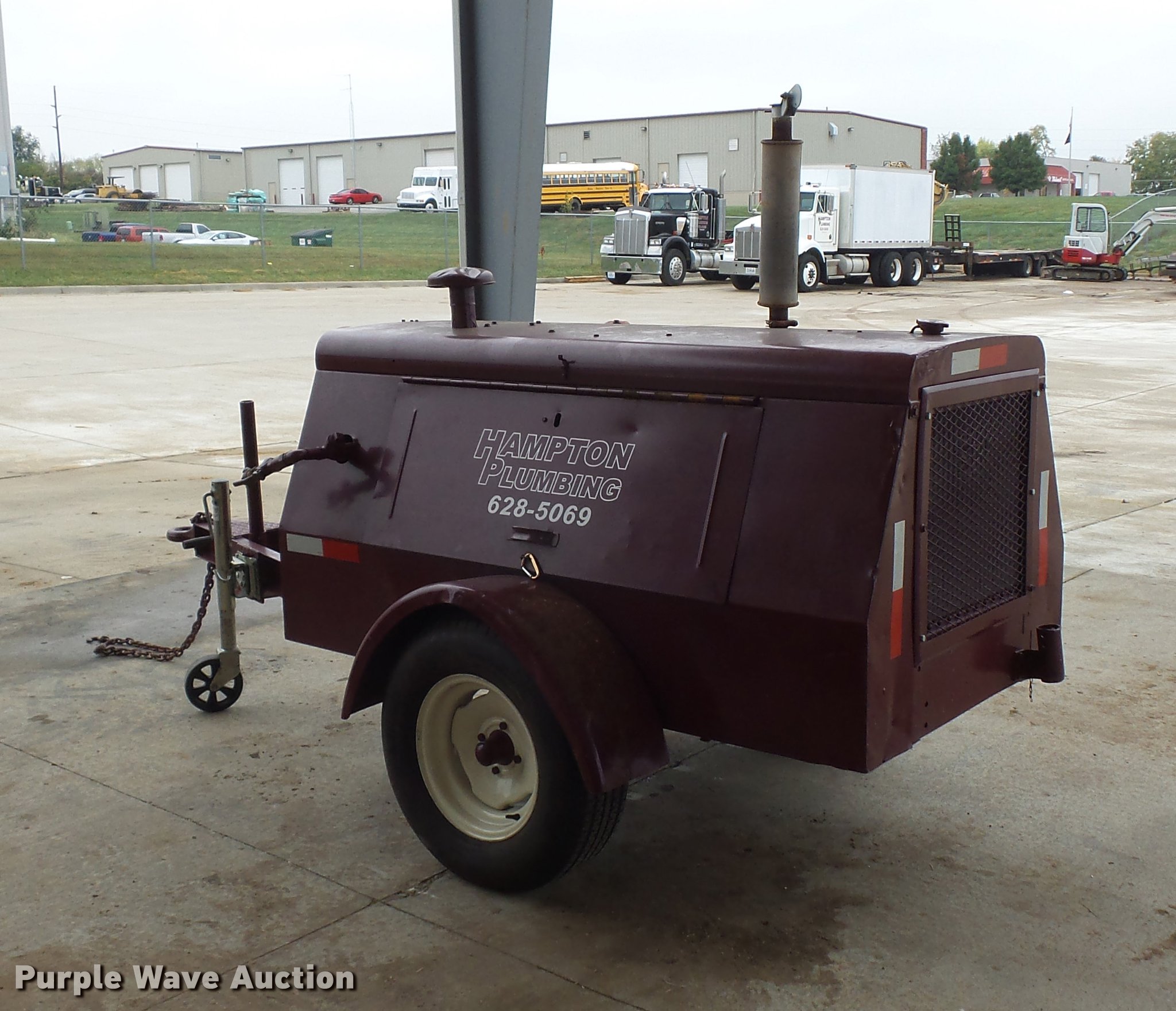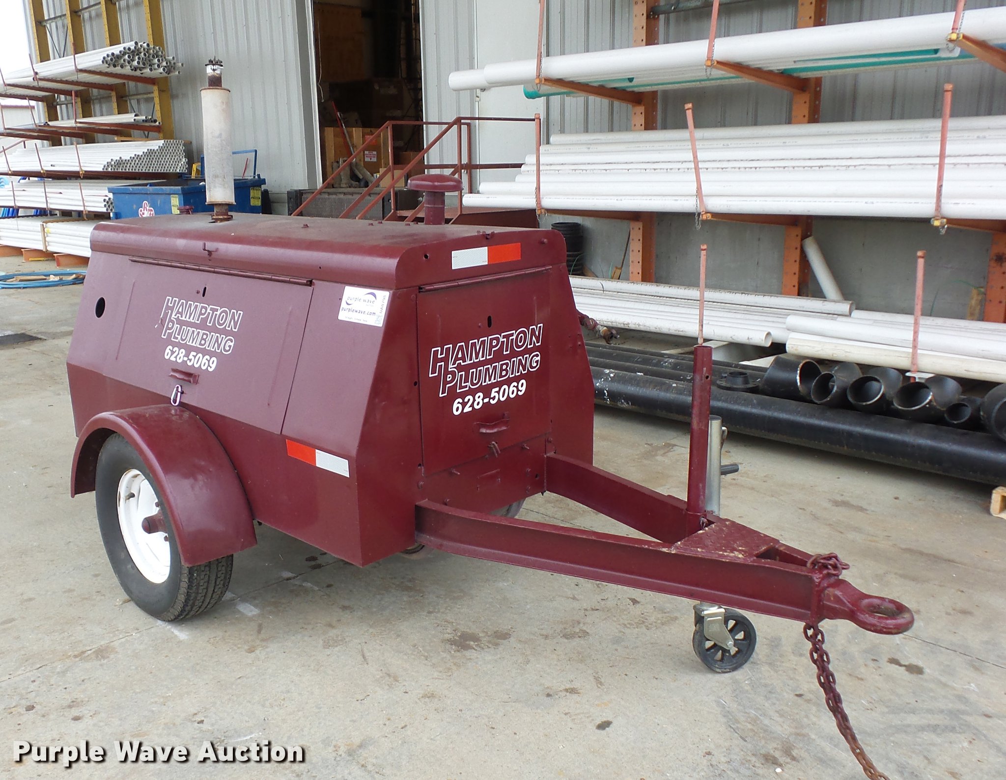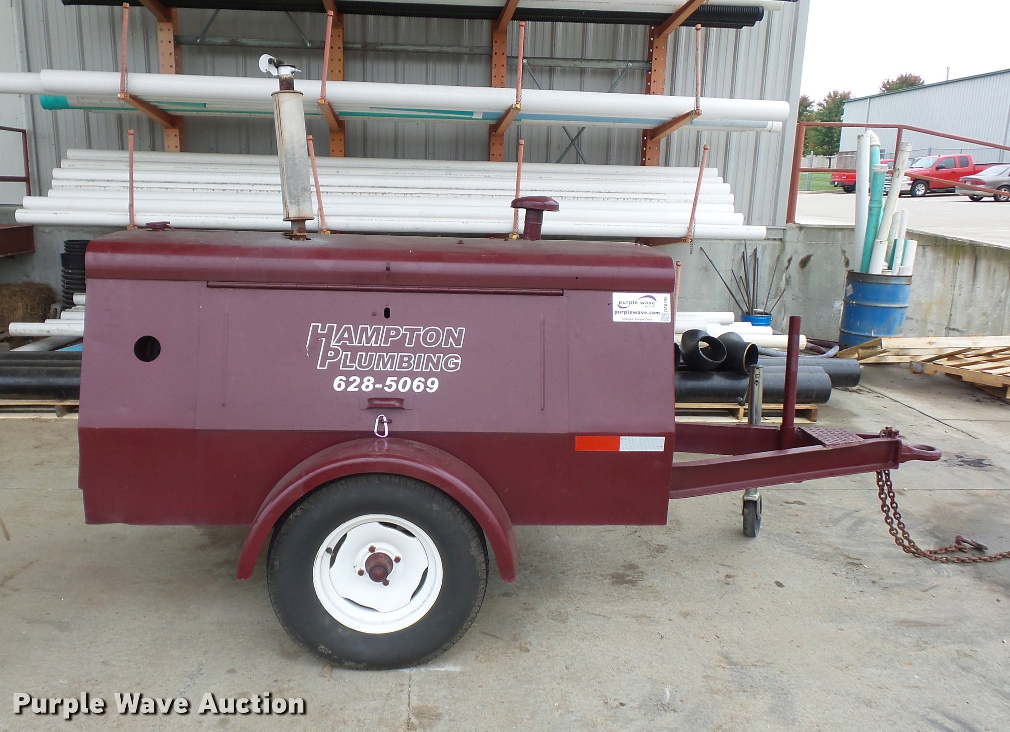 Gardner Denver air compressor. Four cylinder gas engine, Jack stand, Pintle hitch, 225/75R15 tires, Serial 274401. Transfer of ownership documentation will be a bill of sale. Hampton Plumbing, Inc.. 1026 W Innovation Dr. Kearney, MO 64060