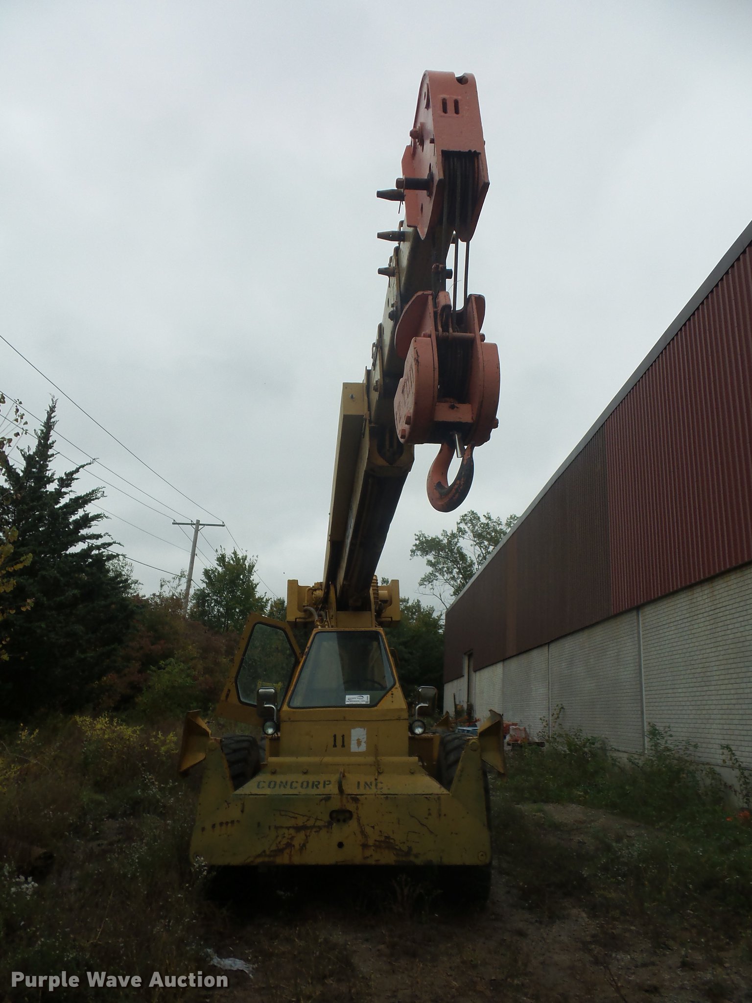 Galion KC10 crane. 3,848 hours on meter, Six cylinder gas engine, Manual transmission, 12.5 ton capacity, Hydraulic outriggers, 14-24 tires, Serial 8124114. Concorp. 8100 NW 97th Terrace. Kansas City, MO 64153
