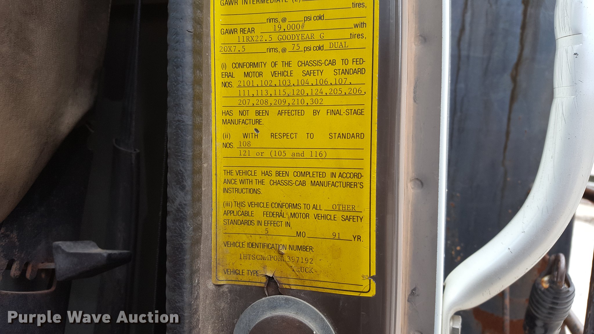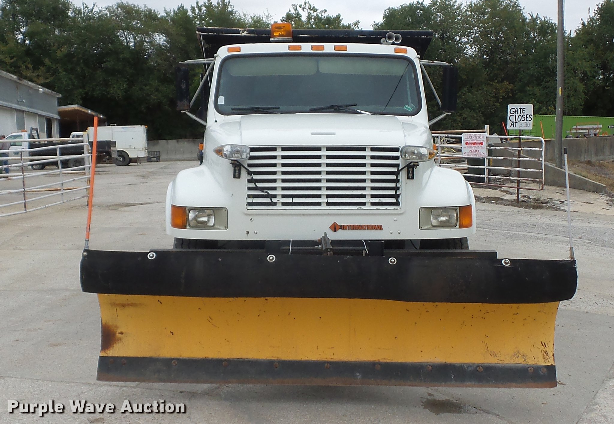 Purple Wave is selling a used Construction Dump Truck in Missouri. This item is a 1992 International 4700 dump truck with the following: 215,379 miles on odometer, International DT360 5.9L L6 turbo diesel engine, Five speed manual transmission, Two speed rear end, 10'L x 8'W dump bed, 26" side height, 7" side board height, 9'W plow, Break away springs, Pintle hitch, Spring suspension, Hydraulic brakes, 218" wheelbase, 11R22.5 tires, GVWR 29,000 lbs
