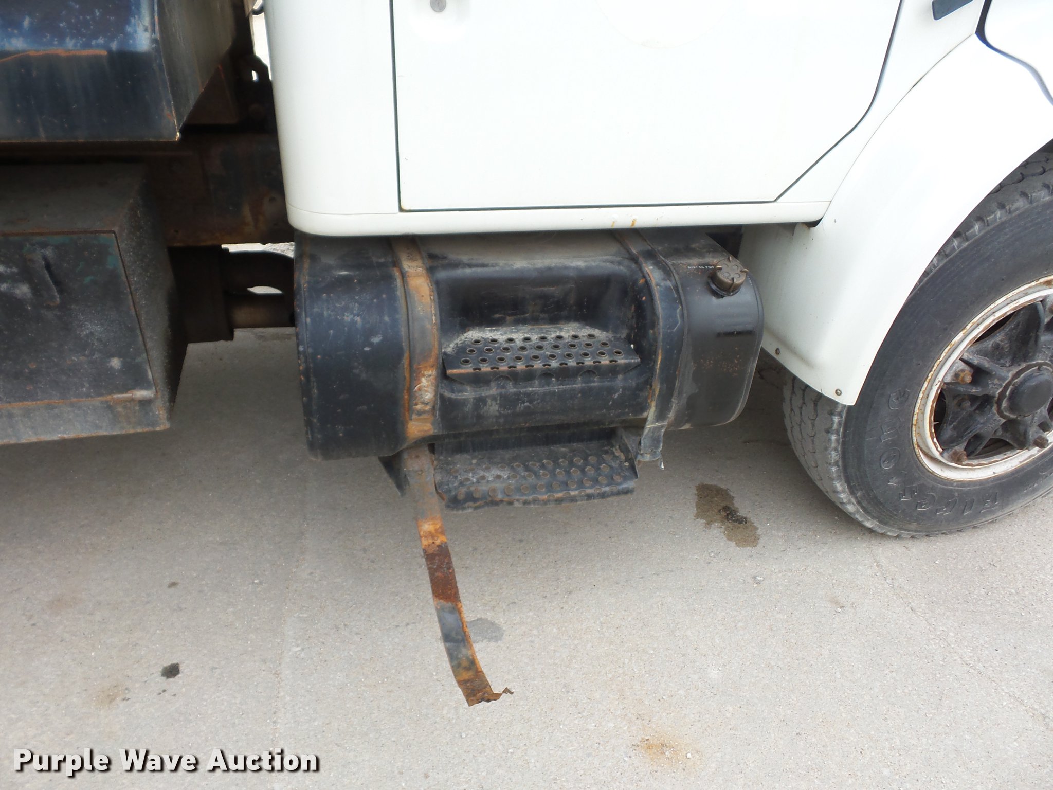 1992 International 4700 dump truck. 215,379 miles on odometer, International DT360 5.9L L6 turbo diesel engine, Five speed manual transmission, Two speed rear end, 10'L x 8'W dump bed 26" side height, 7" side board height, 9'W plow Break away springs, Pintle hitch, Spring suspension, Hydraulic brakes, 218" wheelbase, 11R22.5 tires, GVWR 29,000 lbs. Missouri title. Seller is a government entity who will be assigning and distributing the title. Please contact the seller for distribution questions. 1HTSCNMP0NH397192. City of Lexington. 418 S 24th St. Lexington, MO 64067