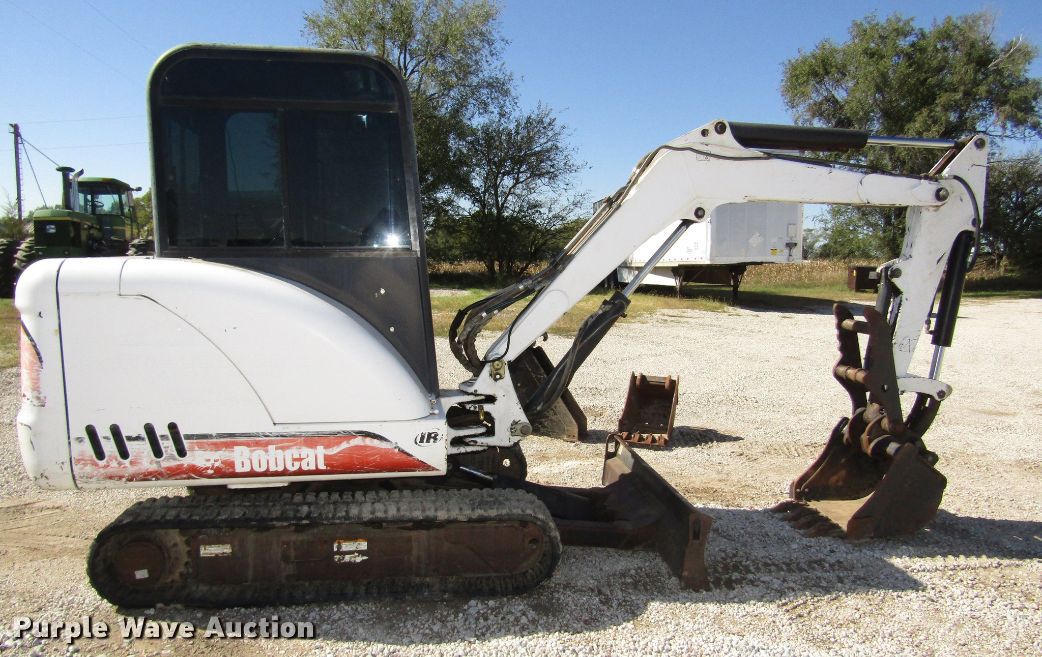 Purple Wave is selling a used Mini Excavator in Nebraska. This item is a 2002 Bobcat 331D compact excavator with the following: 2,846 hours on meter, Kubota V2203-EU1 four cylinder diesel engine, 29.8 kW, Serial YKBXL022FCD, Hydrostatic transmission, EROPS, AC and heat, AM/FM, Pattern changer, Wipers, Front work lights, Standard boom, 48" stick length, Bobcat 24"W bucket, Weld-on cutting edge, (5) bolt-on teeth, Engler Diversified 8" trench bucket, 32"D x 29"H, Bobcat 16"W bucket, Weld-on cutting edge, (4) bolt-on teeth, Tooth missing,, Hydraulic thumb, 25"L x 13"W, Mechanical quick coupler, Two way auxiliary hydraulics, 60.5"W backfill blade, 12"W rubber tracks, Wiper missing, Serial 232512782