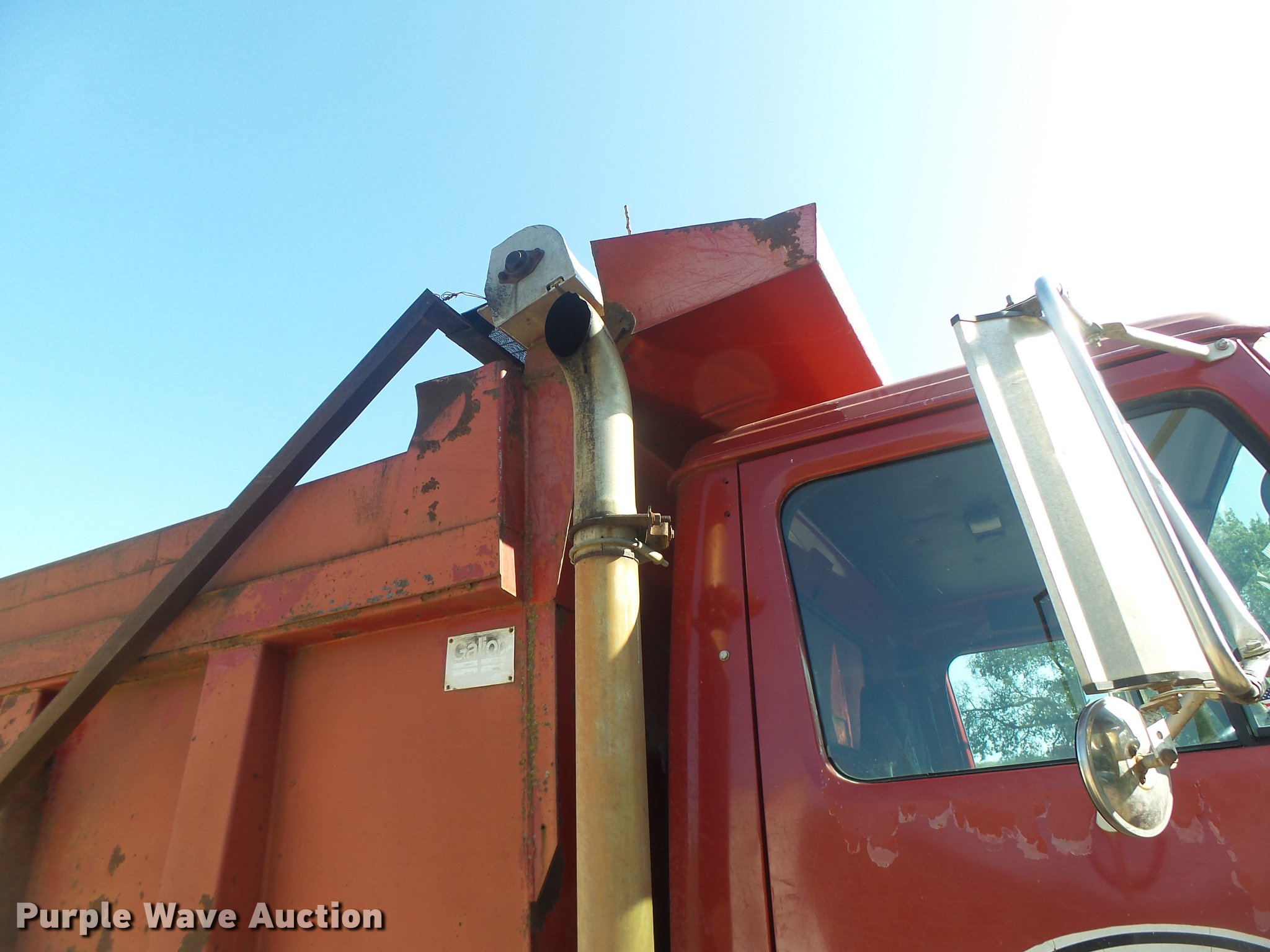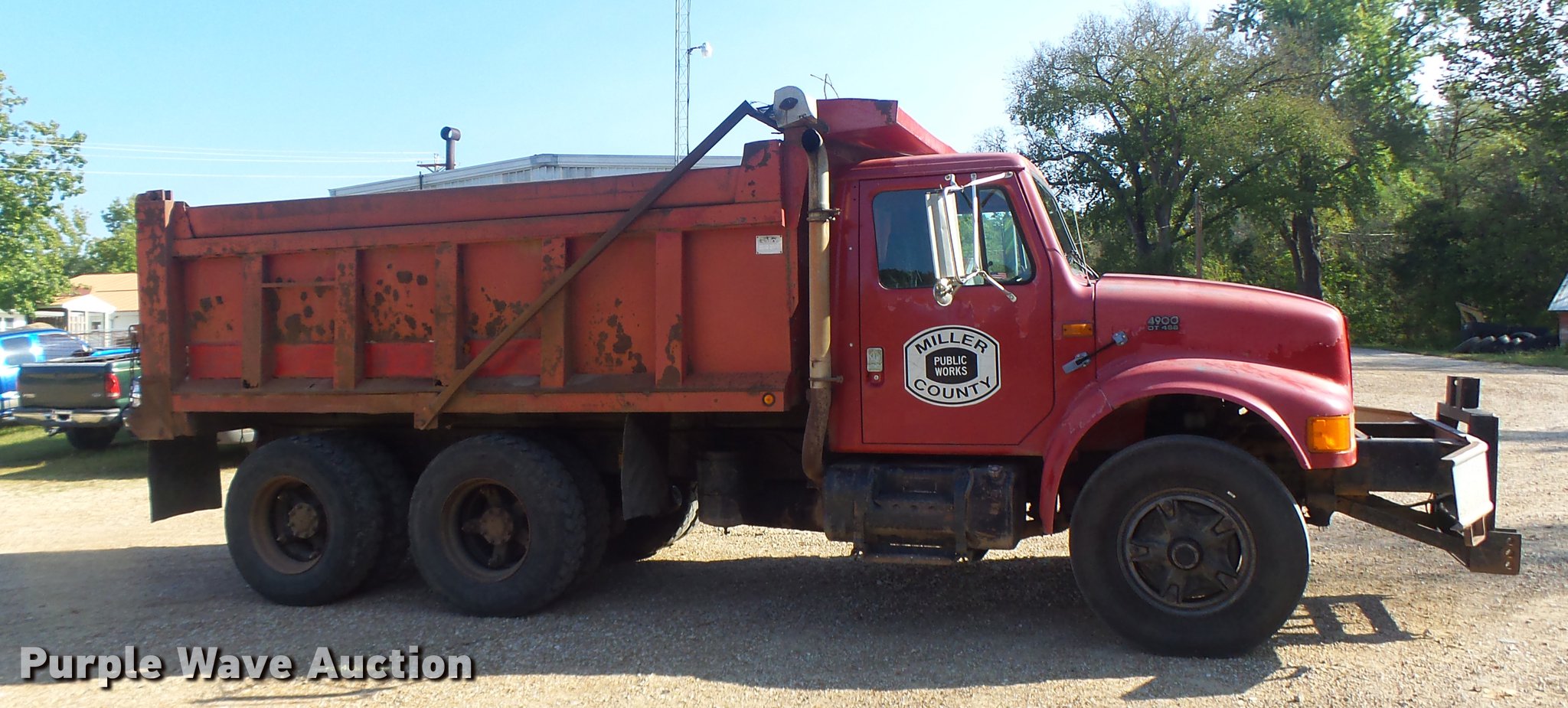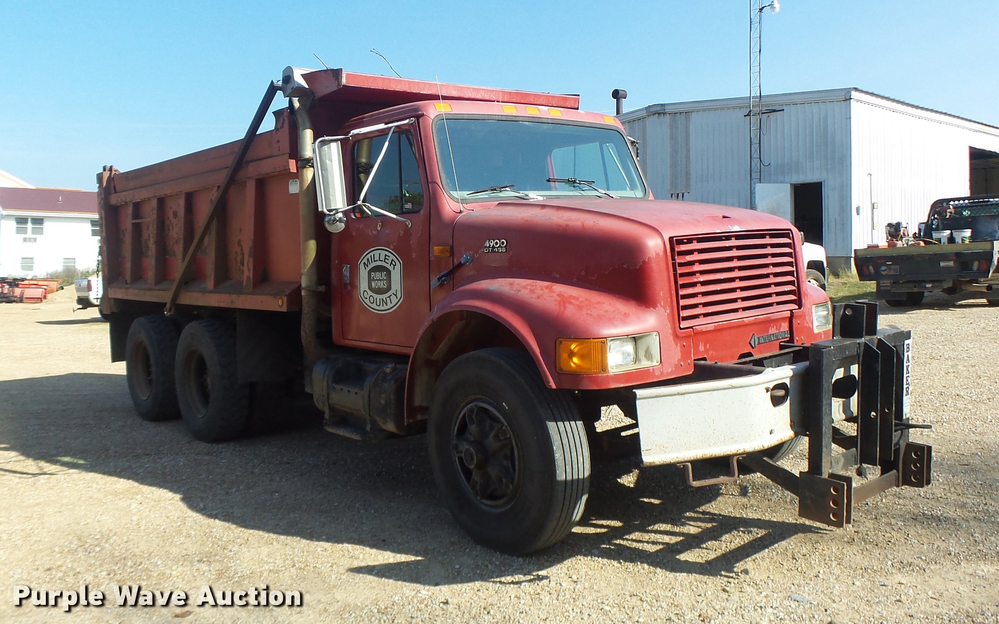 Purple Wave is selling a used Construction Dump Truck in Missouri. This item is a 1997 International 4900 dump truck with the following: 232,698 miles on odometer, International DT466 7.06L L6 turbo diesel engine, Eaton Fuller 10 speed manual transmission, Inter-axle differential lock, Heat, AM/FM, Air suspension seat, PTO, Gallion steel dump bed, 14'L x 8'W, Single ram hoist, Manual operated end gate, Roll tarp, Dual fuel tanks, Pintle hitch, Trailer wiring, Air brakes, Spring suspension, 11R22.5 tires, GVWR 52,000 lbs