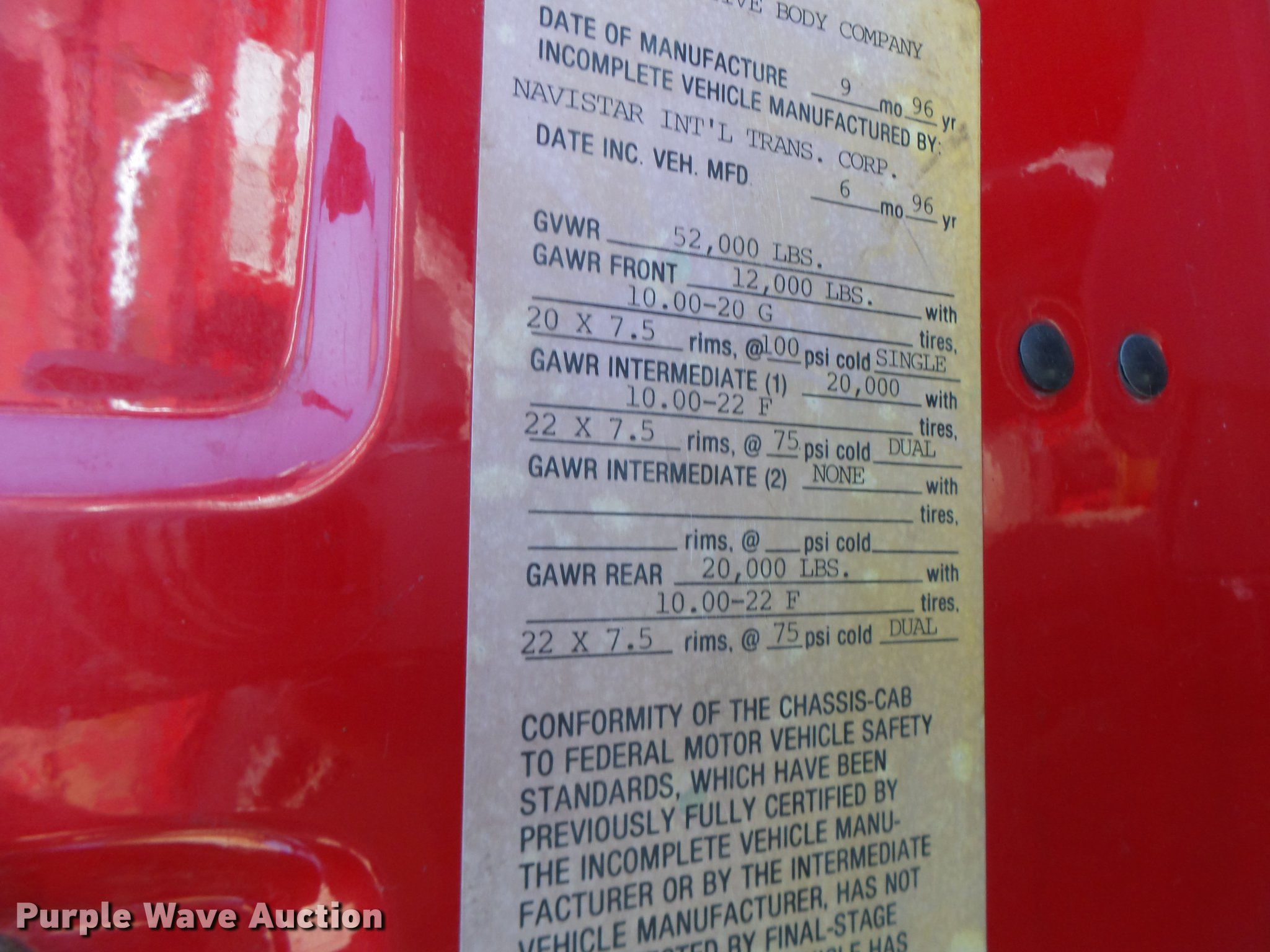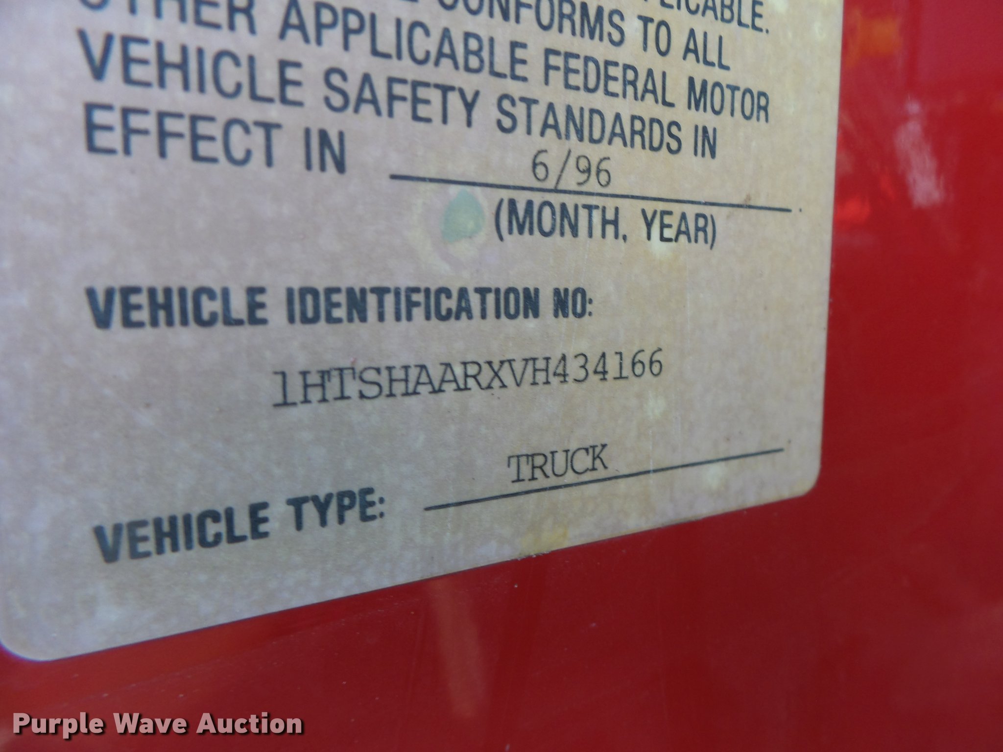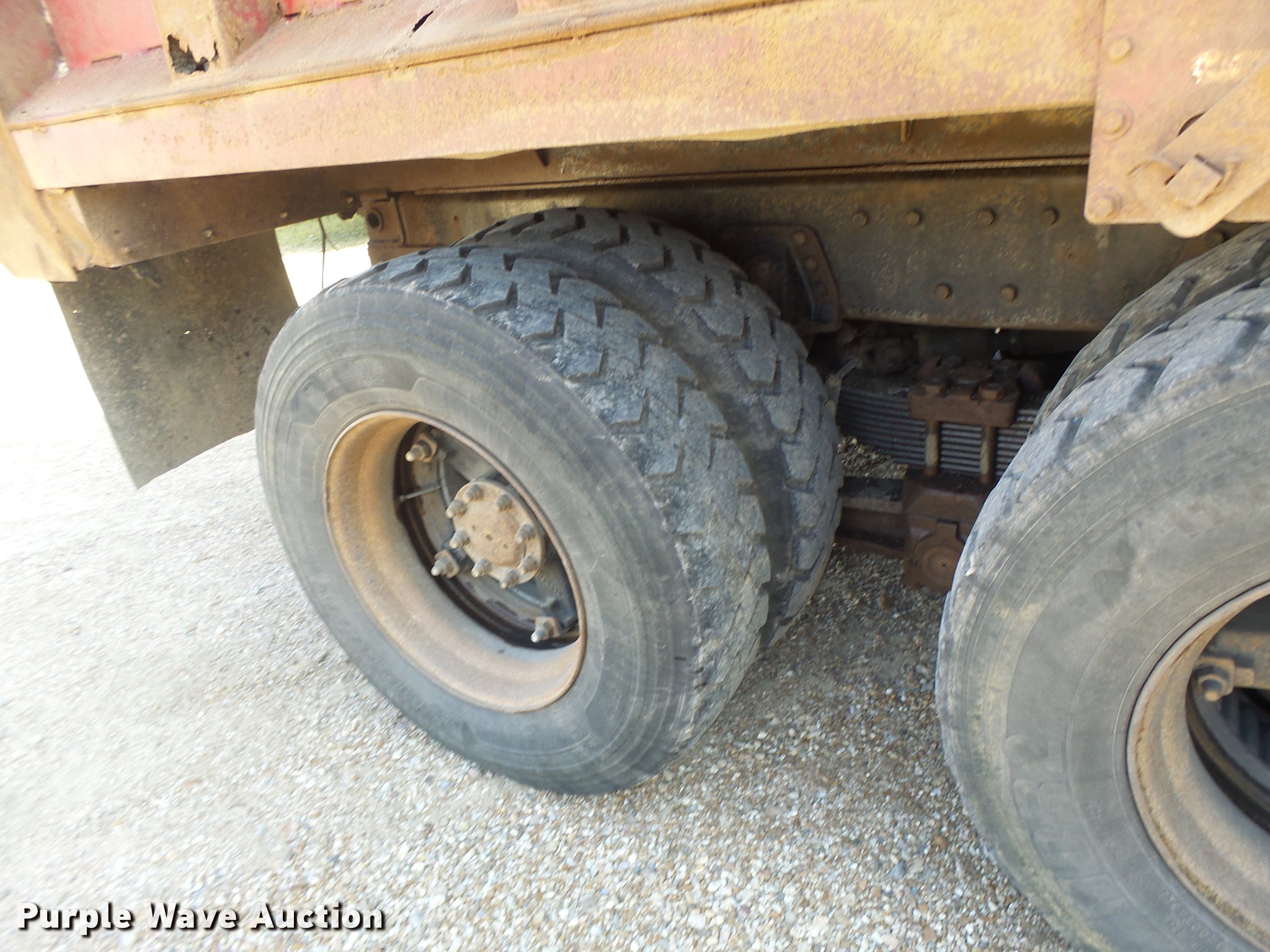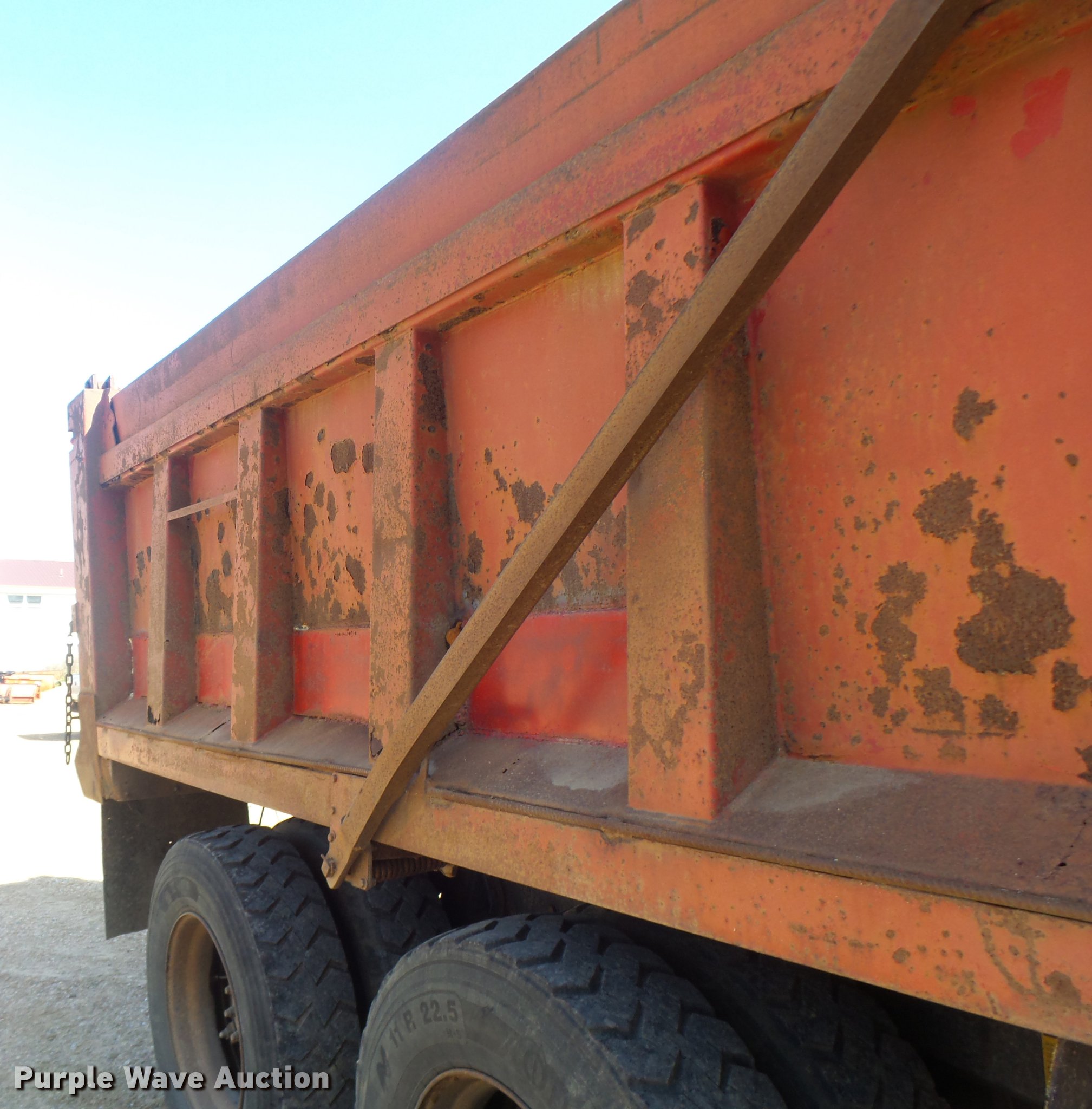 Purple Wave is selling a used Construction Dump Truck in Missouri. This item is a 1997 International 4900 dump truck with the following: 232,698 miles on odometer, International DT466 7.06L L6 turbo diesel engine, Eaton Fuller 10 speed manual transmission, Inter-axle differential lock, Heat, AM/FM, Air suspension seat, PTO, Gallion steel dump bed, 14'L x 8'W, Single ram hoist, Manual operated end gate, Roll tarp, Dual fuel tanks, Pintle hitch, Trailer wiring, Air brakes, Spring suspension, 11R22.5 tires, GVWR 52,000 lbs