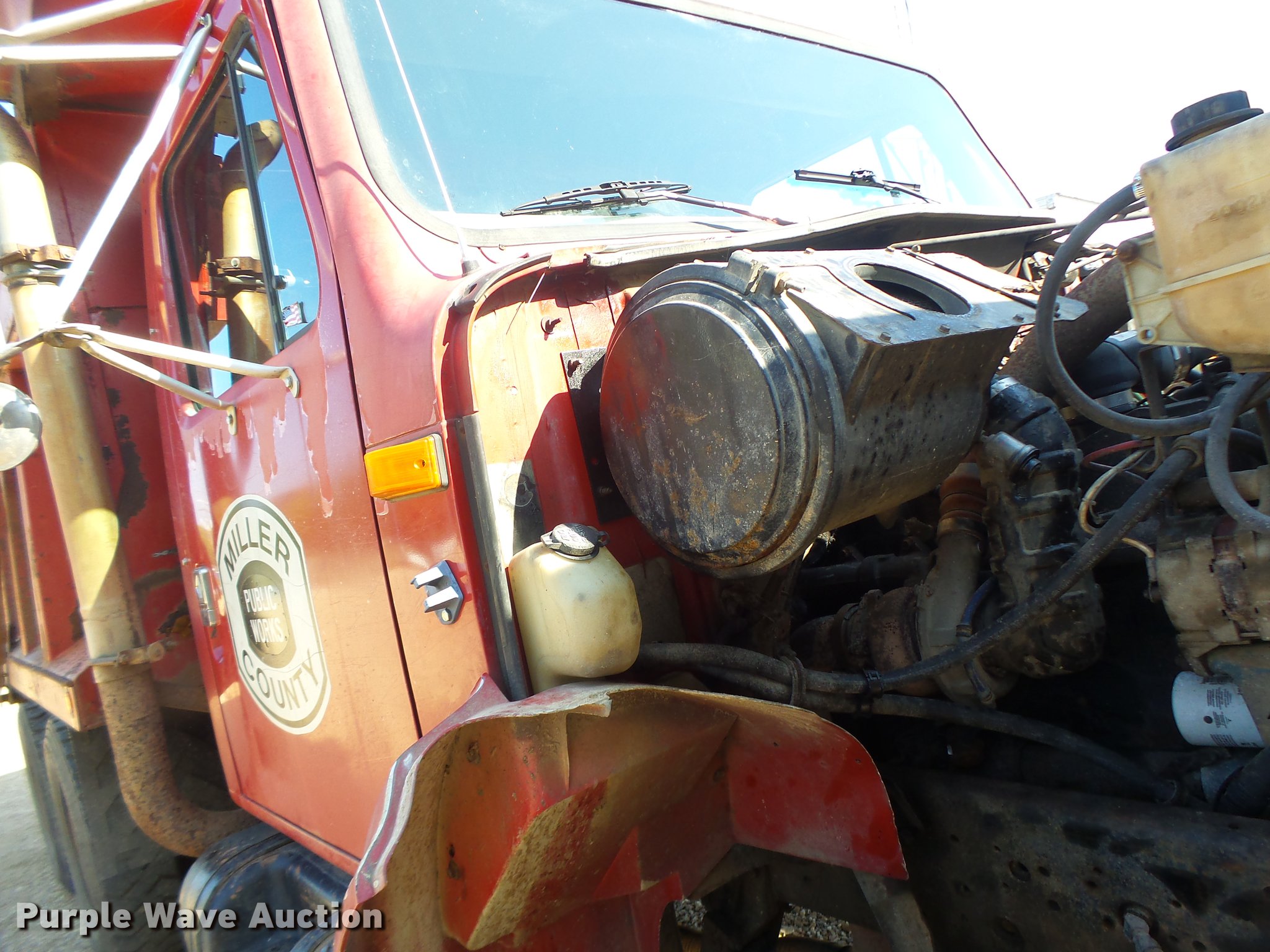 1997 International 4900 dump truck. 232,698 miles on odometer, International DT466 7.06L L6 turbo diesel engine, Eaton Fuller 10 speed manual transmission, Inter-axle differential lock, Heat, AM/FM, Air suspension seat, PTO, Gallion steel dump bed 14'L x 8'W, Single ram hoist, Manual operated end gate, Roll tarp, Dual fuel tanks, Pintle hitch , Trailer wiring, Air brakes, Spring suspension , 11R22.5 tires, GVWR 52,000 lbs. Missouri title. Seller is a government entity who will be assigning and distributing the title. Please contact the seller for distribution questions. 1HTSHAARXVH434166. Miller County. 2001 MO-52. Tuscumbia, MO 65082