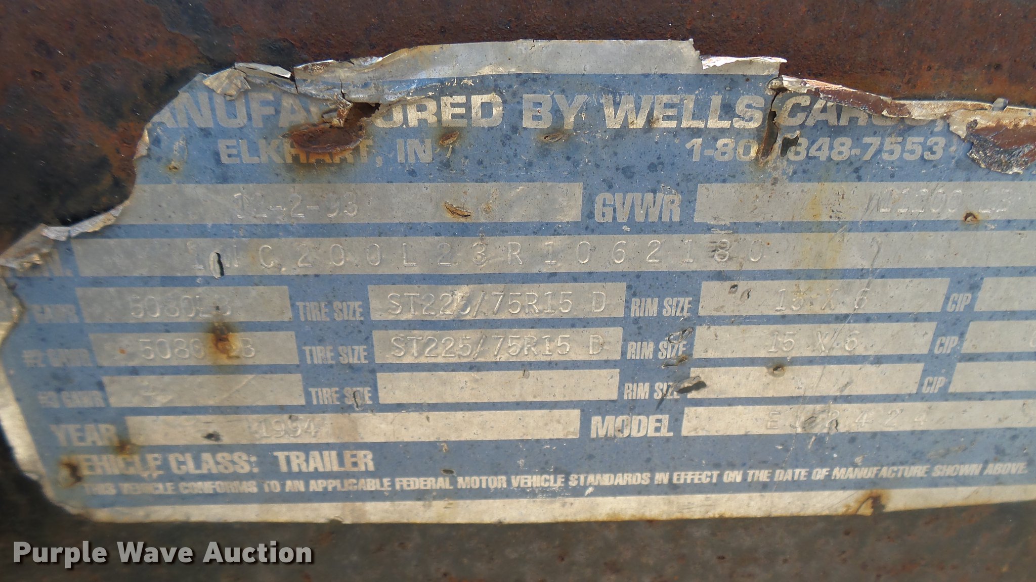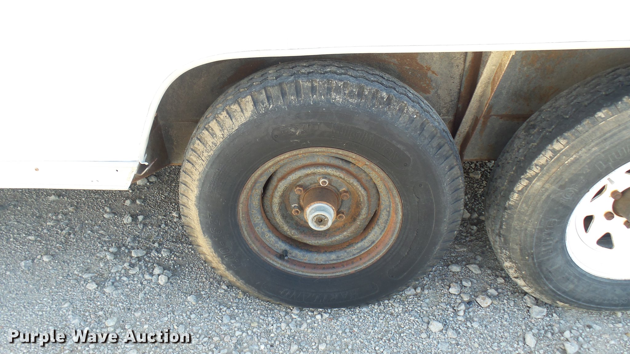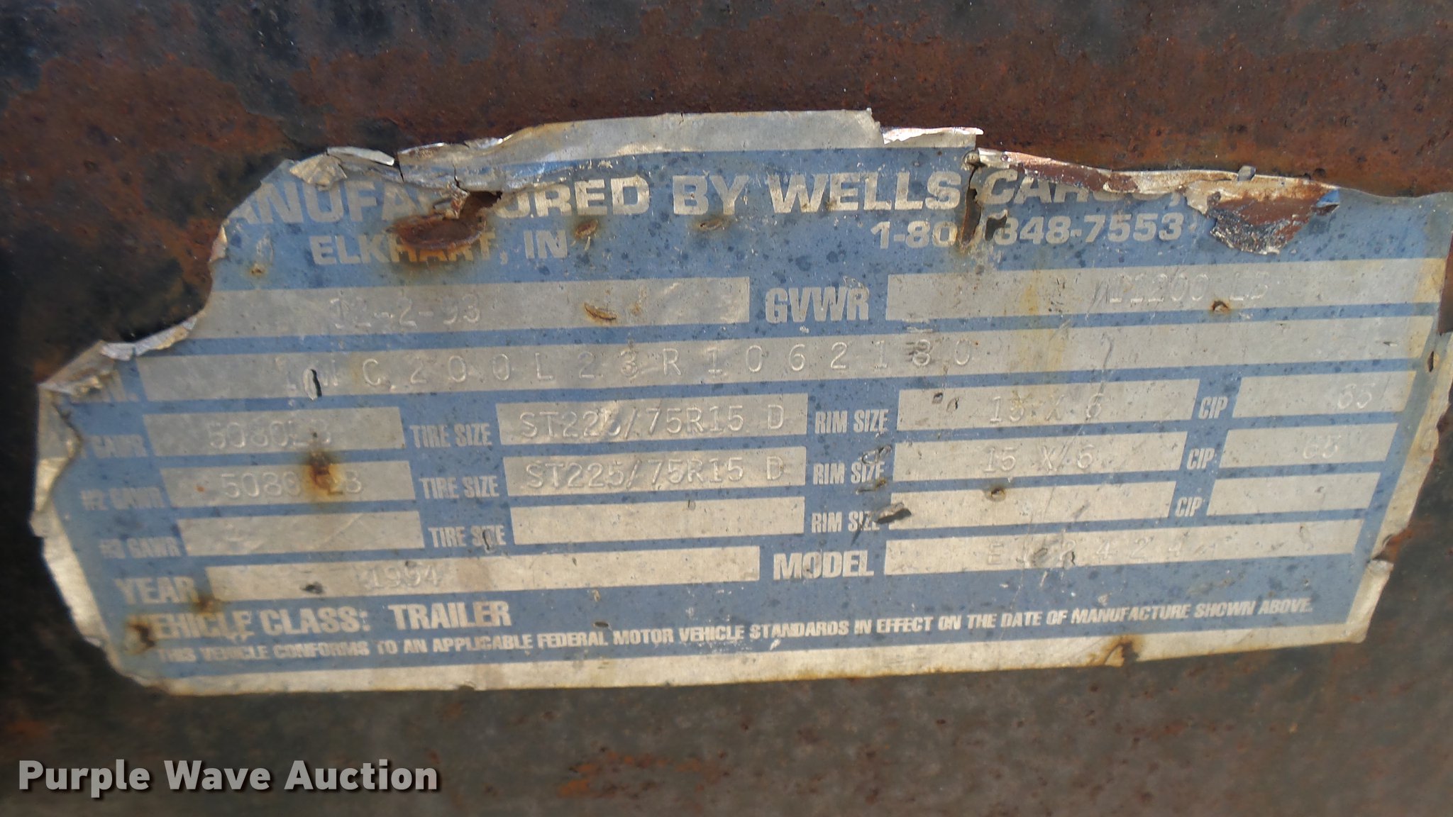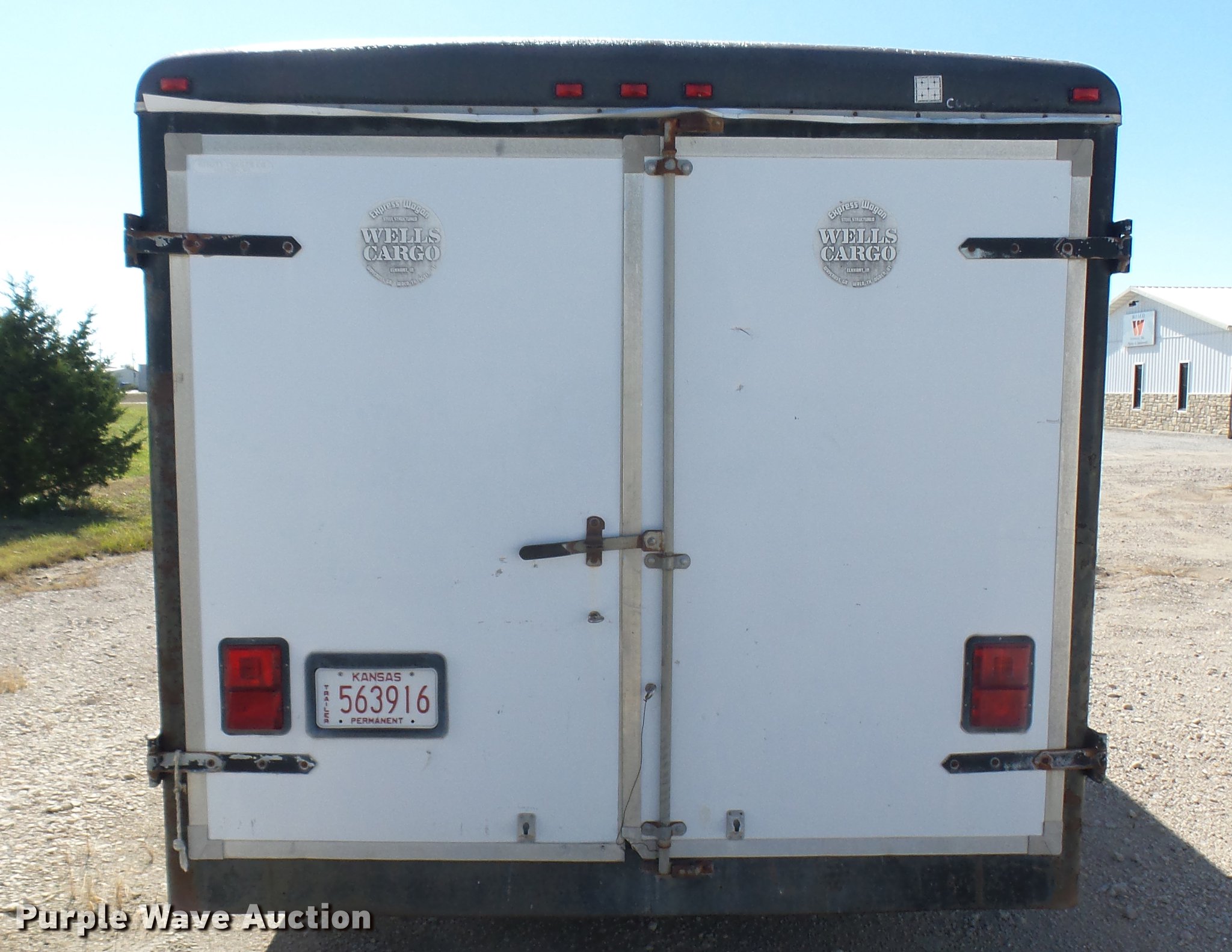 Purple Wave is selling a used Enclosed Cargo Trailer in Kansas. This item is a 1994 Wells Cargo enclosed cargo trailer with the following: 24'L x 8'W, 80" interior height, Wood floor, Swing-out rear doors, Side entry door, Interior lighting, Interior outlets, Ball hitch, Tandem axle, 7.00-15 tires, Unit# 8