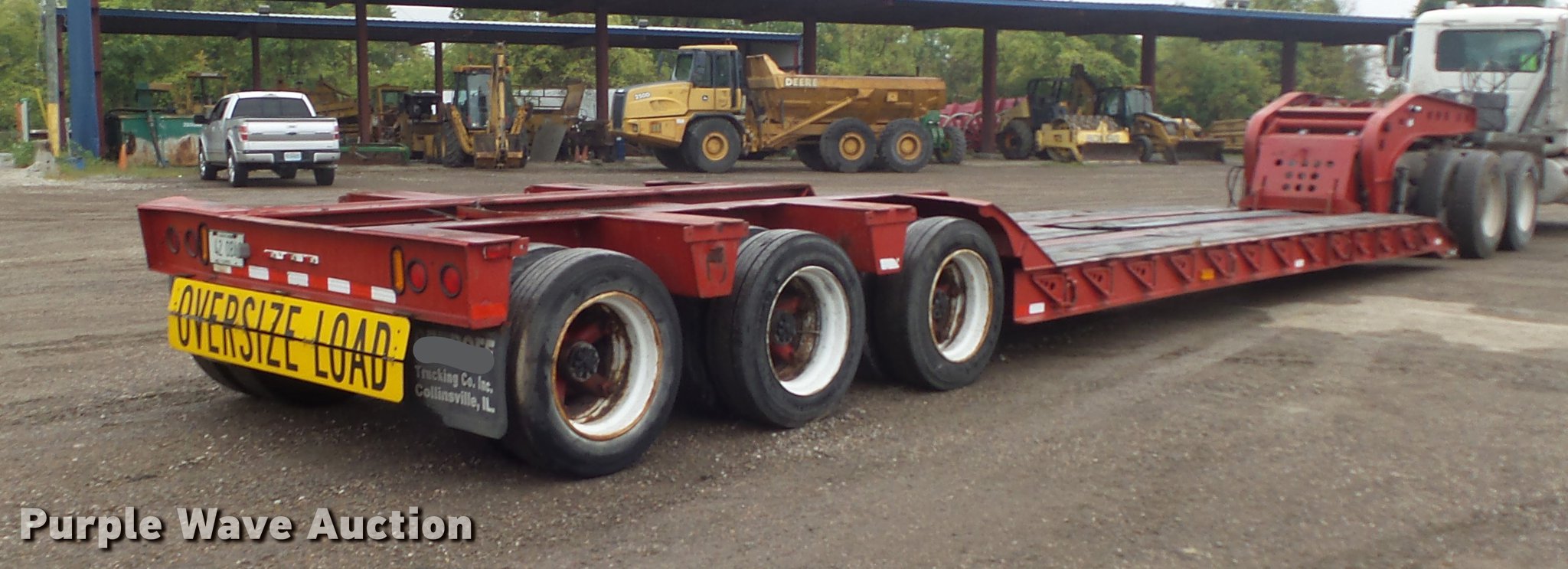 Purple Wave is selling a used Equip. Trailer in Illinois. This item is a 1989 Liddell Birmingham 503HB-NGB lowboy equipment trailer with the following: 47'L x 102"W, 24" floor height, 22'L main deck, 13'L rear deck, 9.5" swing-out outriggers, Detachable neck, Wood deck, 50 ton capacity, Fifth wheel plate, Spring suspension, Air brakes, Triple axle, Steel wheels, 255/70R22.5 tires, GVWR 100,000 lbs, Truck not included