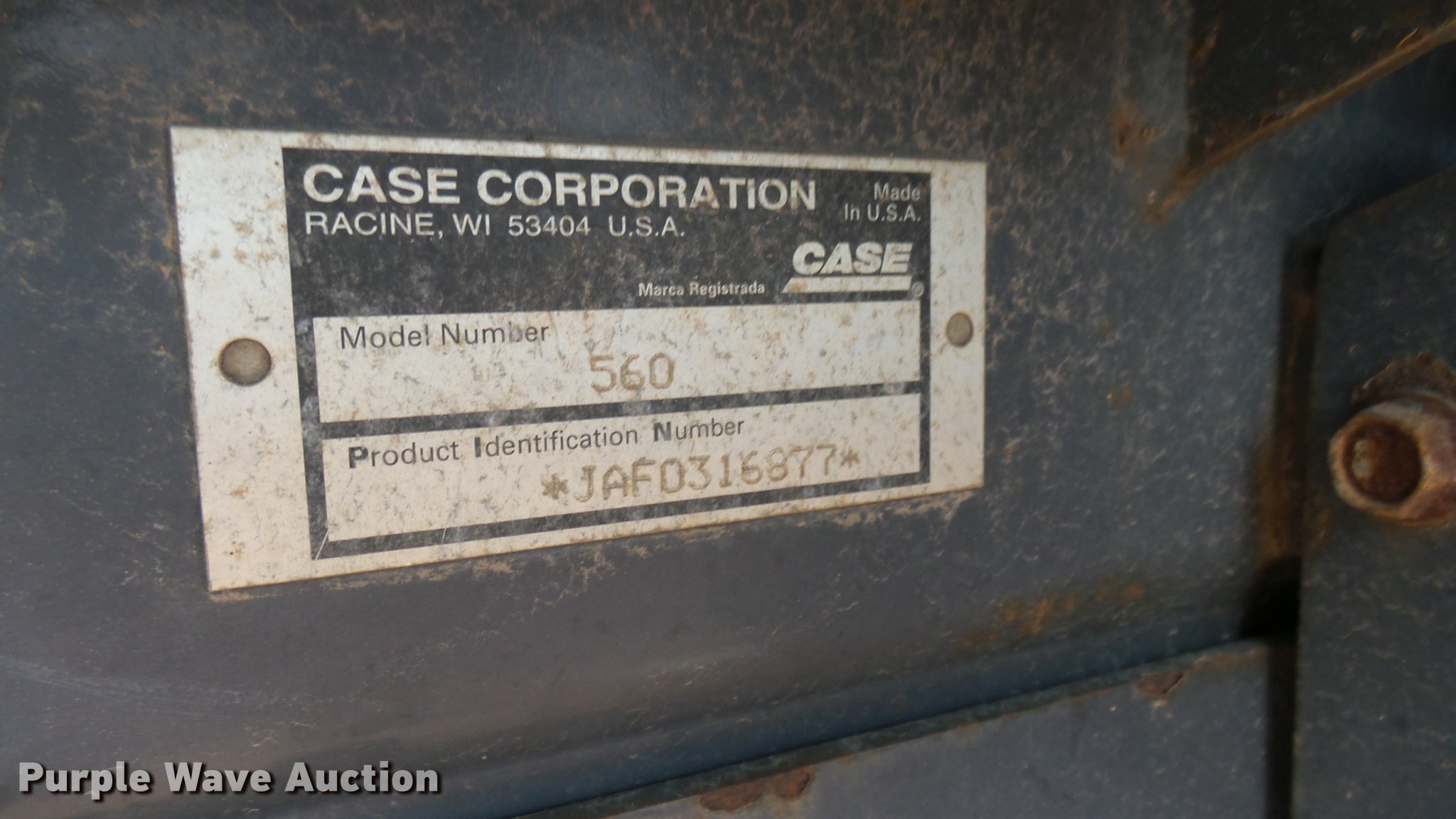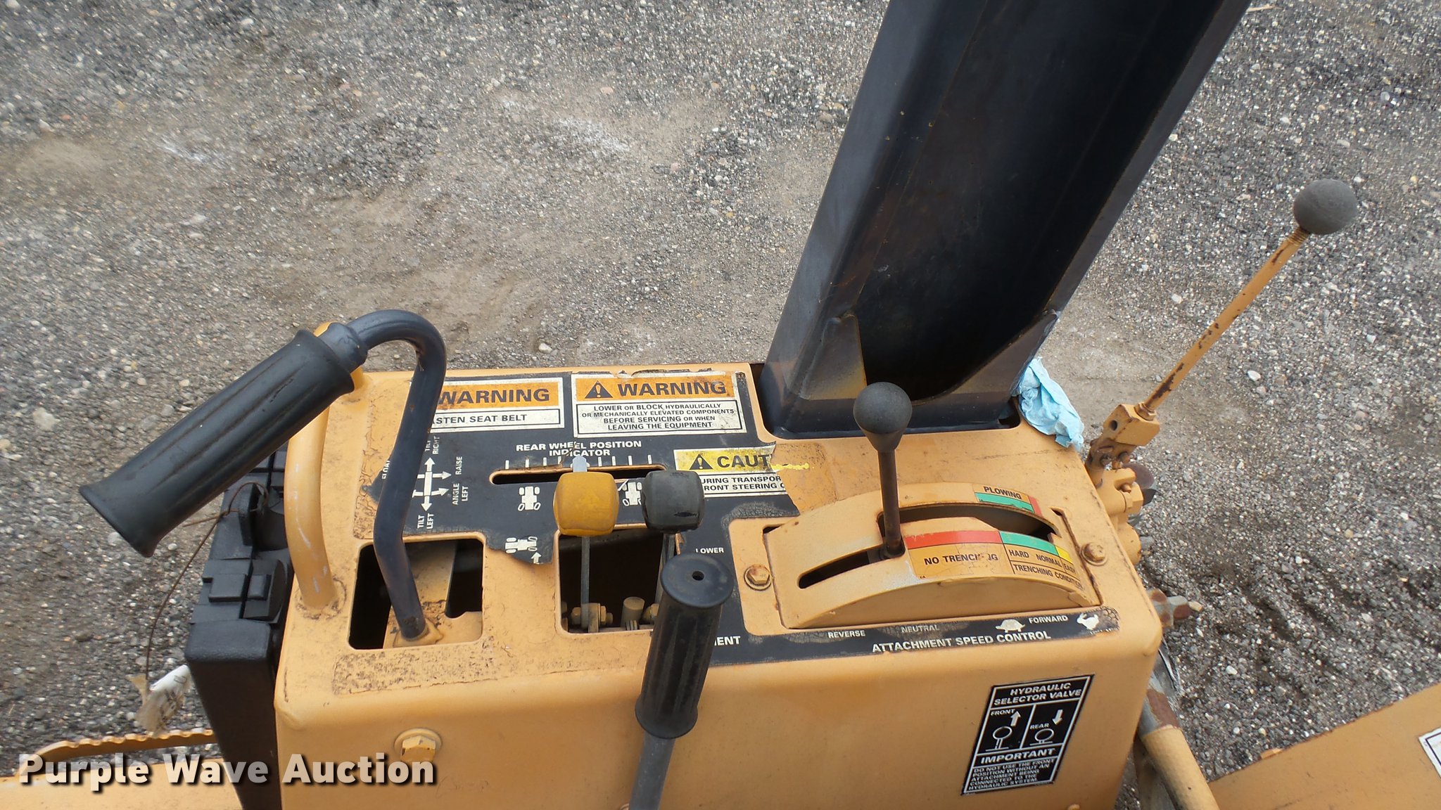 Purple Wave is selling a used Trencher or Rock Saw in Kansas. This item is a 2000 Case 560 trencher with the following: 1,144 hours on meter, Kubota four cylinder diesel engine, Hydrostatic transmission, Four wheel drive, Four wheel steer, Case H939307 trencher, 72" trencher boom, 6" trencher width, Crumber, Serial JAF0331009, Case D125 backhoe, 48" stick length, 12"W bucket, Two lever controls, Serial JAF0320545, 72"W six-way backfill blade, (2) outriggers, 31 x 15.50-15 tires, Serial JAF0316877