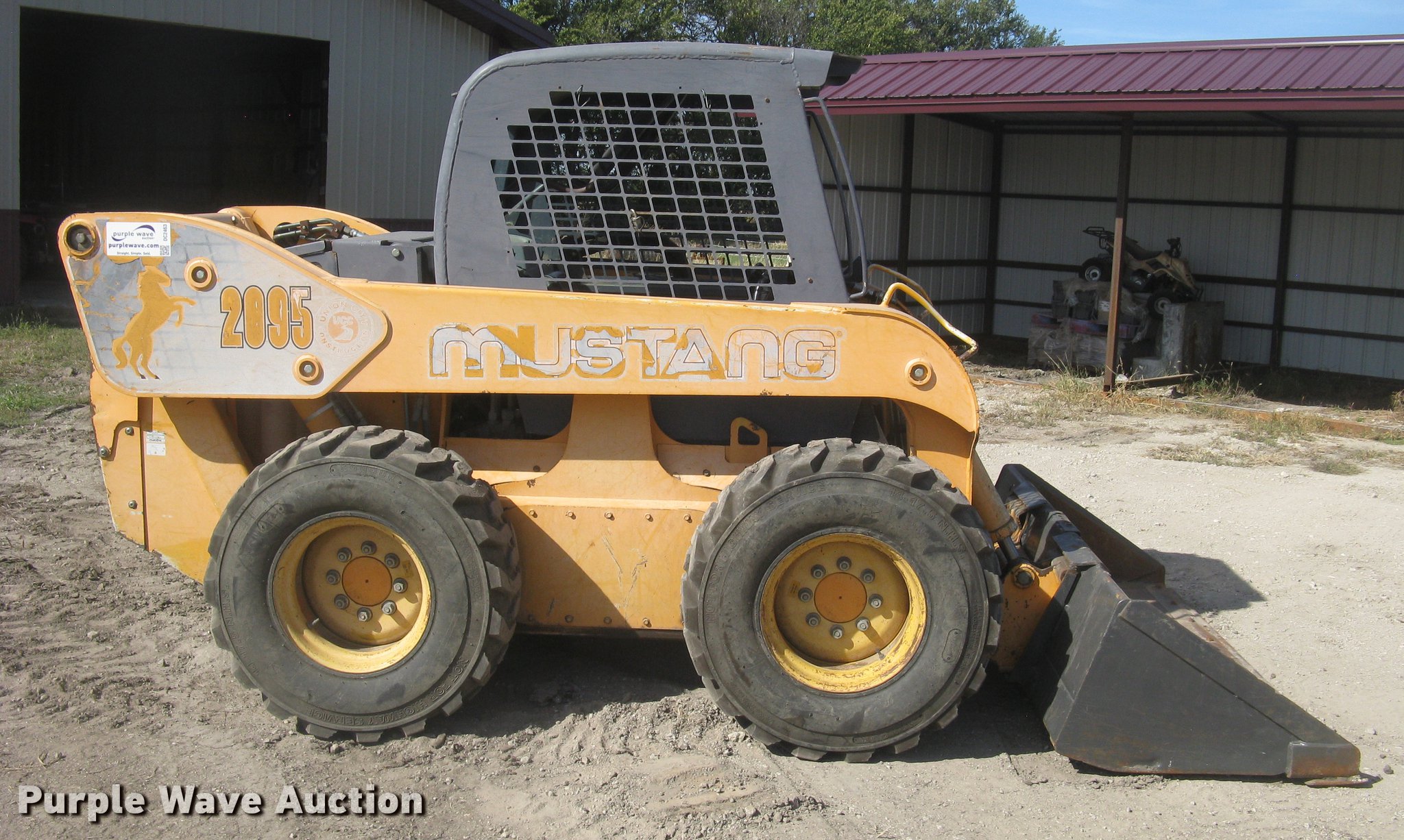 Purple Wave is selling a used Skid Steer Loader in Kansas. This item is a Mustang 2095 skid steer with the following: 3,153 hours on meter, Hours may vary, unit in use, Yanmar 4TNE106-GE 4.412L four cylinder diesel engine, Serial 18828, Hydrostatic transmission, Open station/canopy, Hand and foot controls, Front and rear work lights, 84"W low profile bucket, Bolt-on cutting edge, Manual quick coupler, Auxiliary hydraulics, Auxiliary electrical outlet, 14-17.5 NHS tires, Serial 101255